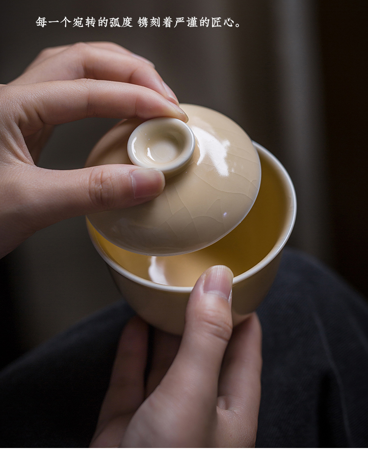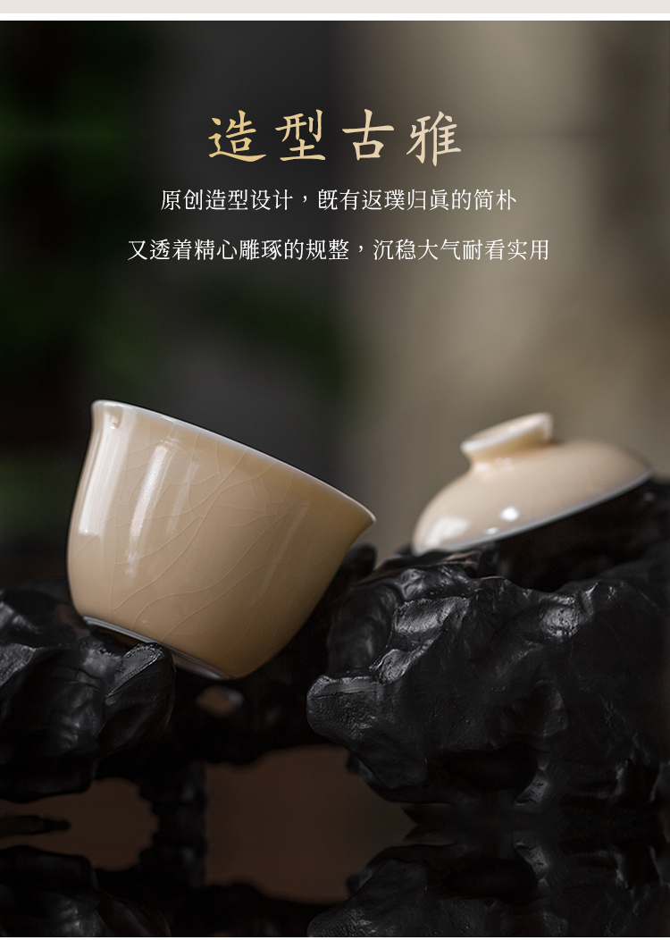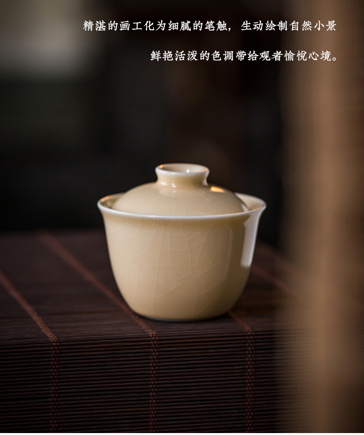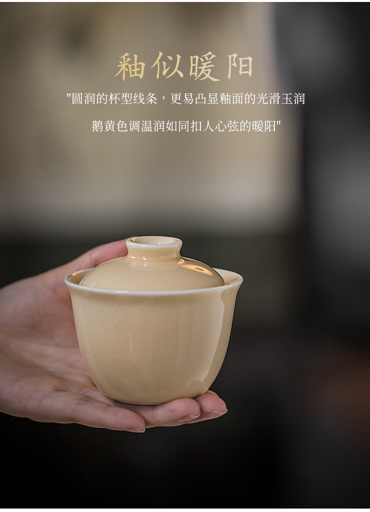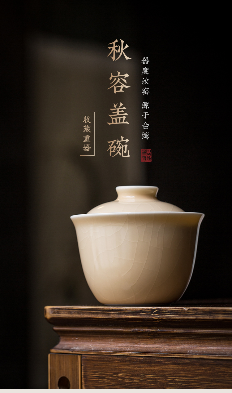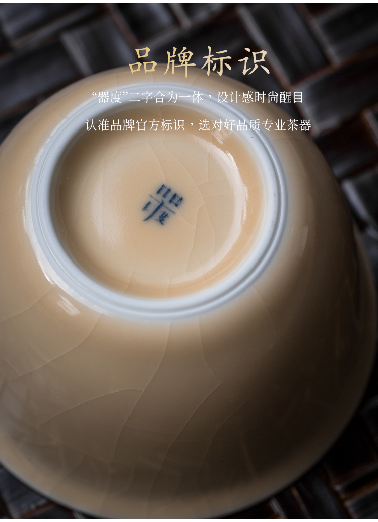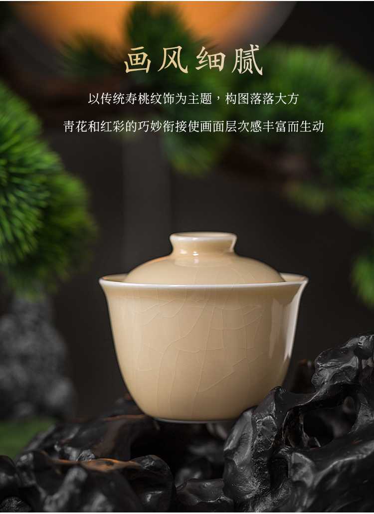 问鼎汝瓷鼎峰柴窑月白观月杯(梵红描金狮子绣球)