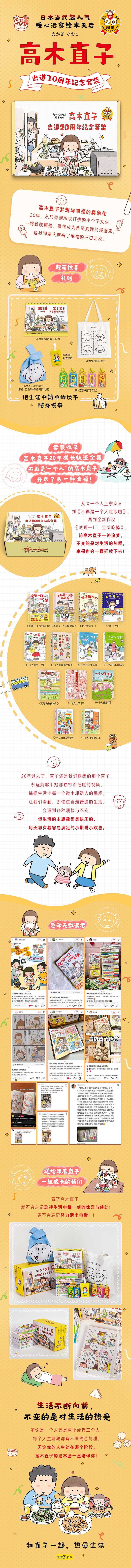 高木直子出道20周年纪念!超多惊喜礼赠!和高木直子一起,不停热爱生活★【高木直子出道20周年纪念套装】20年,从只身到东京打拼的小个子女生,直子一路走来成为备受欢迎的漫画家,也找到爱人拥有了幸福的三口之家。套装收录高木直子20年成长轨迹全集,从《一个人上东京》到《不再是一个人吃饭啦》,再到全新作品《吧唧一口,全部吃掉》,告别了;一个人的高木直子,开启了另一种幸福!★【百万粉丝翘首期盼的精装礼盒】超多惊喜礼赠,赠送高木直子帆布包1个、高木直子针织包1个、高木直子行李牌1个、高木直子书签1套(5款 )、高木直子2025年台历!生活的方方面面都有高木直子的陪伴!★【送给跟着直子一起成长的我们】20年来,读者们伴随着高木直子一起成长,一起追逐梦想。她;含着眼泪笑出来的画风感染了一批又一批读者,我们总能看到那个既熟悉又被遗忘的自己。每个人生阶段都有不同的苦与甜,无论你的人生处在哪个阶段,高木直子的绘本会一直陪伴你!