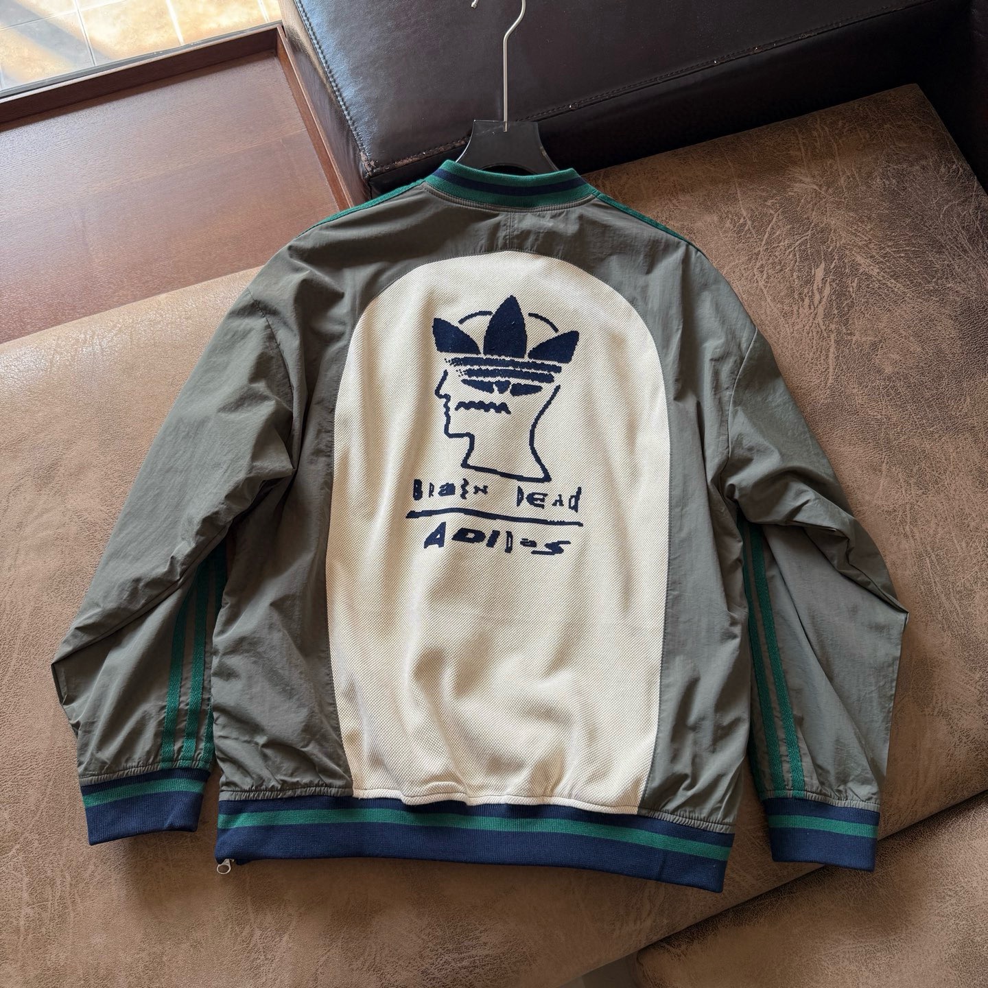 脑死亡联名款 SS 时尚休闲百搭套头长袖卫衣 男女同款,谁能拒绝一件把复古运动魂和艺术疯批感焊死的卫衣啊!针织肌理碰撞梭织面料,军绿×卡其×藏蓝的复古撞色,双重质感暴击,复古运动风瞬间拉满;正面立体线条标,是三叶草对复古潮流的硬核致敬;背面Brain Dead艺术头像涂鸦,直接把“小众艺术玩家”的身份焊在衣身,街头艺术感直接拉满,走到哪都是视觉焦点;撞色螺纹,侧边拉链设计,暗藏复古小心机,让穿搭更具层次感,每一处都透着“不随波逐流”不管是复古风爱好者,还是潮流艺术追随者,穿上它,就能在运动与艺术的边界肆意游走,轻松穿出独一份的潮酷腔调