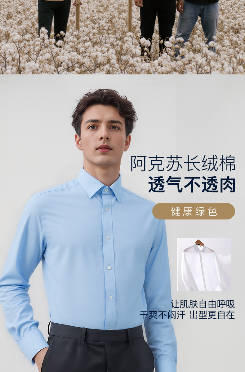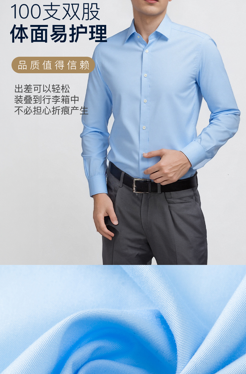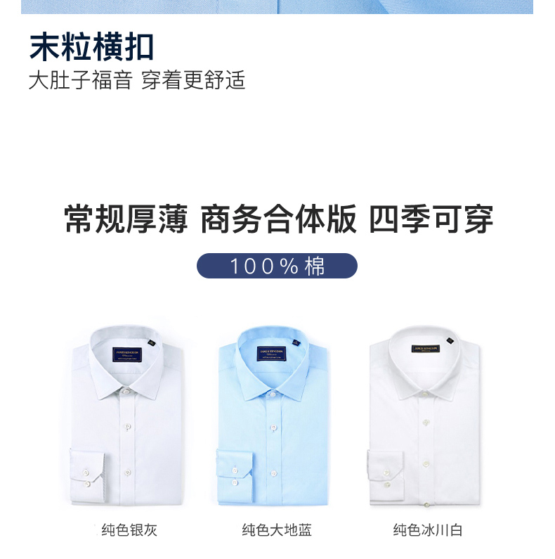 【100支双股 2件立减并送品牌袜一双】占姆士男士衬衫长袖高端商务正装免烫抗皱高支衬衣纯棉高级感