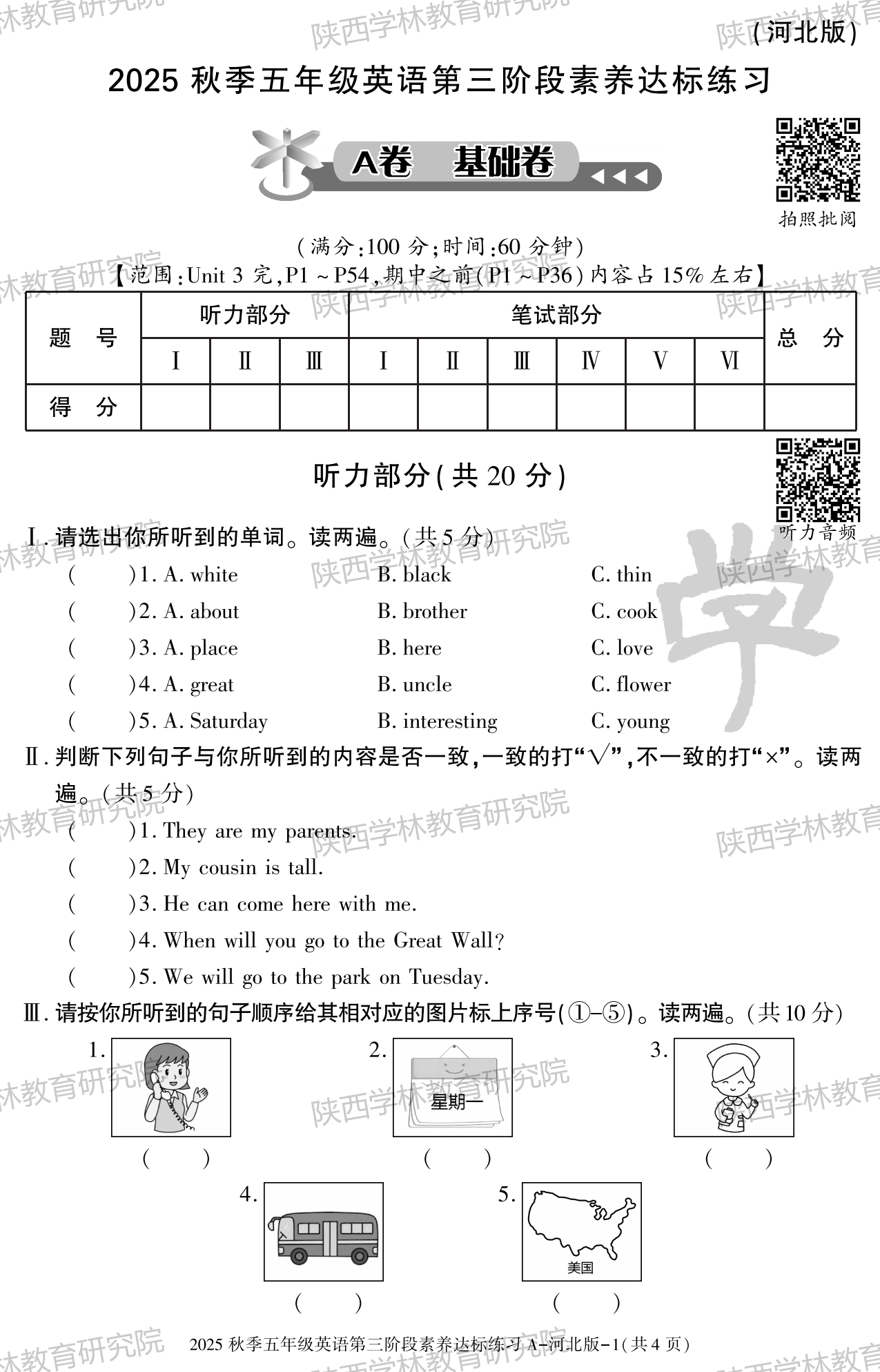 2025年秋小学【期末】自查卷(上册)语数英(版本可选)