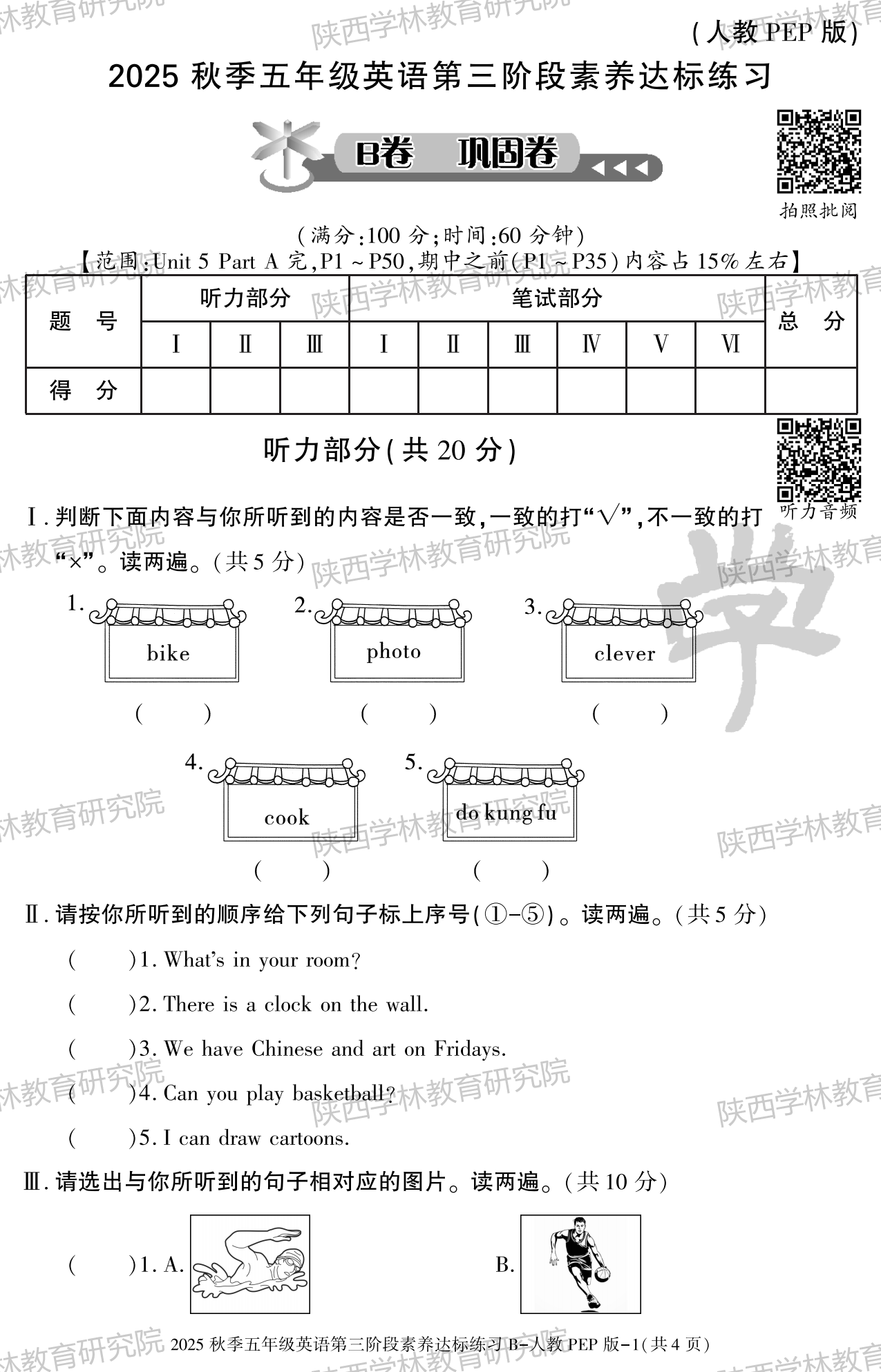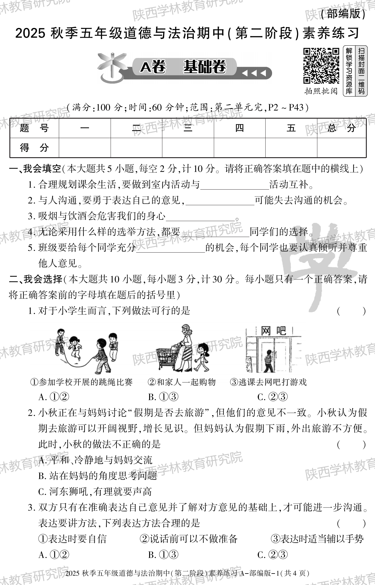 2025年秋小学【期中】自查卷(上册)语数英(版本可选)
