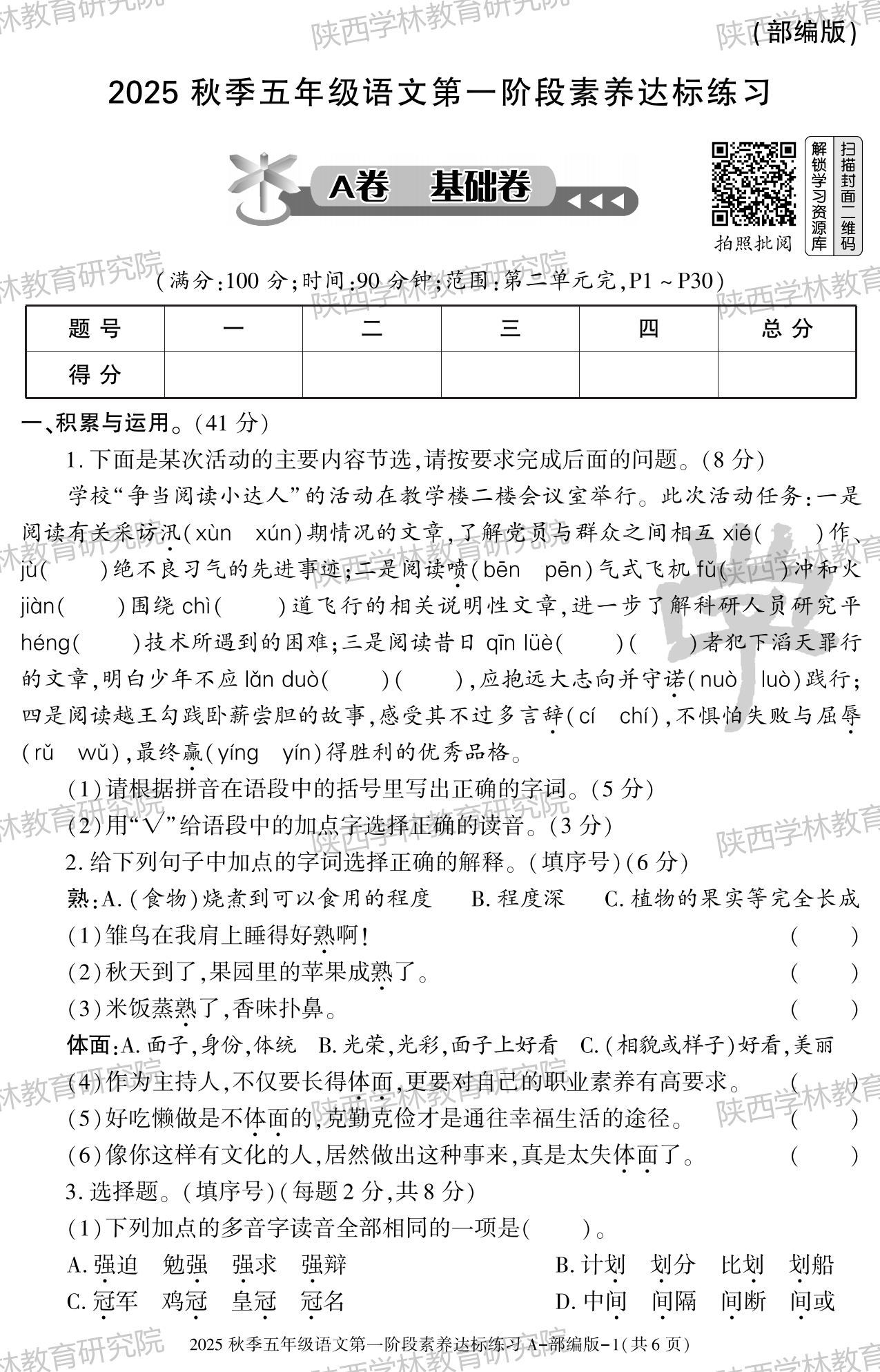 2026年陕西中考《题位①·全国真题汇编》语/数/英/物/化