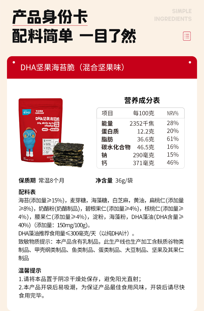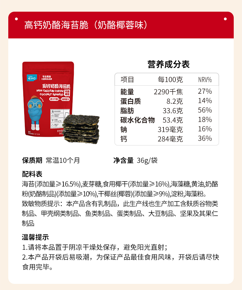 忆小口高钙奶酪海苔脆(奶酪椰蓉)/DHA坚果海苔脆(混合坚果)36g