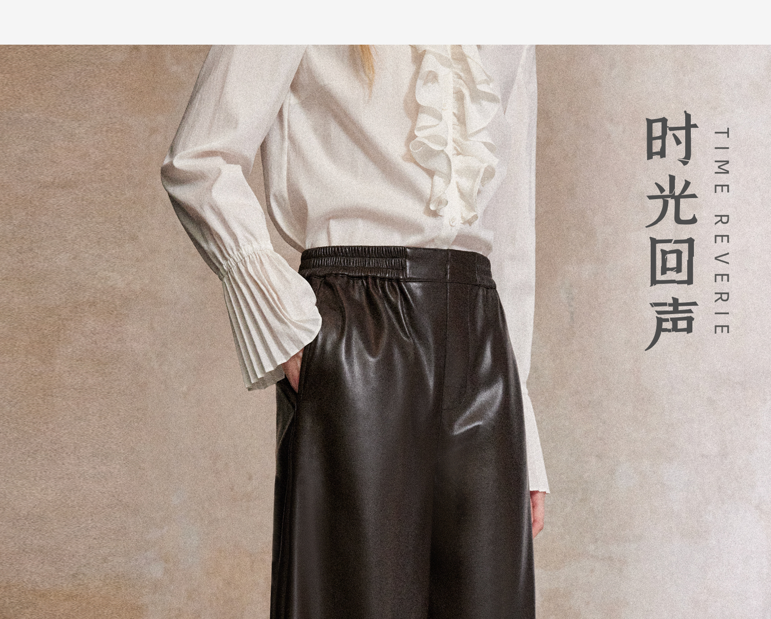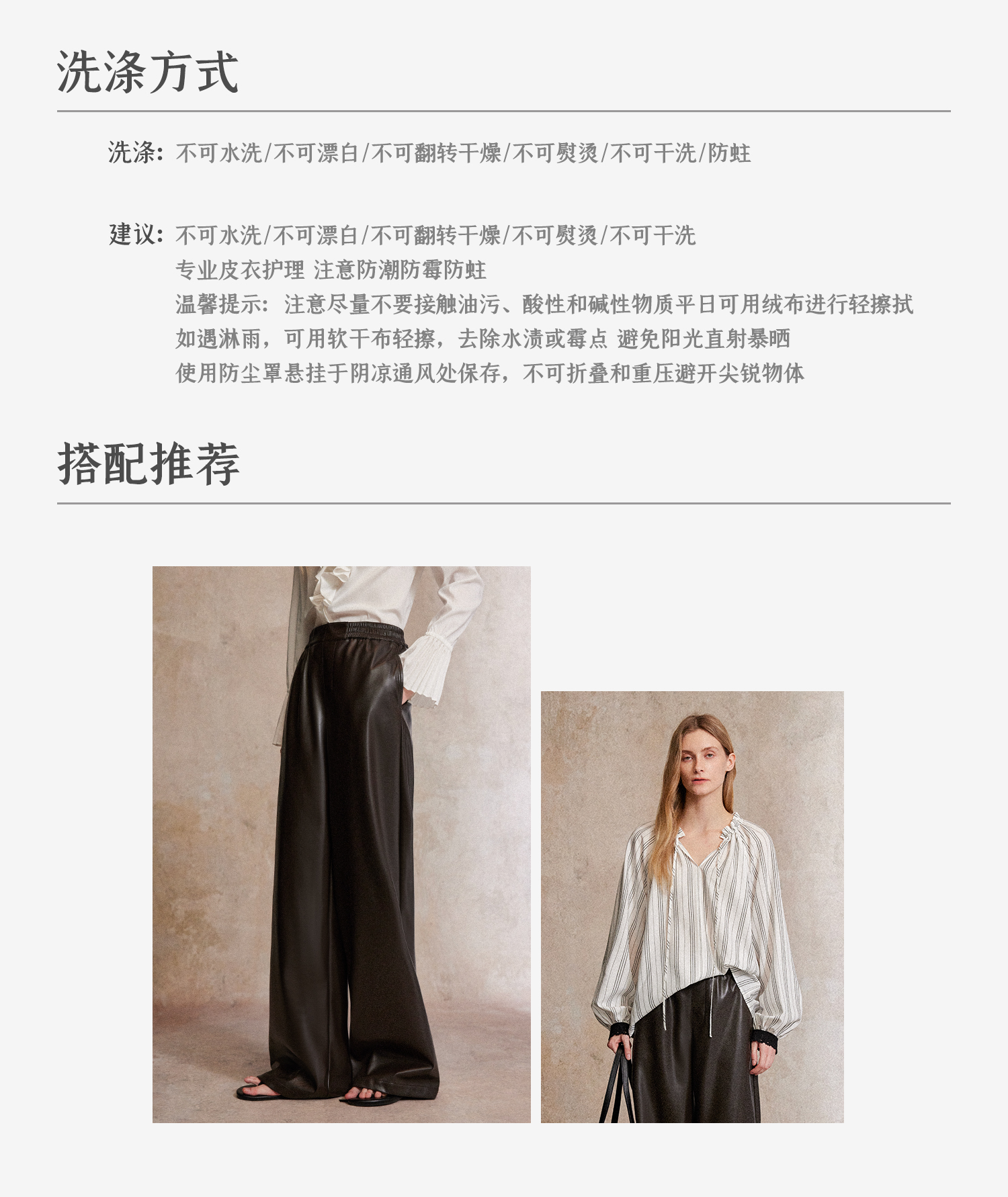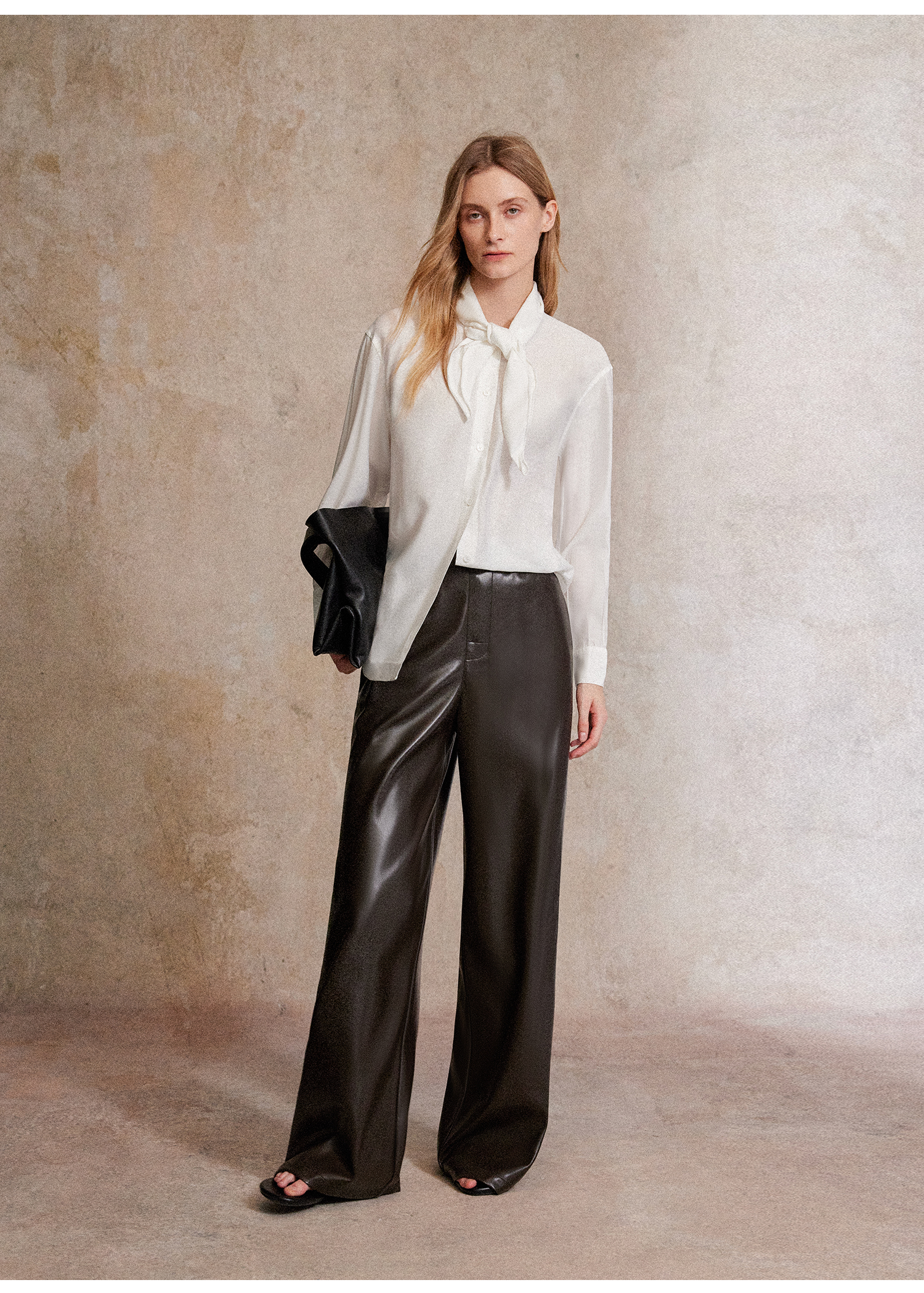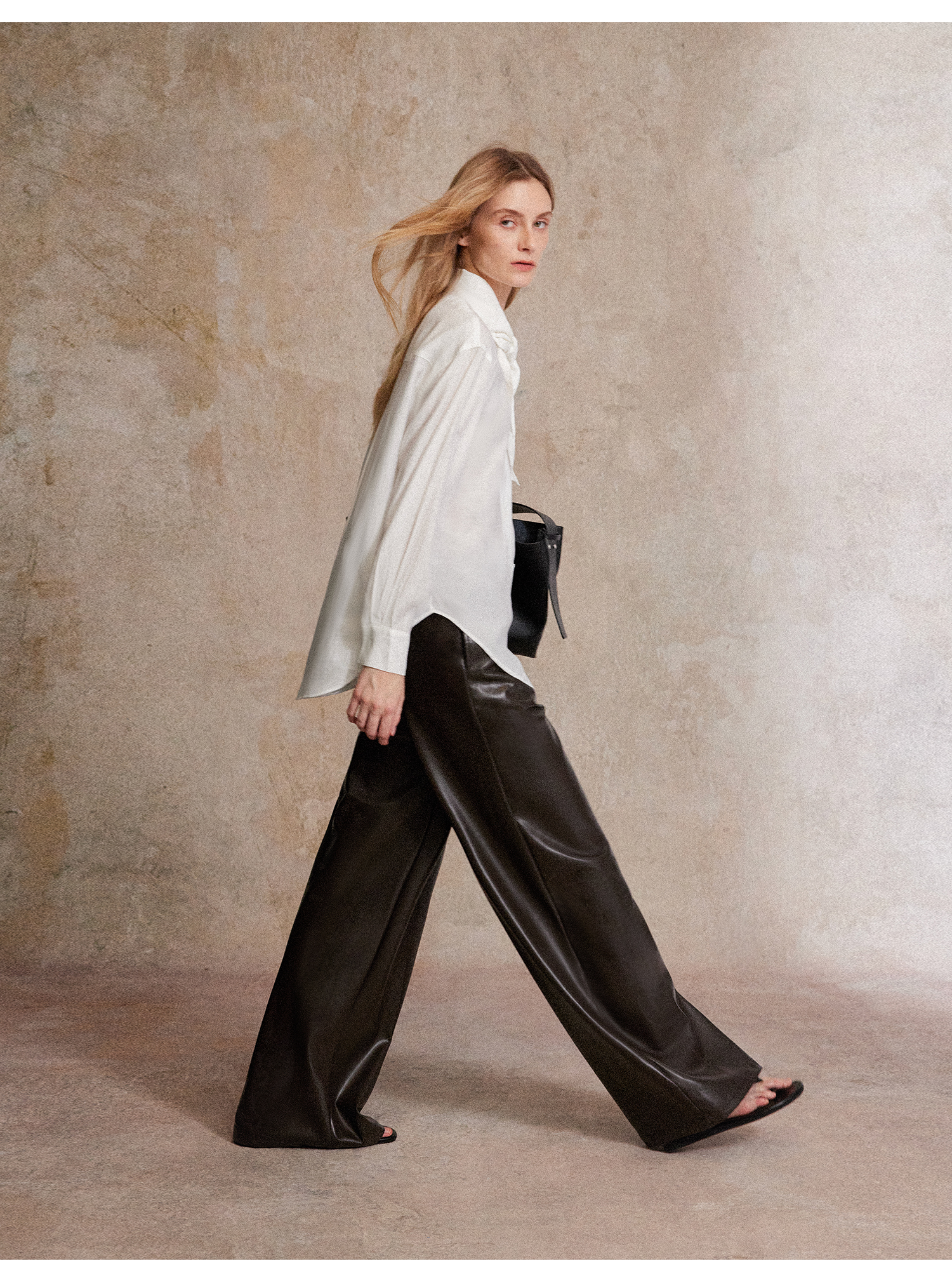 C+IMPRESS/西嘉 酷飒腔调 中性风设计感蛋白皮阔腿裤长款PU皮裤女