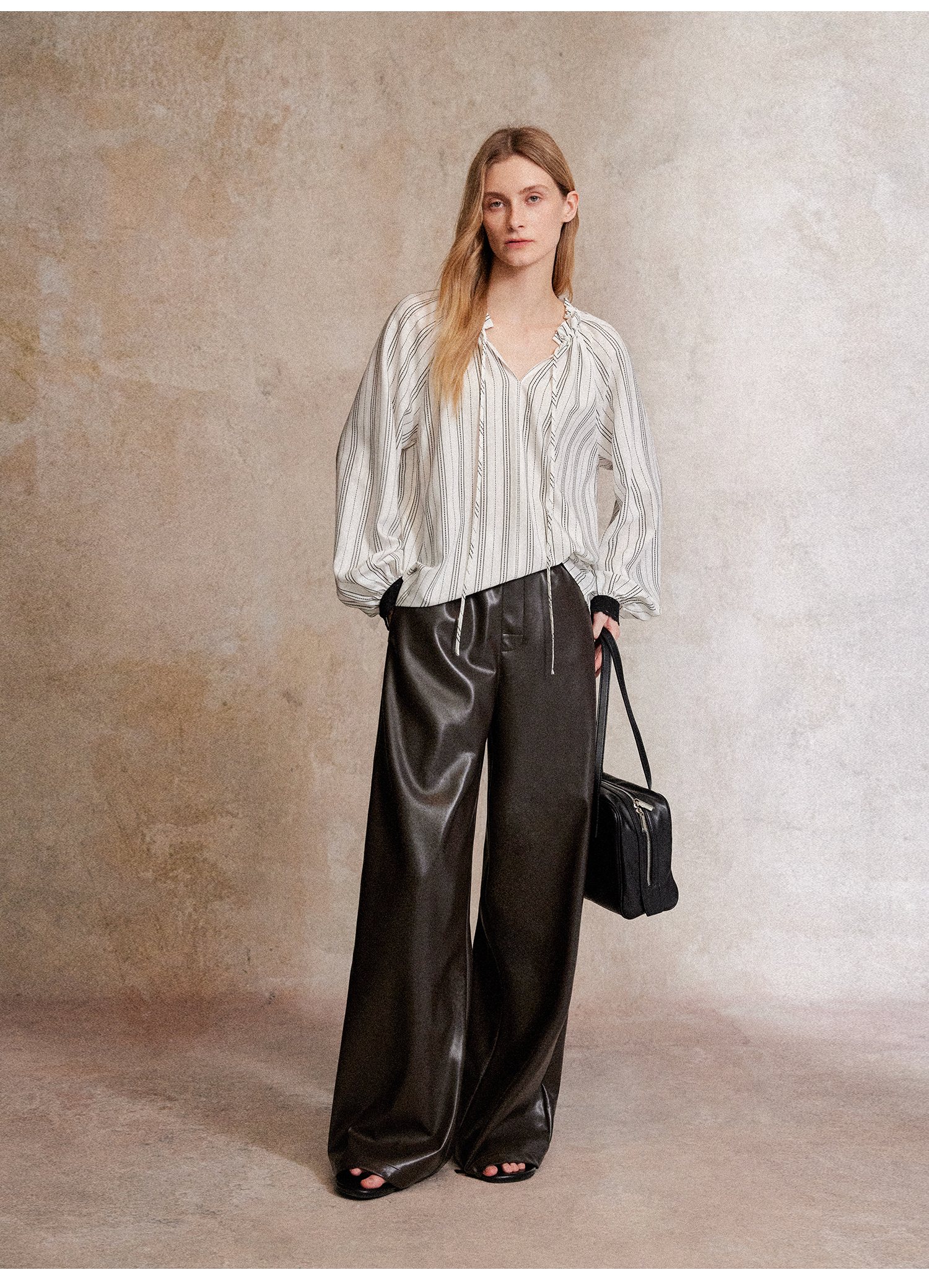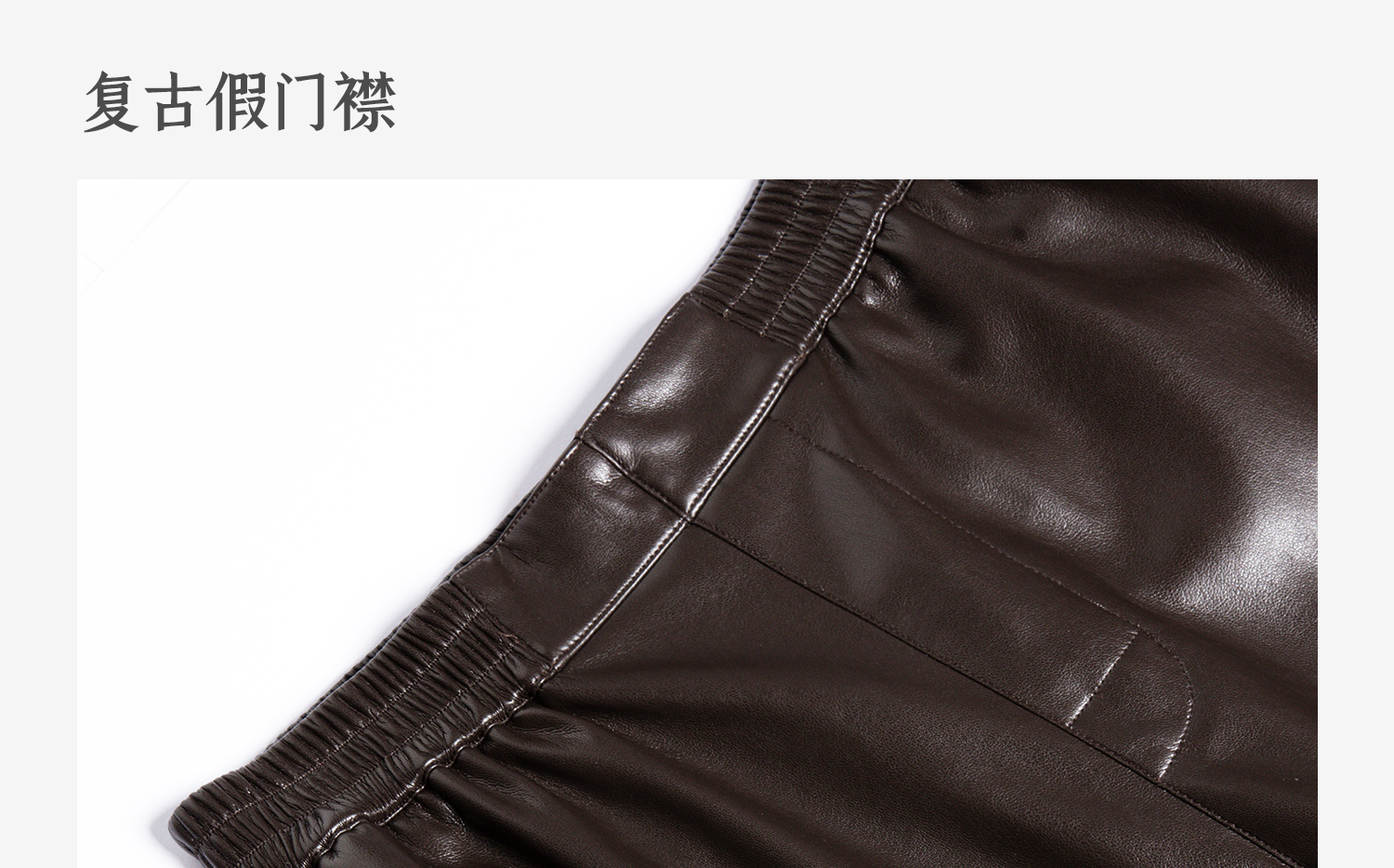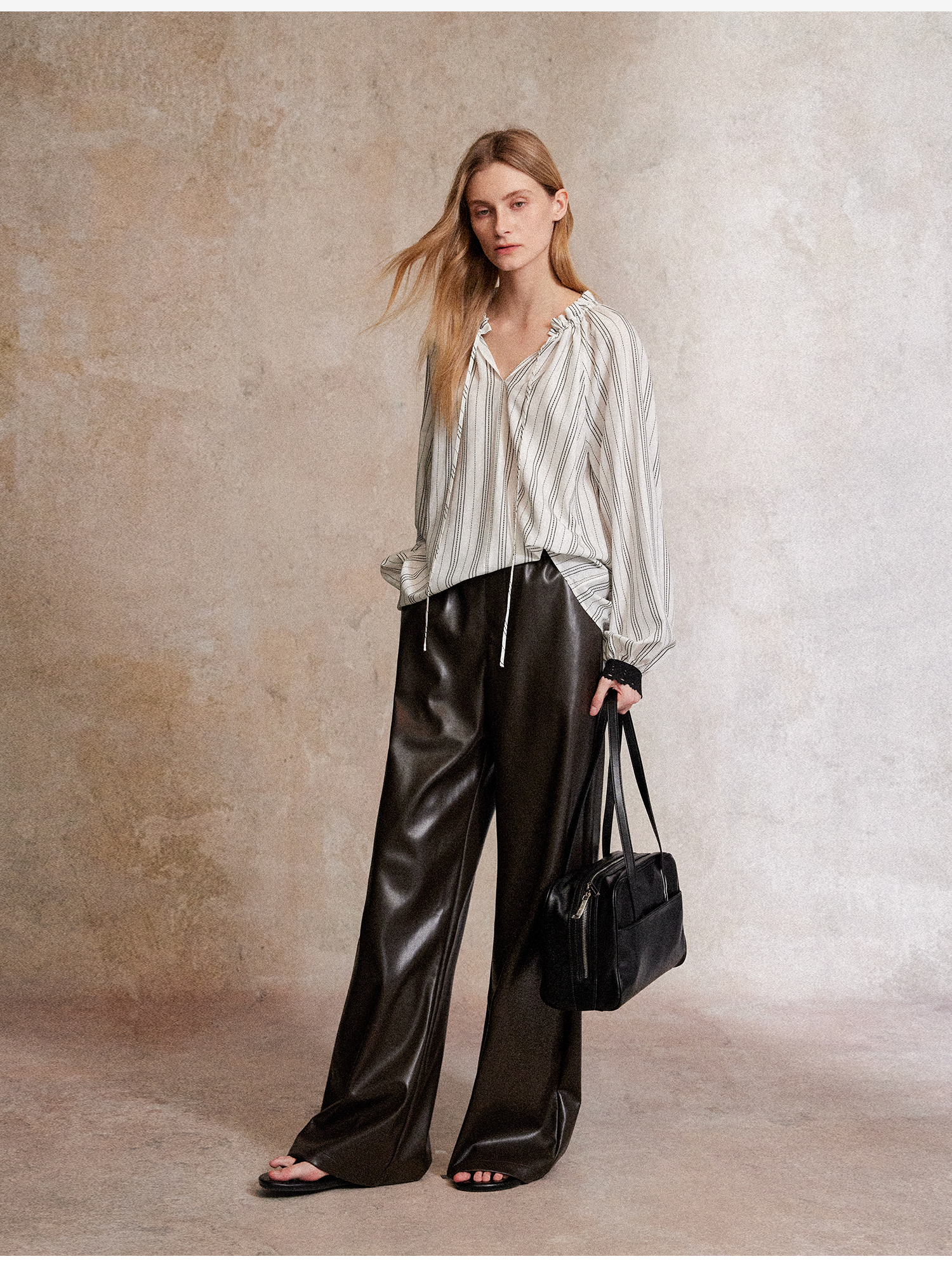 C+IMPRESS/西嘉 酷飒腔调 中性风设计感蛋白皮阔腿裤长款PU皮裤女