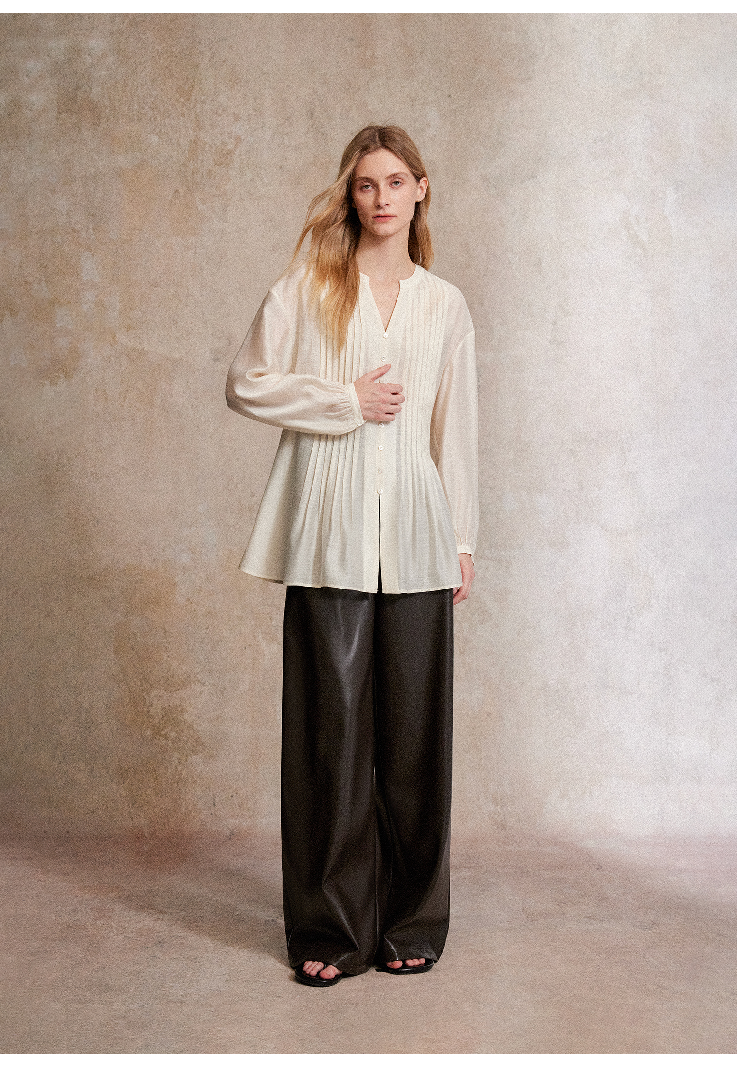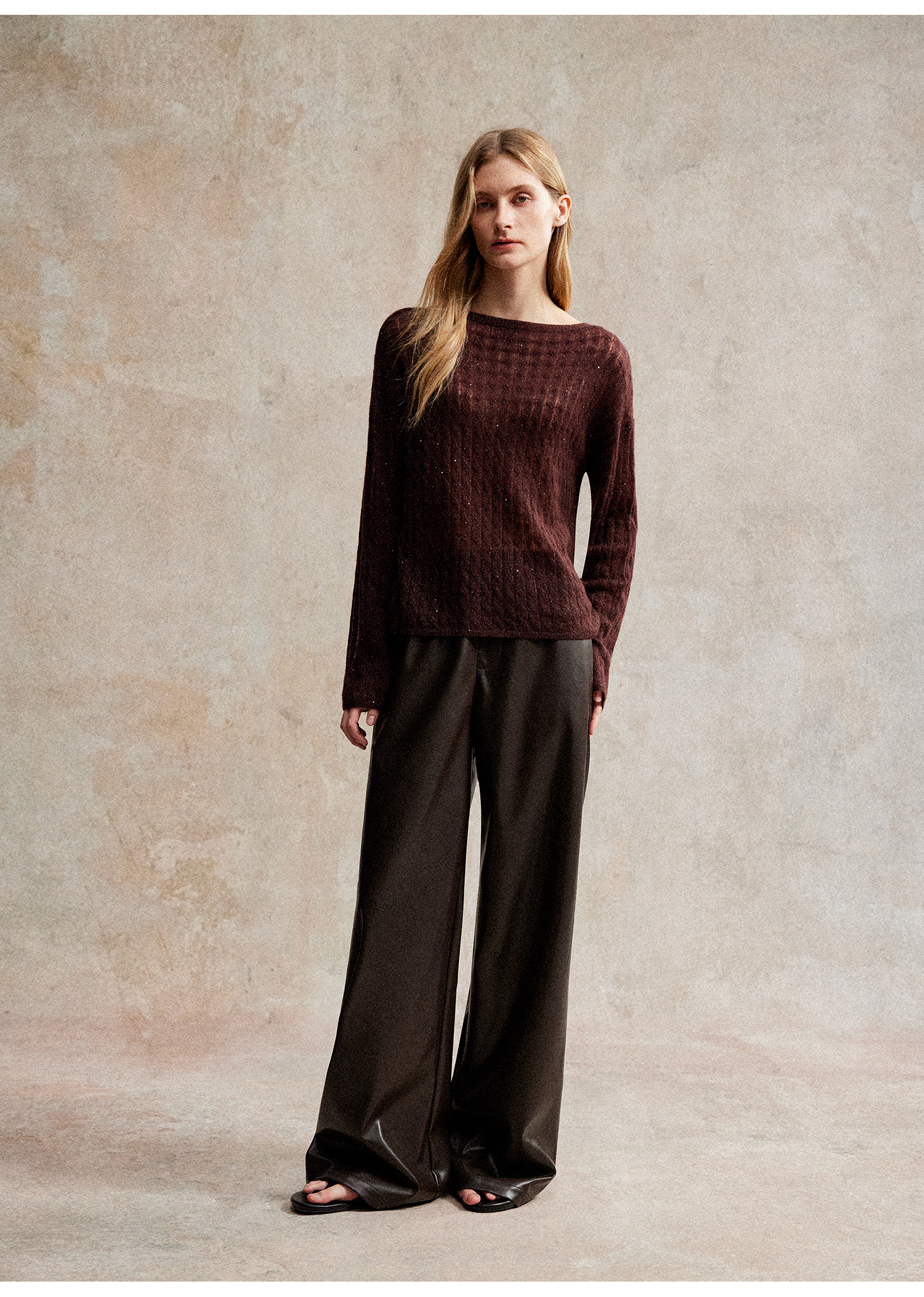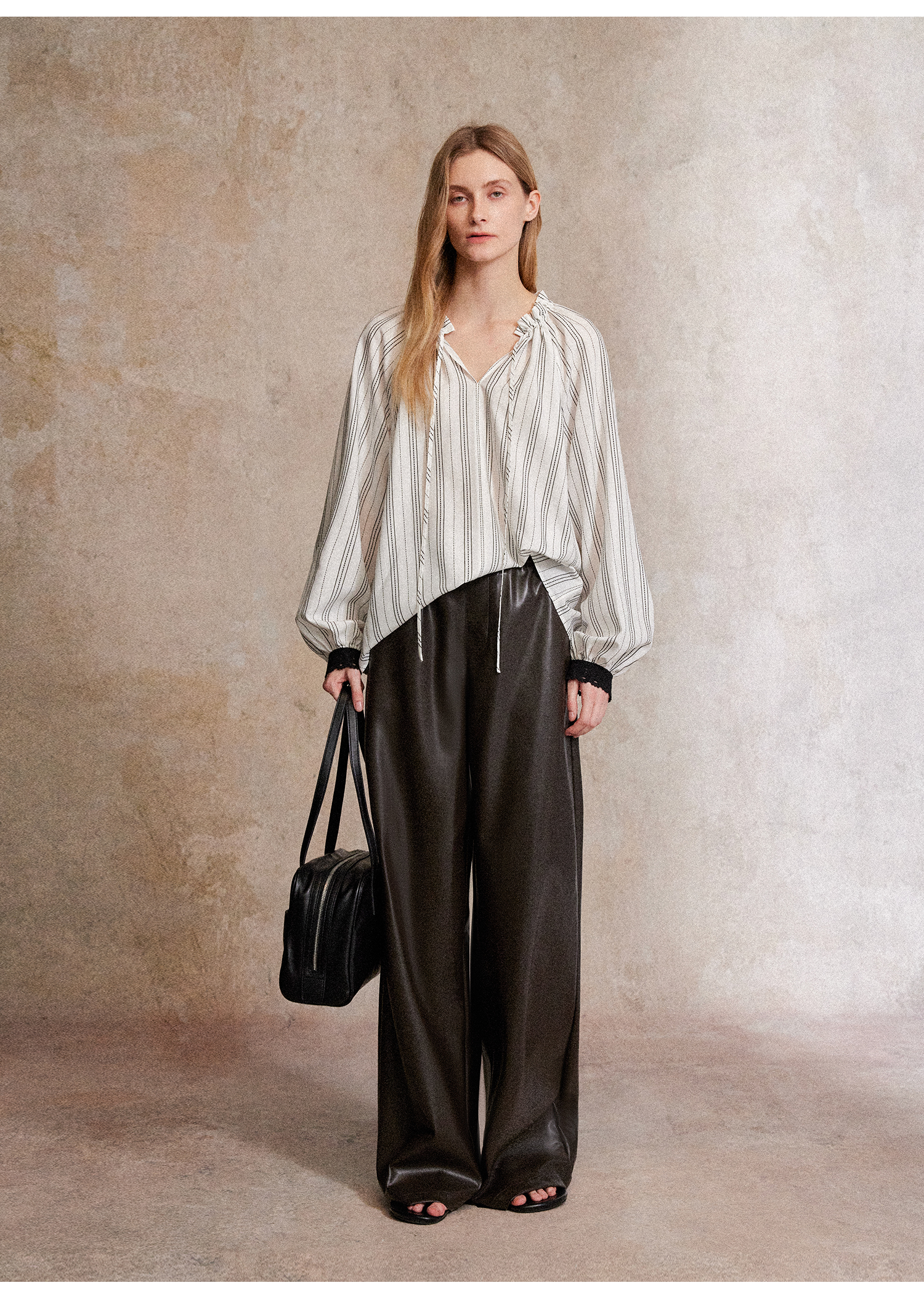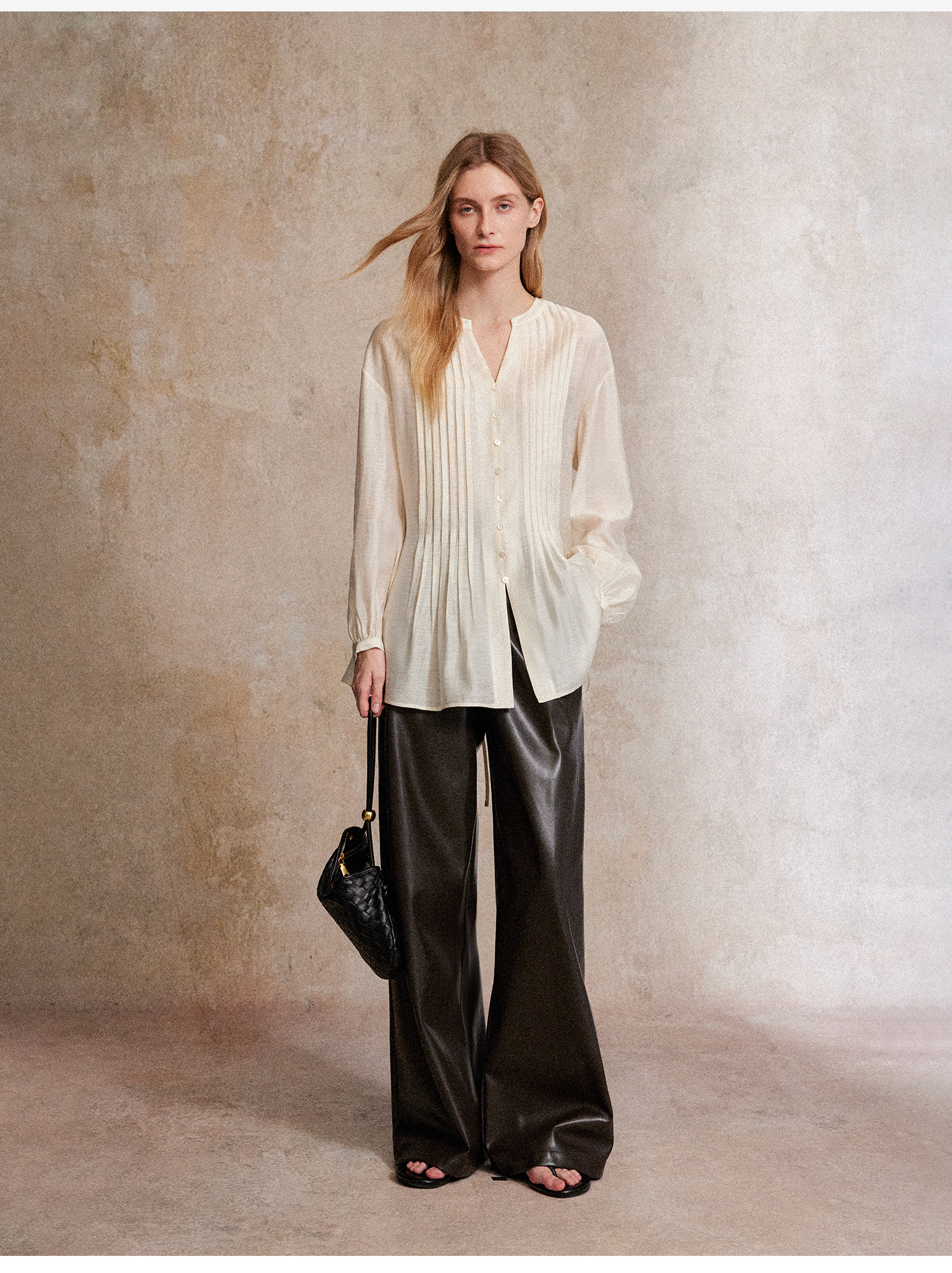 C+IMPRESS/西嘉 酷飒腔调 中性风设计感蛋白皮阔腿裤长款PU皮裤女