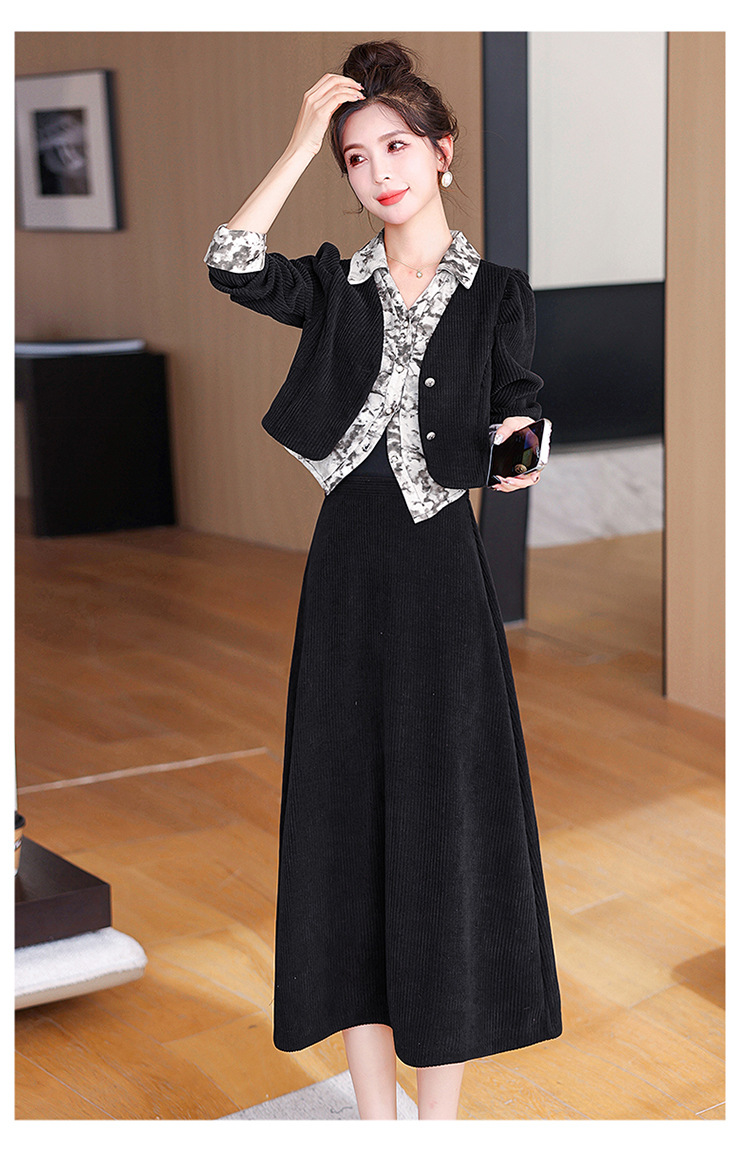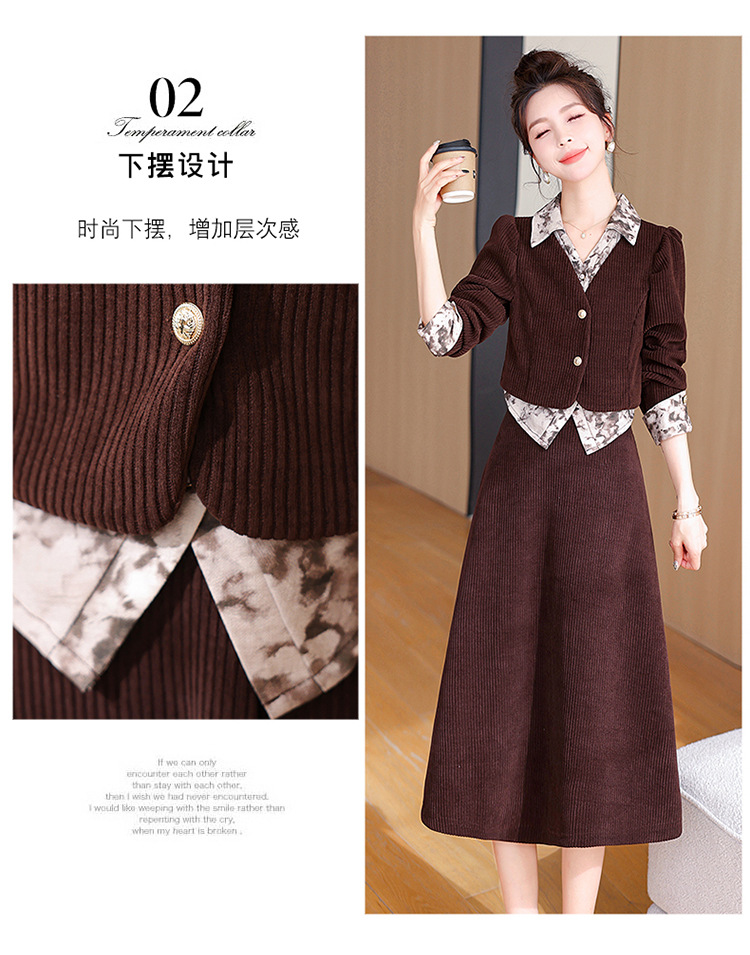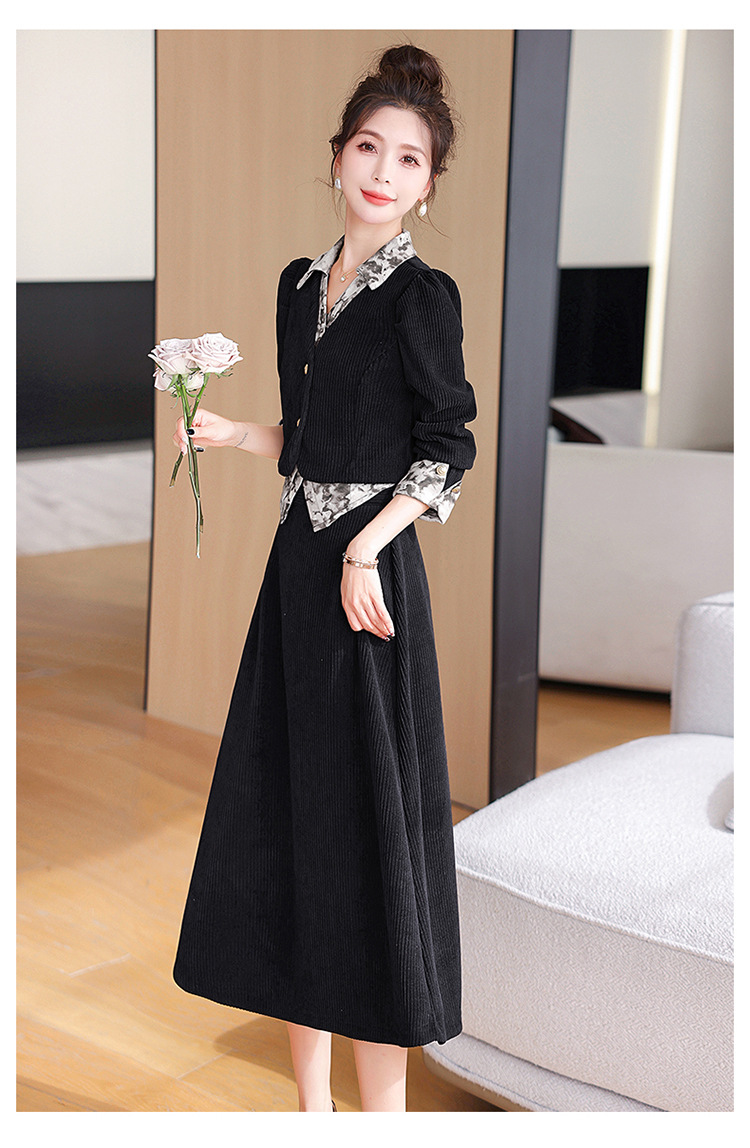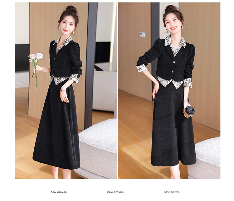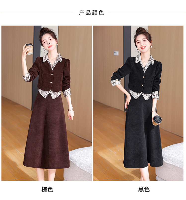 HR WC1139气质时尚大方拼接撞色假两件上衣半裙两件套 商品图3