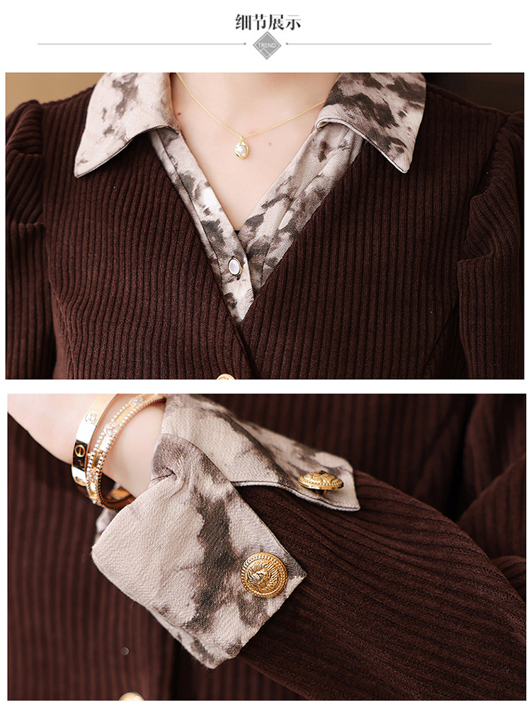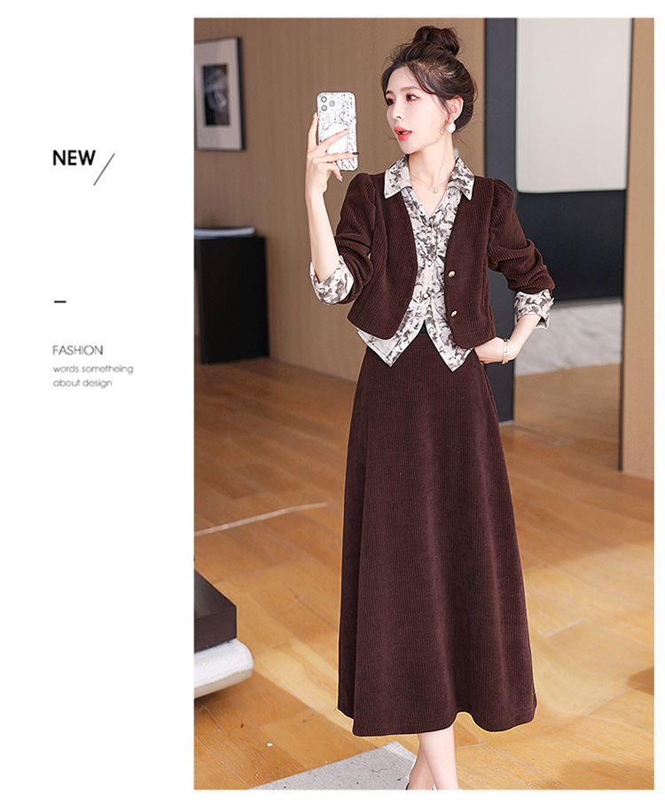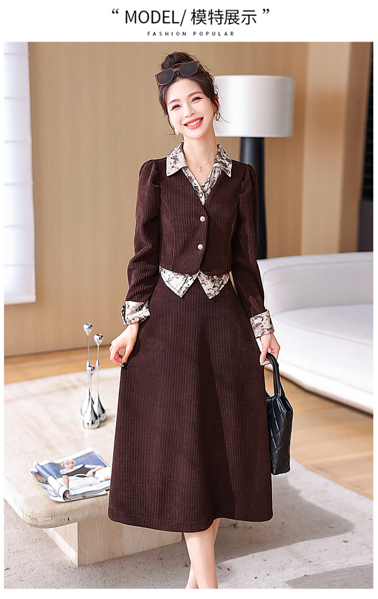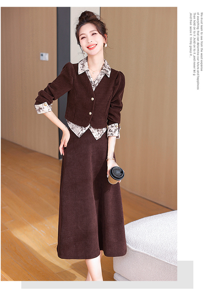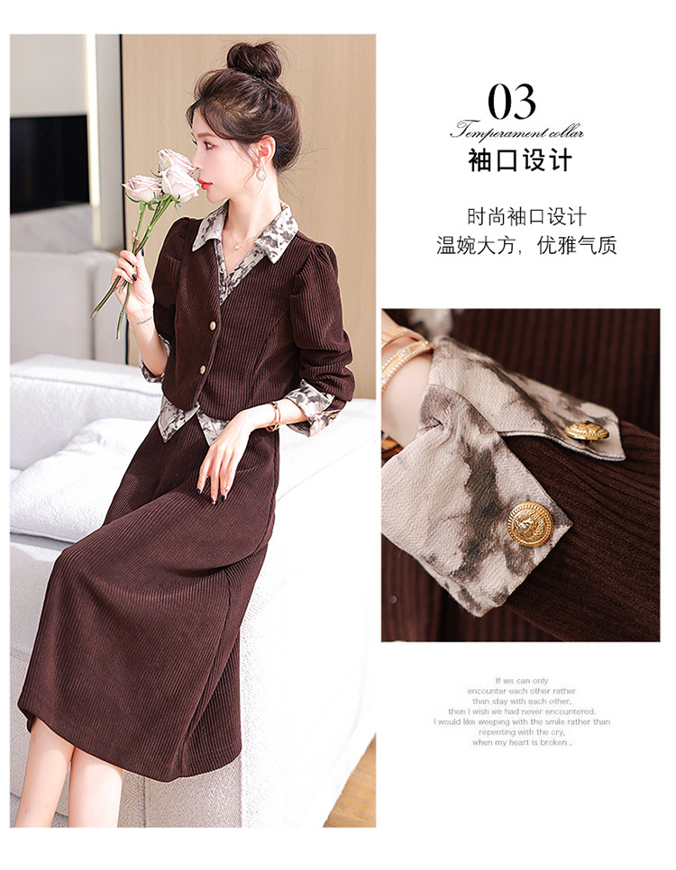 HR WC1139气质时尚大方拼接撞色假两件上衣半裙两件套 商品图3