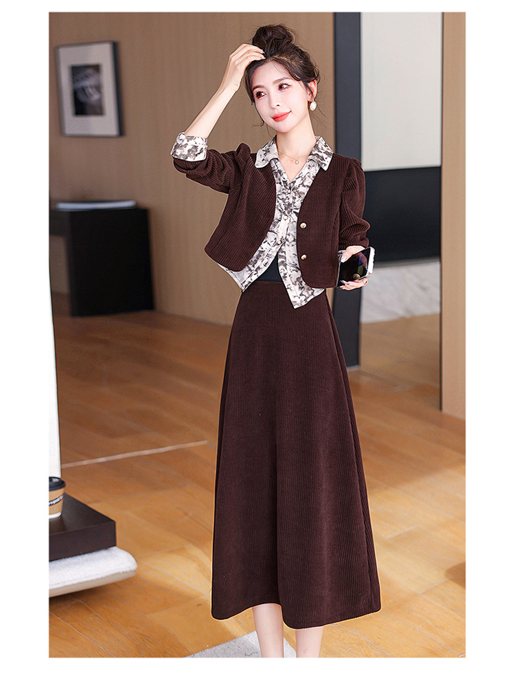 HR WC1139气质时尚大方拼接撞色假两件上衣半裙两件套 商品图0