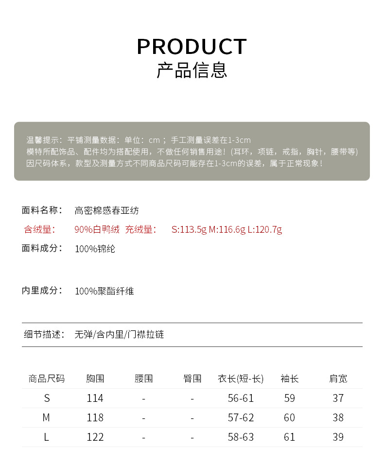 【高货wl】全新升级【铂金会员441/天猫599/差价158】(33650) 洛诗琳新款时尚通勤休闲洋气高领加厚短款羽绒服外套女冬