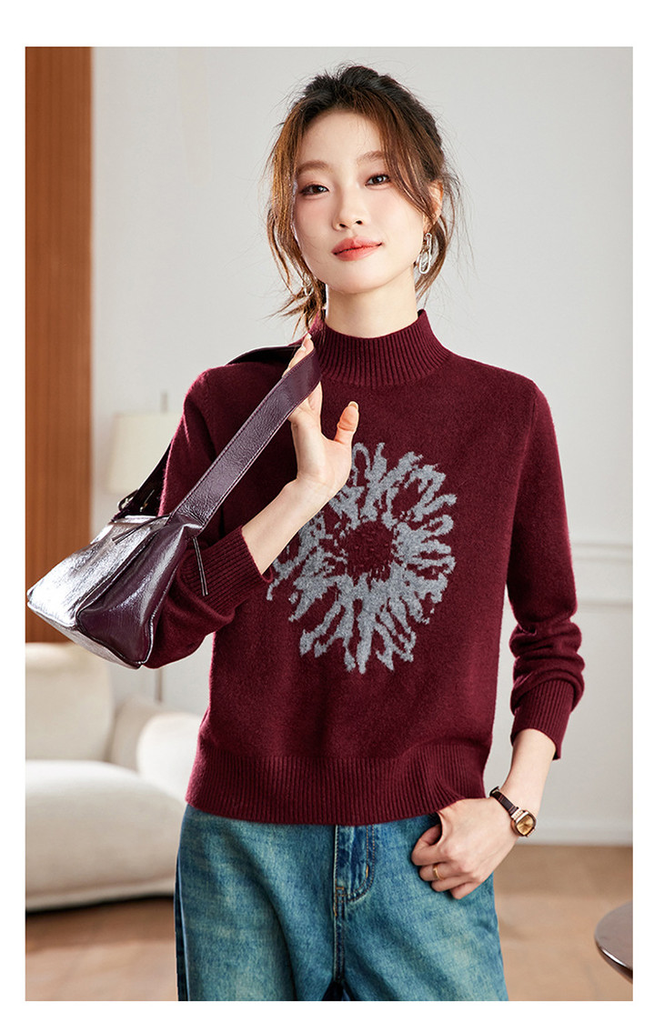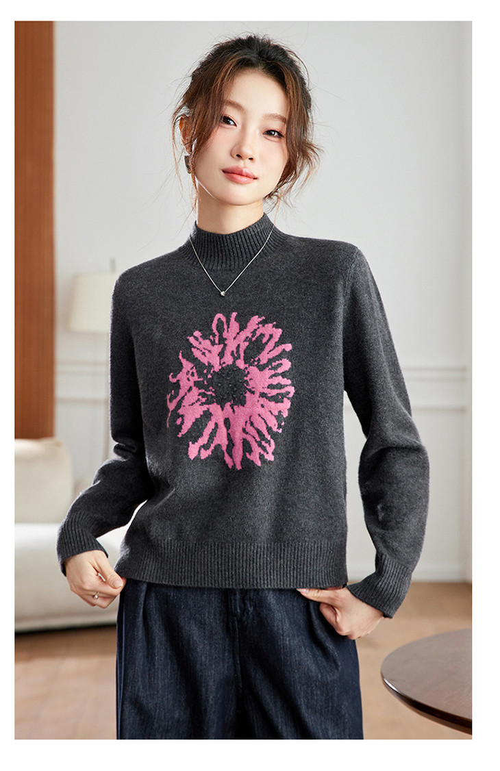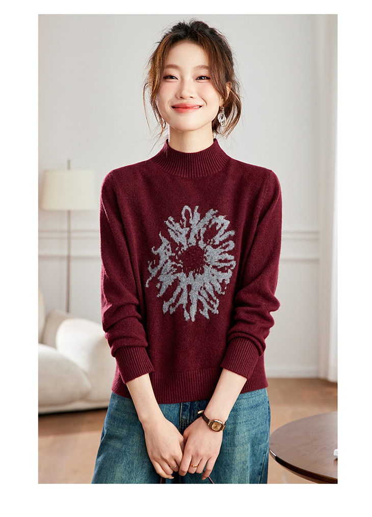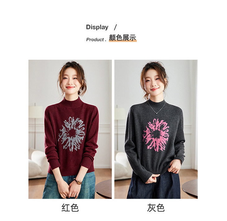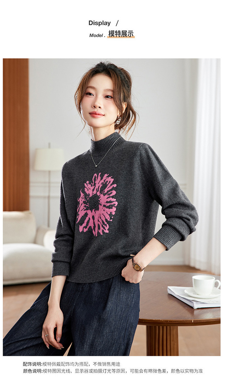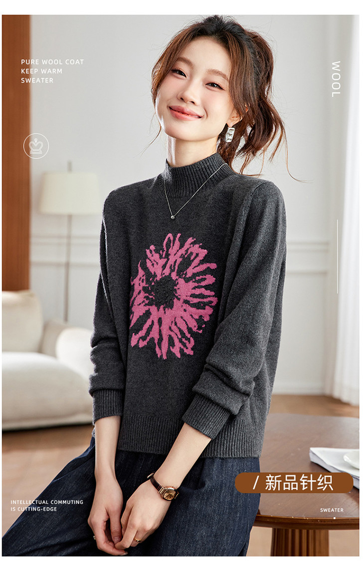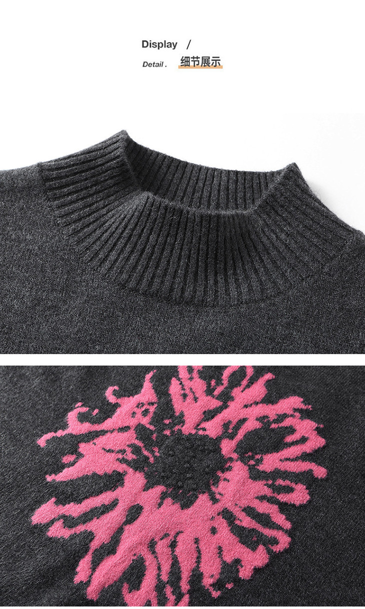 太阳花半高领套头毛衣,慵懒厚款针织衫打底上衣CC-22-2853