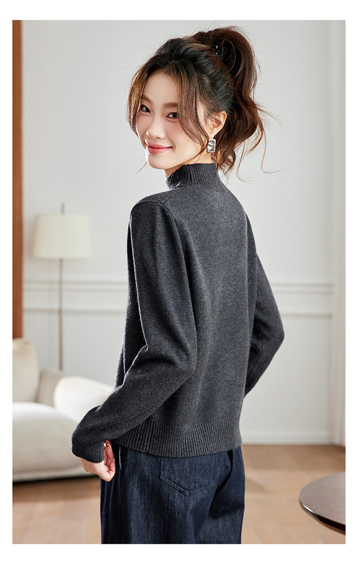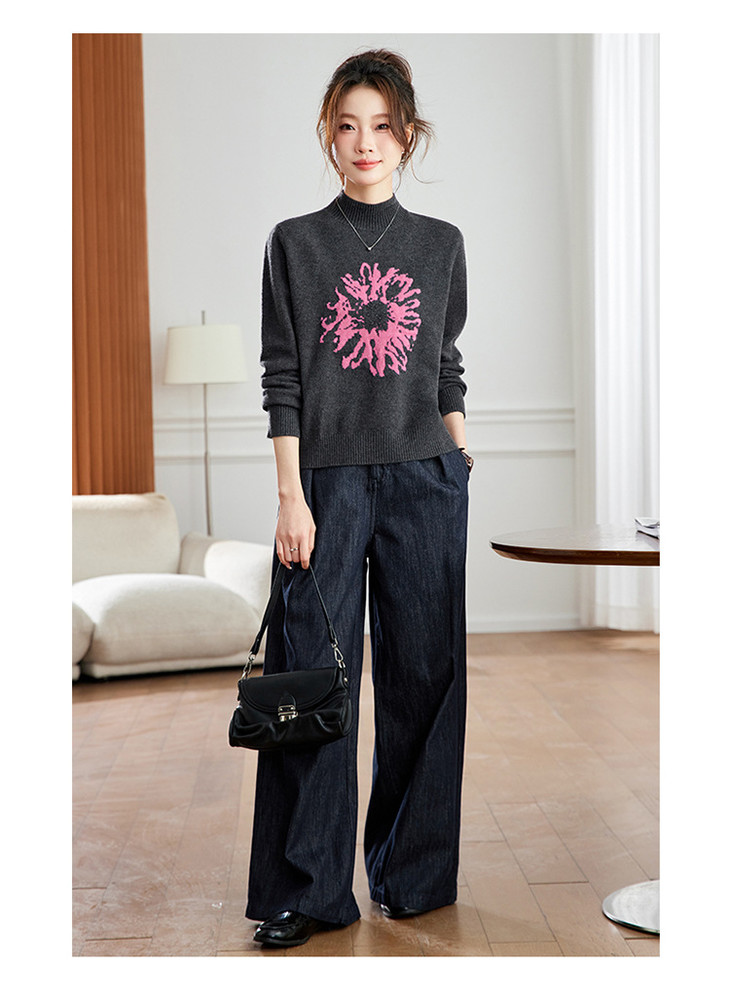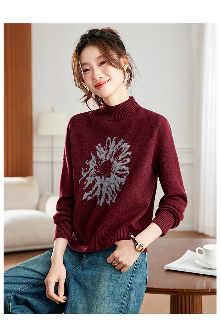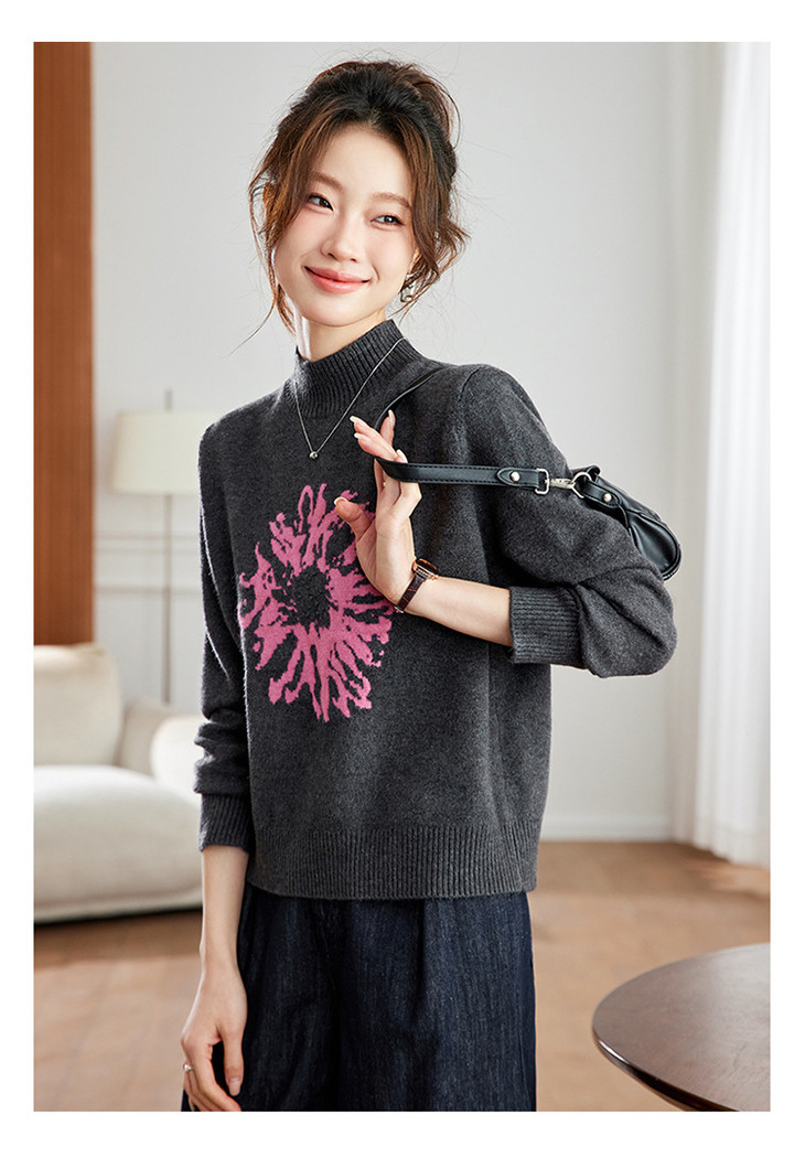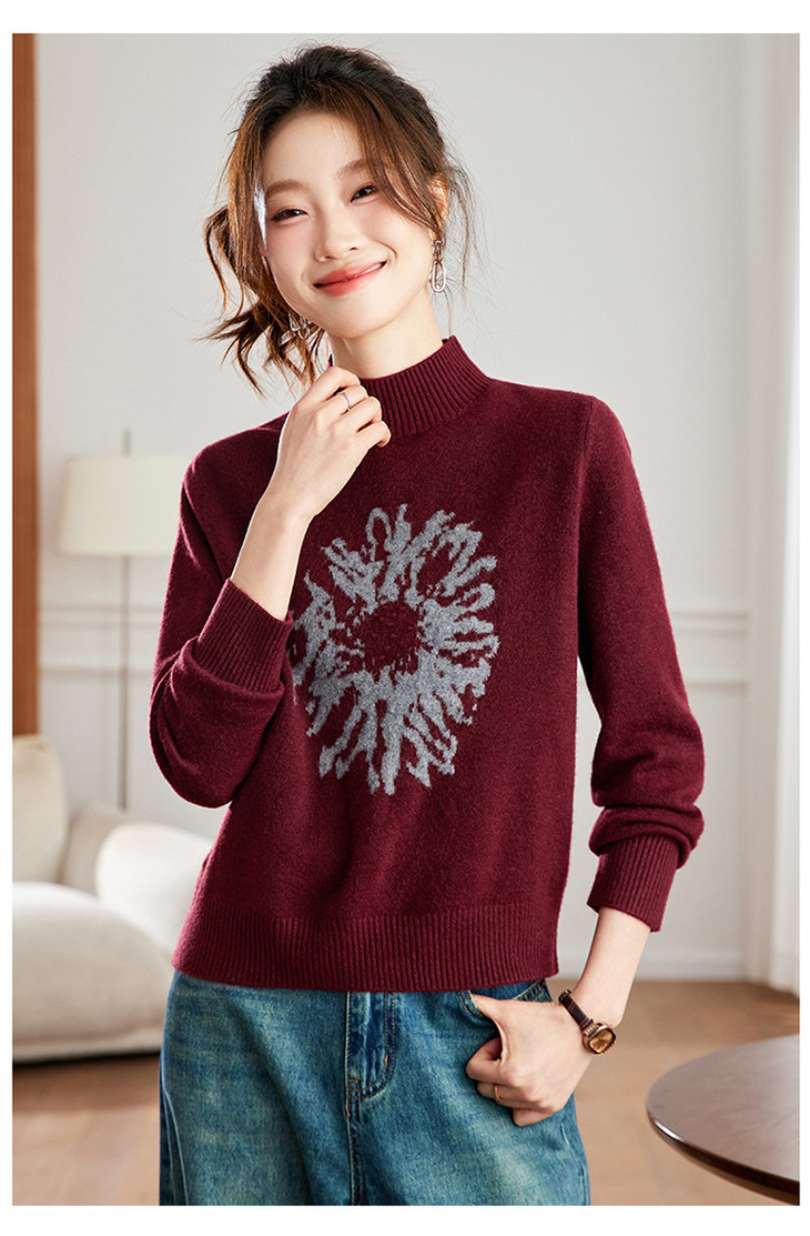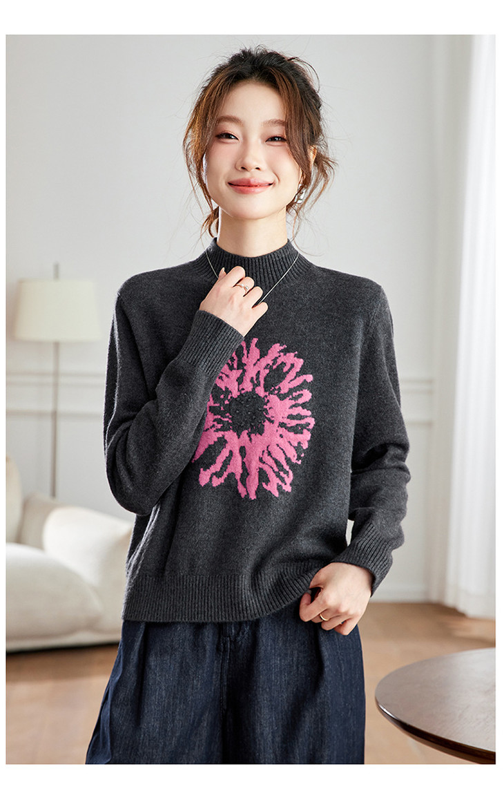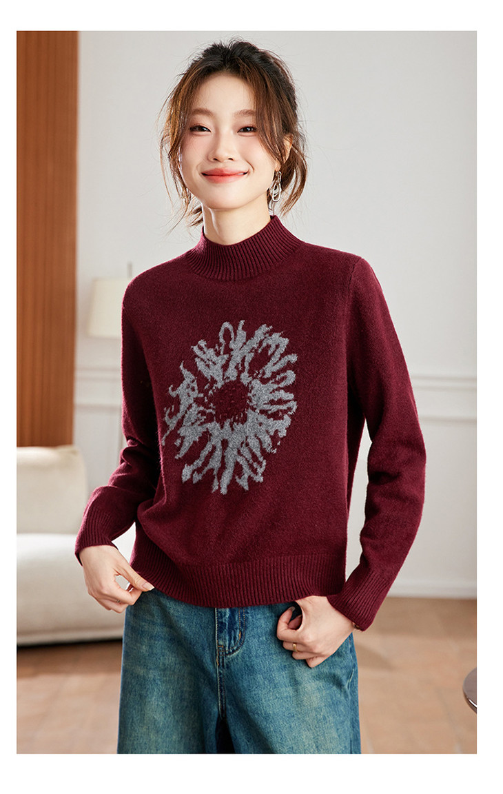 太阳花半高领套头毛衣,慵懒厚款针织衫打底上衣CC-22-2853