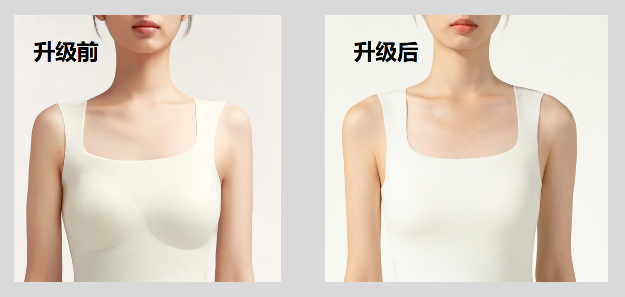 保暖背心的里料是一层带胸垫如下图升级前效果。