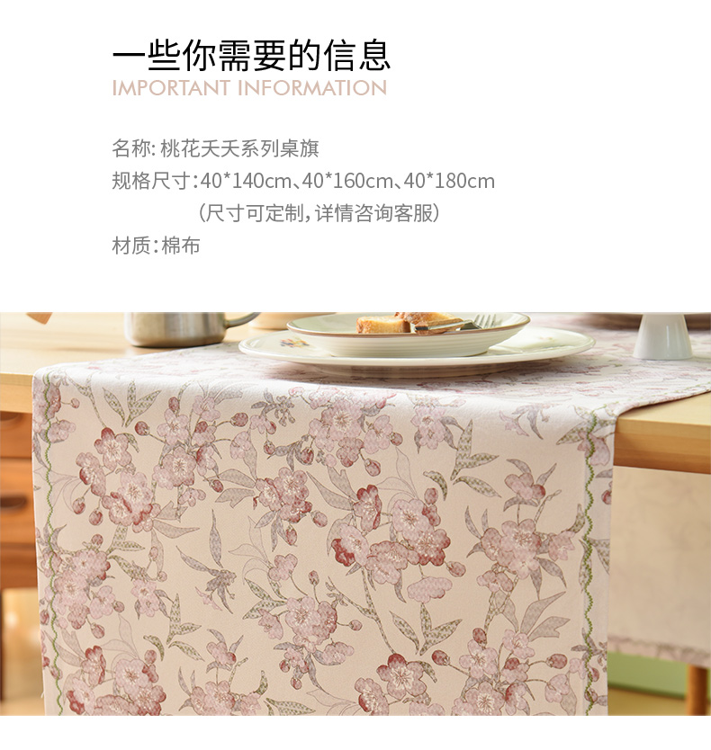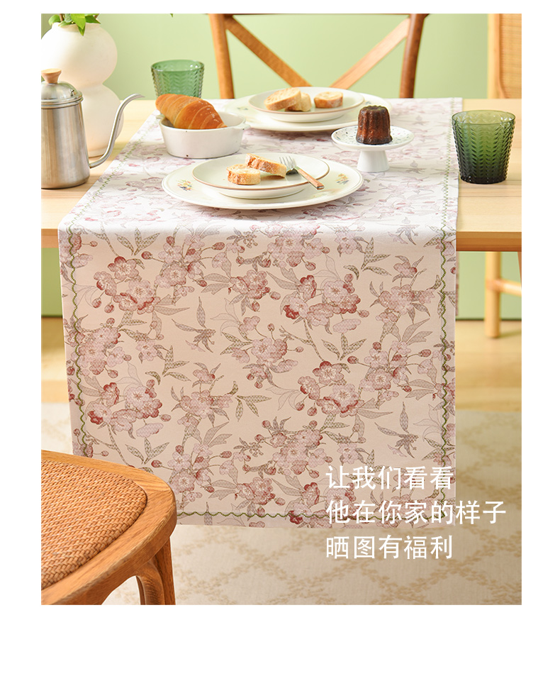 桃花夭夭系列桌旗轻奢茶旗高端茶几法式复古美式桌旗