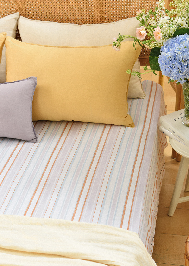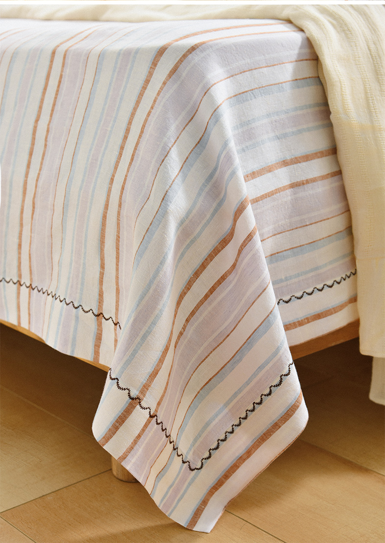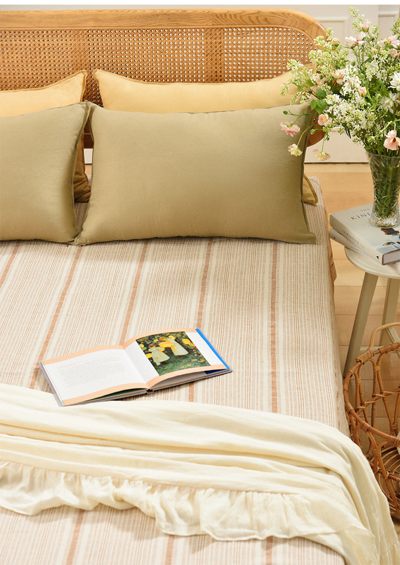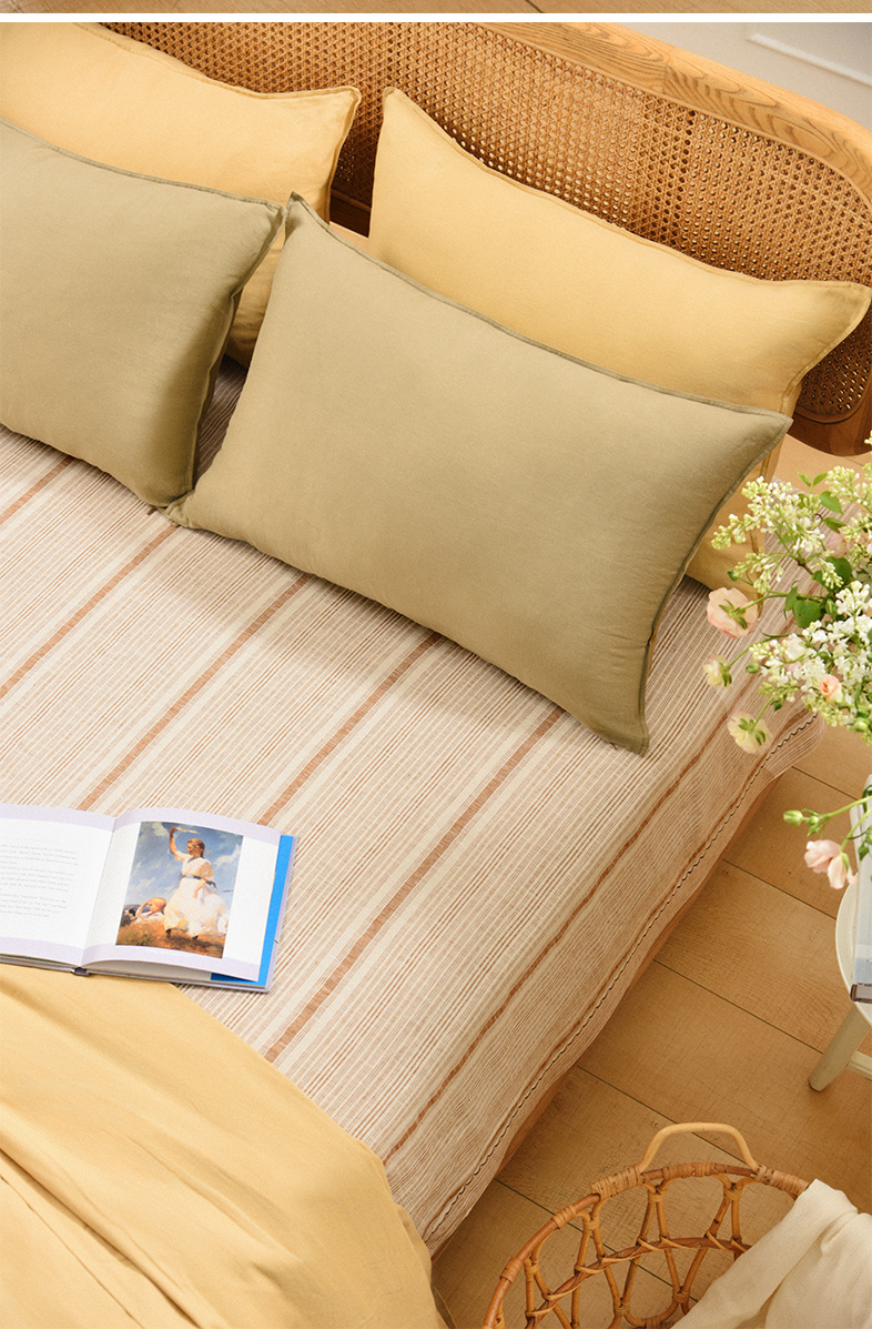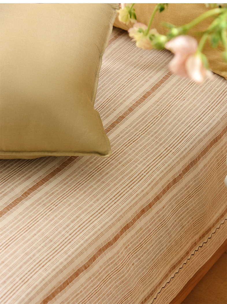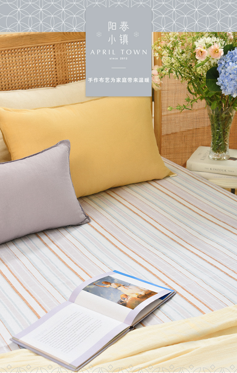亚麻条纹床单老粗布夏季双人床定制