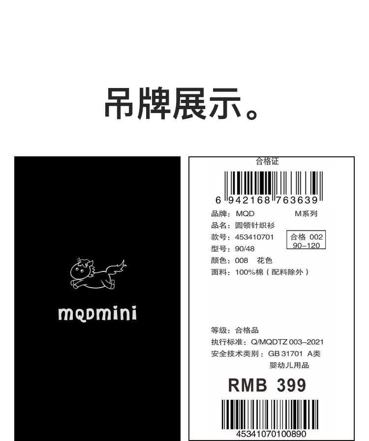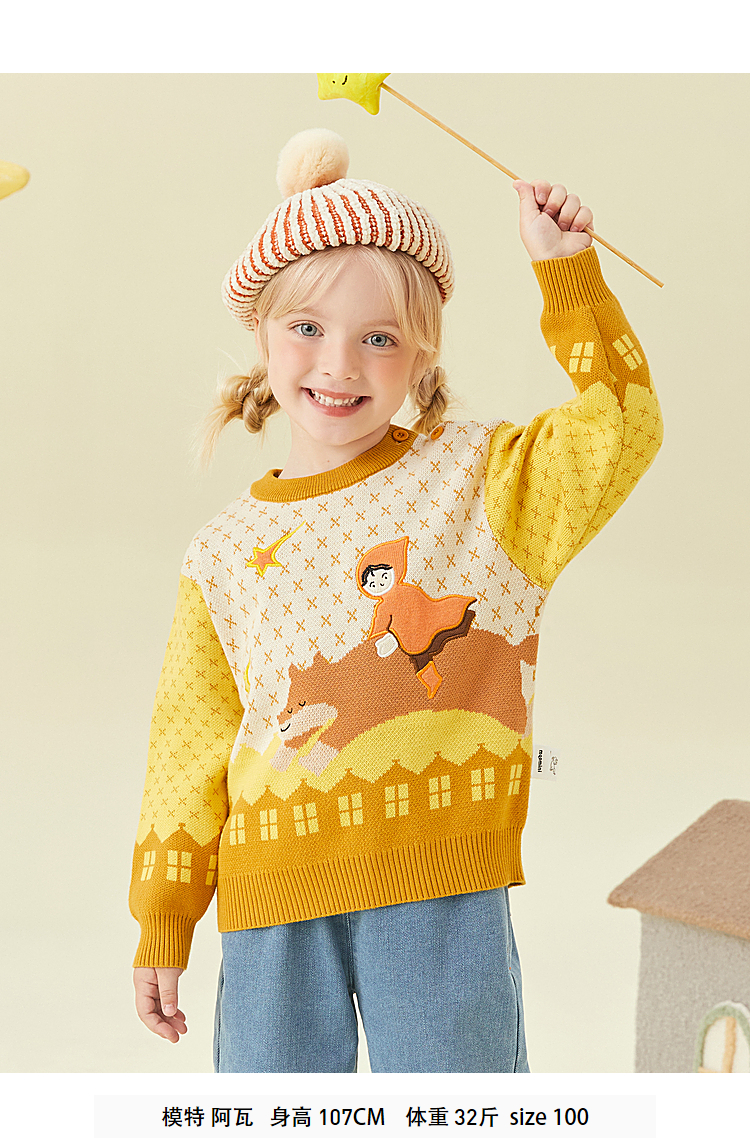 【秒】【专柜同款】MQD童装女小童毛衣秋冬新款萌趣加厚儿童针织衫