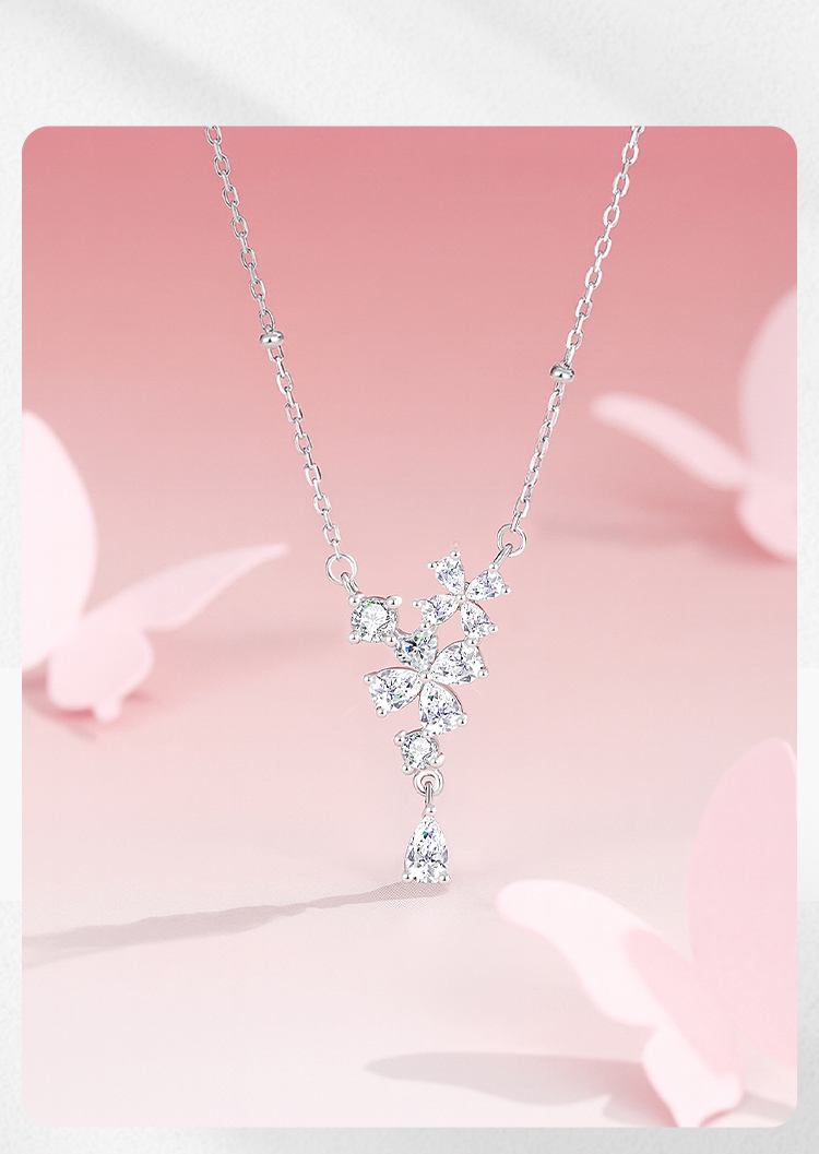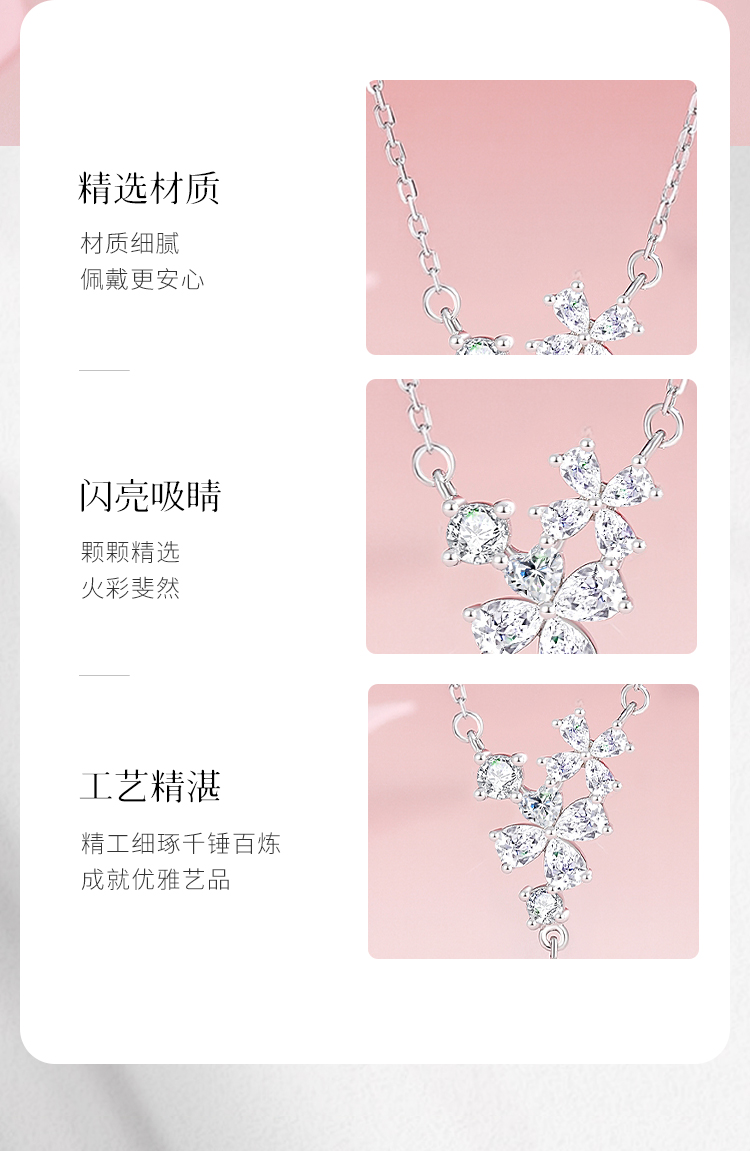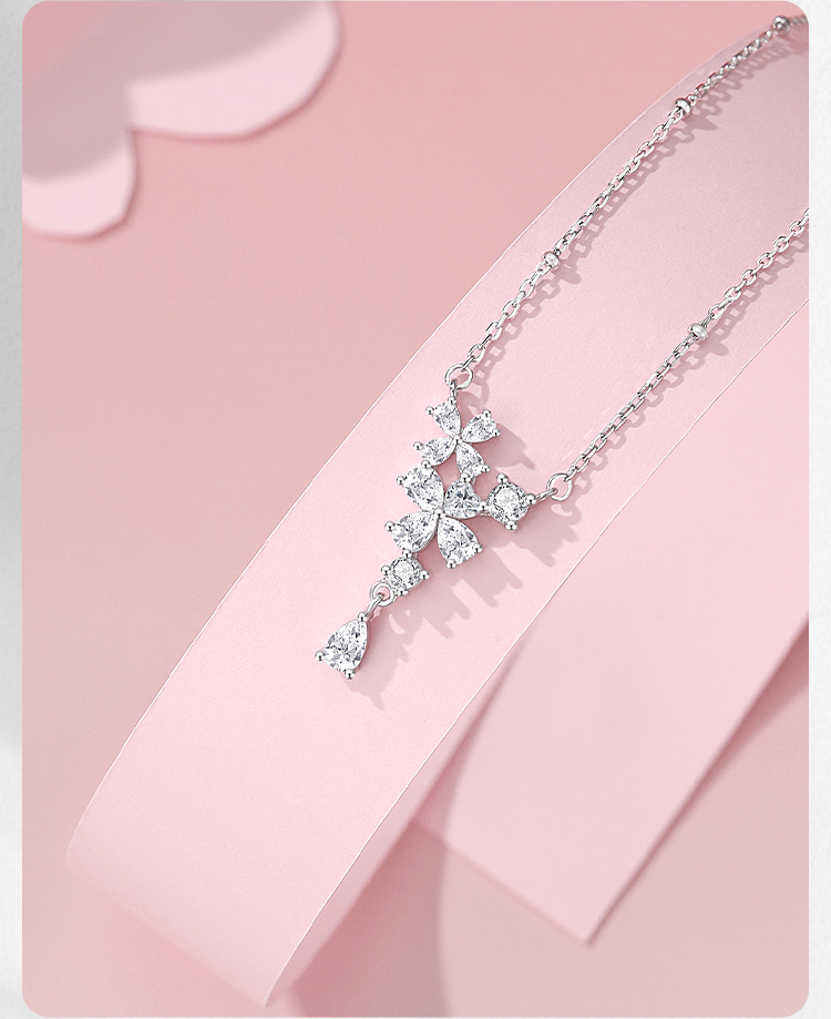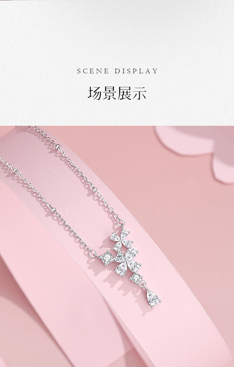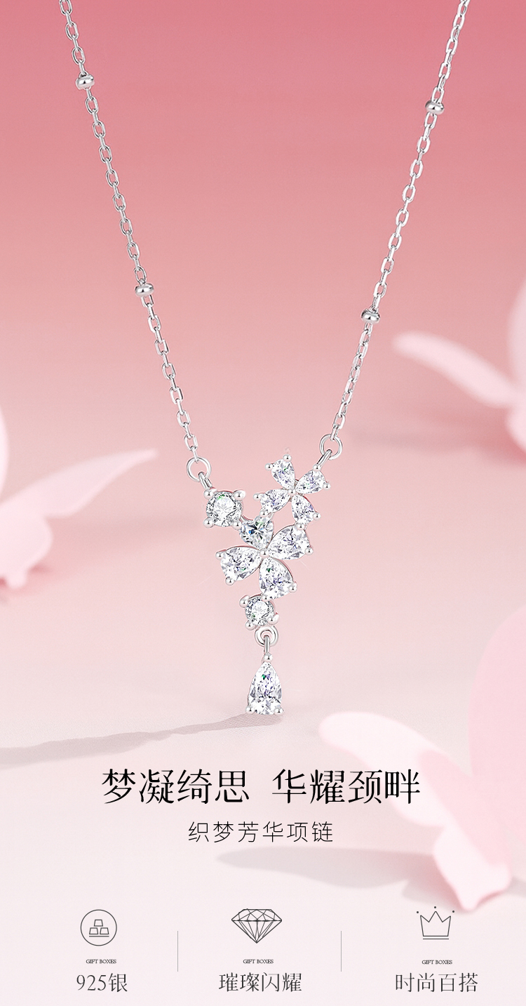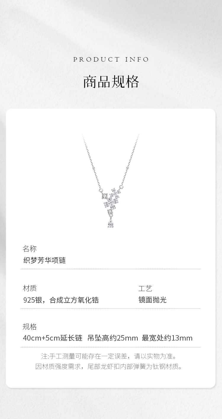 Winy S925 银织梦芳华项链女 银色合成立方氧化锆吊坠 轻奢灵动碎钻设计锁骨链