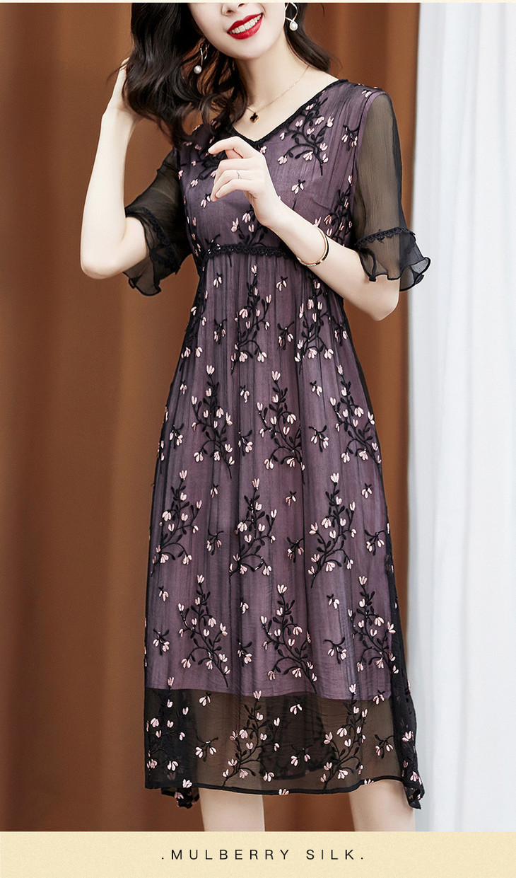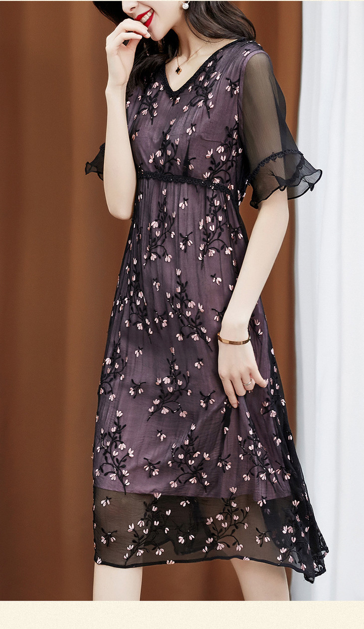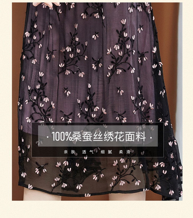 SM-8202370修身显瘦V领桑蚕丝绣花真丝连衣裙