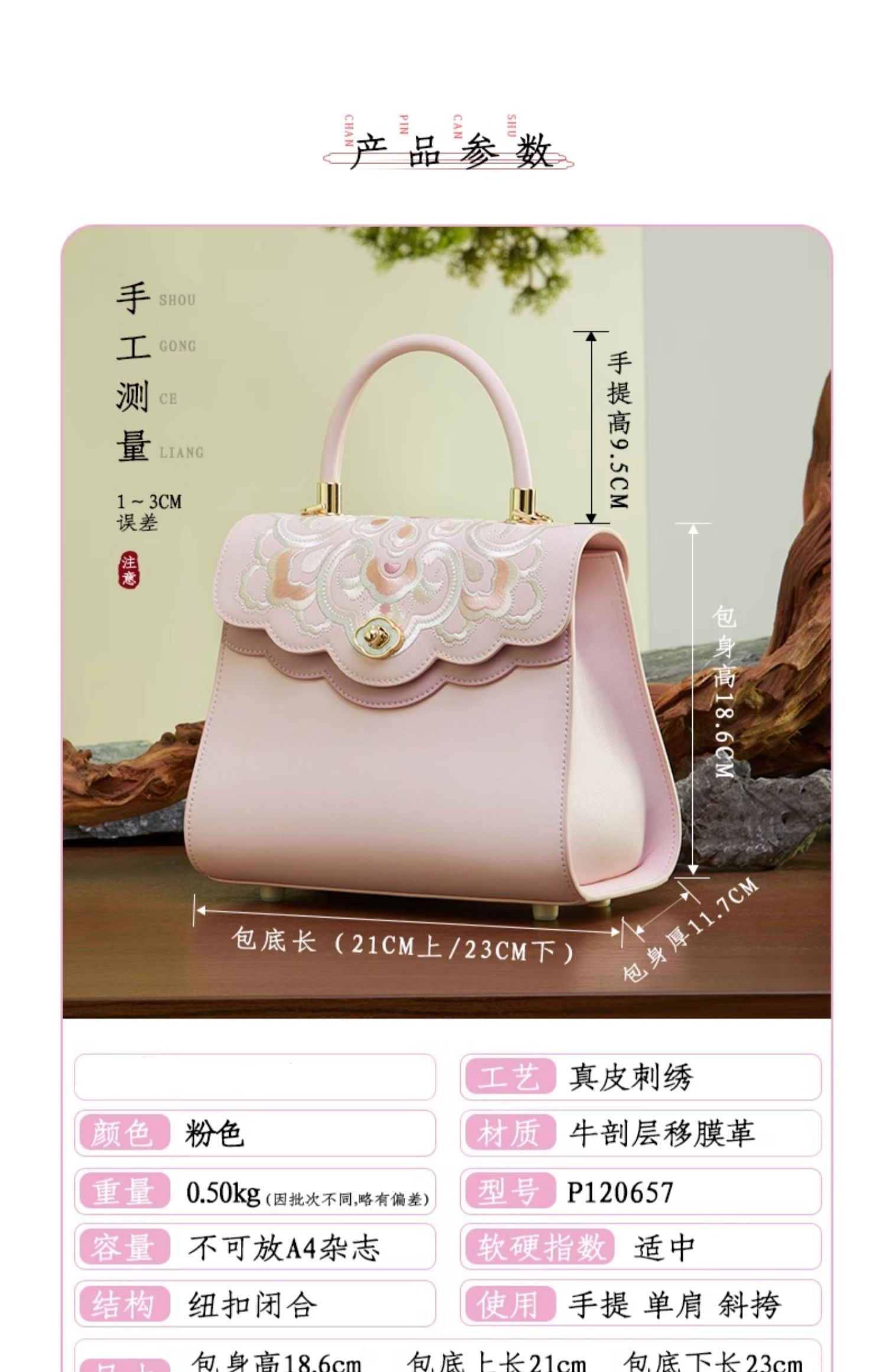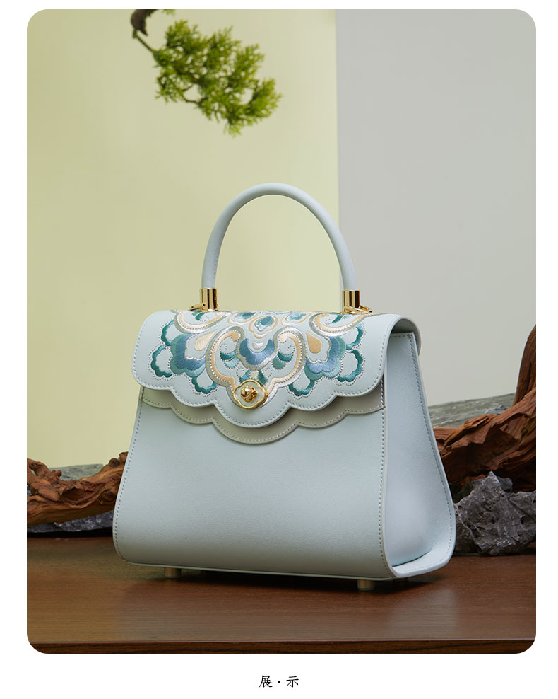 新中式国风真皮刺绣,纽扣优雅单肩斜挎手提牛皮包包TX-P120657