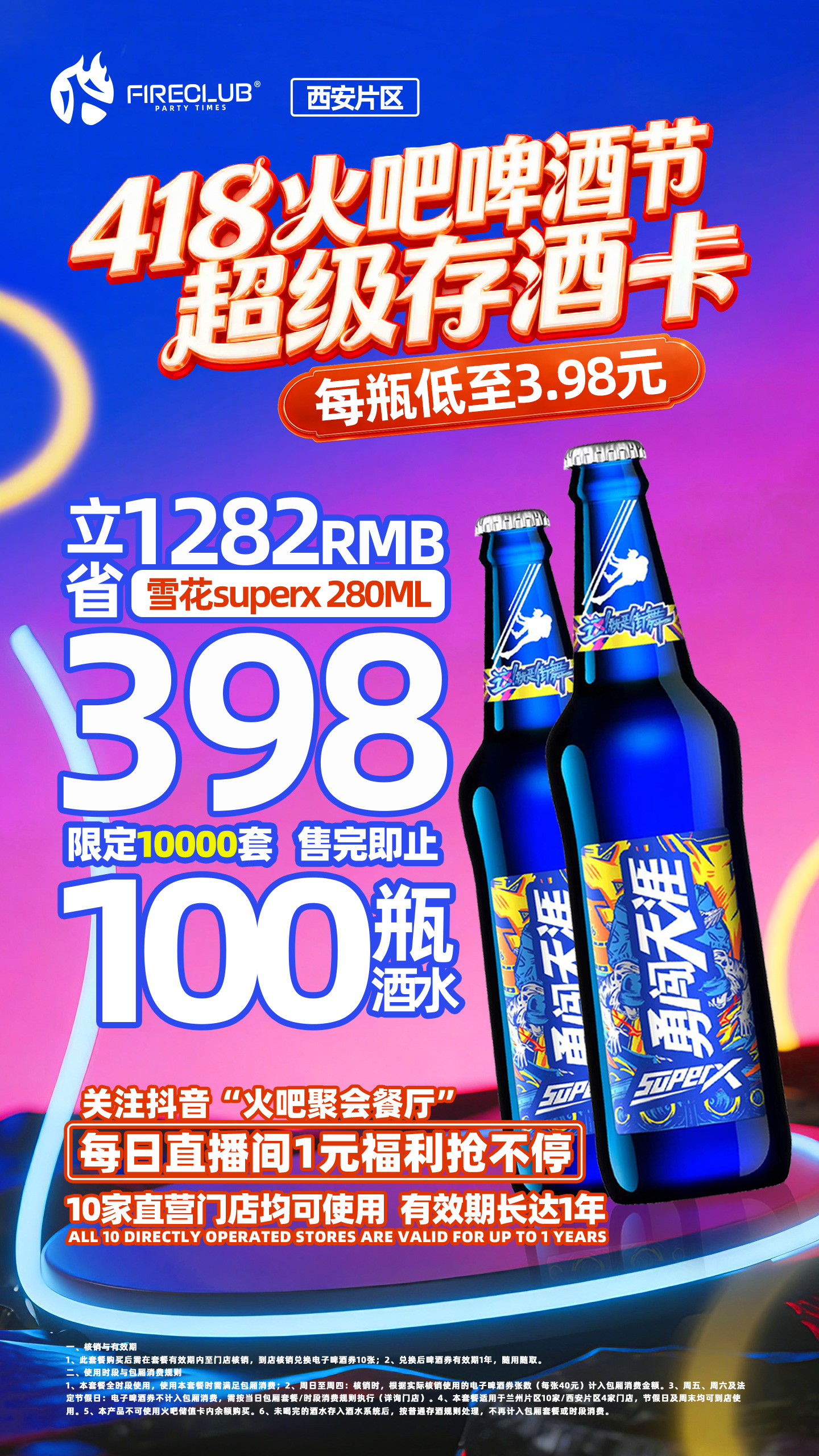 3、周五、周六及法定节假日:电子啤酒券不计入包厢消费,需按当日包厢套餐/时段消费规则执行(详询门店)。