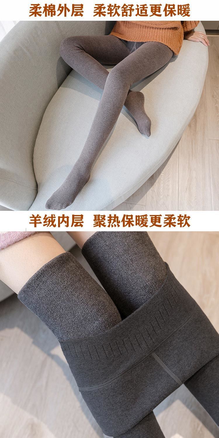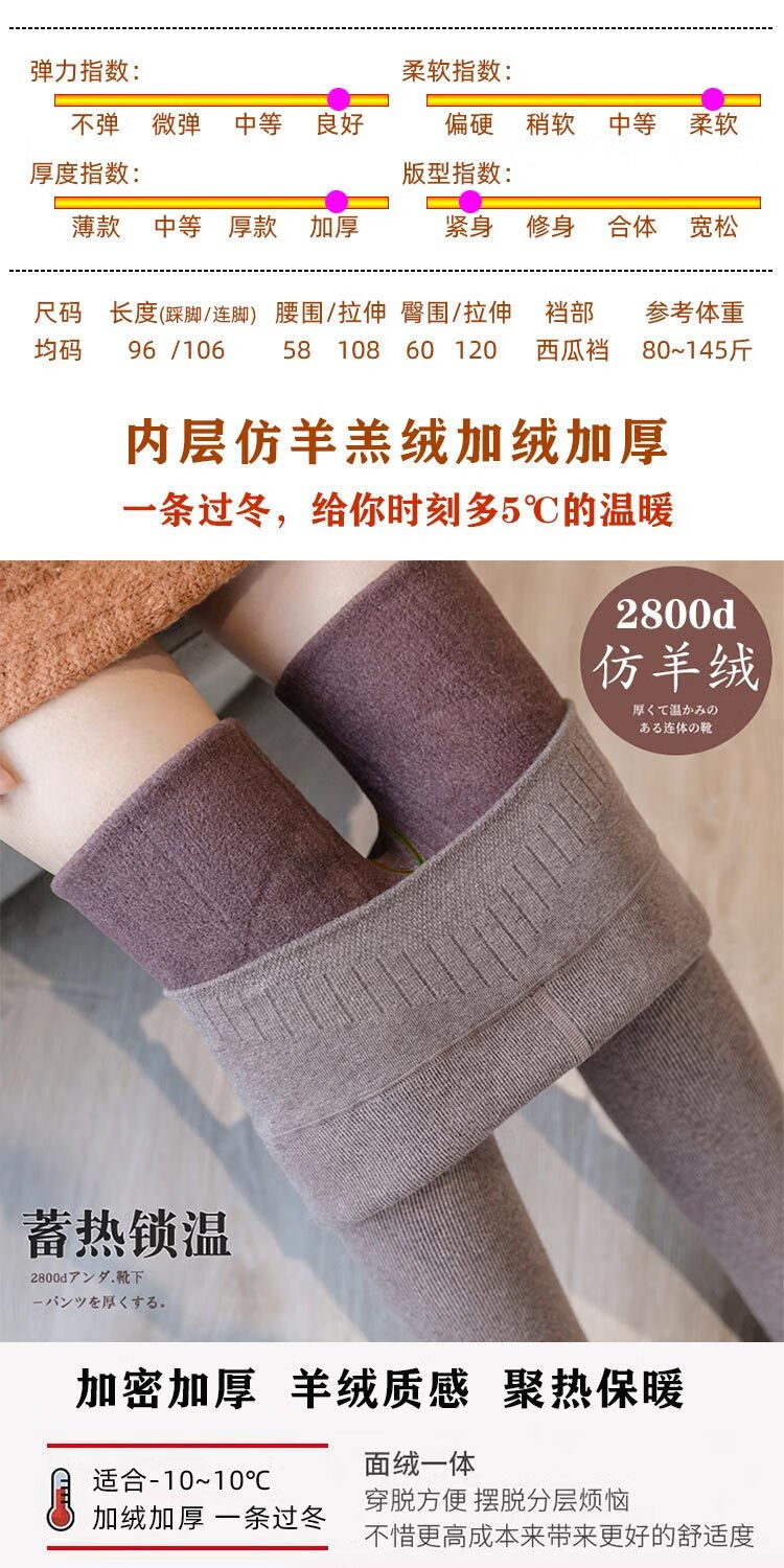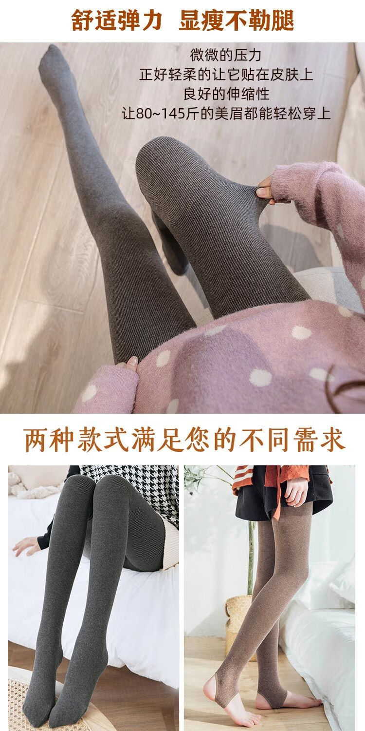 雀说羊绒竖纹打底裤保暖显瘦一体裤黑色踩脚连裤袜AL
