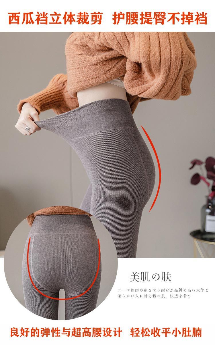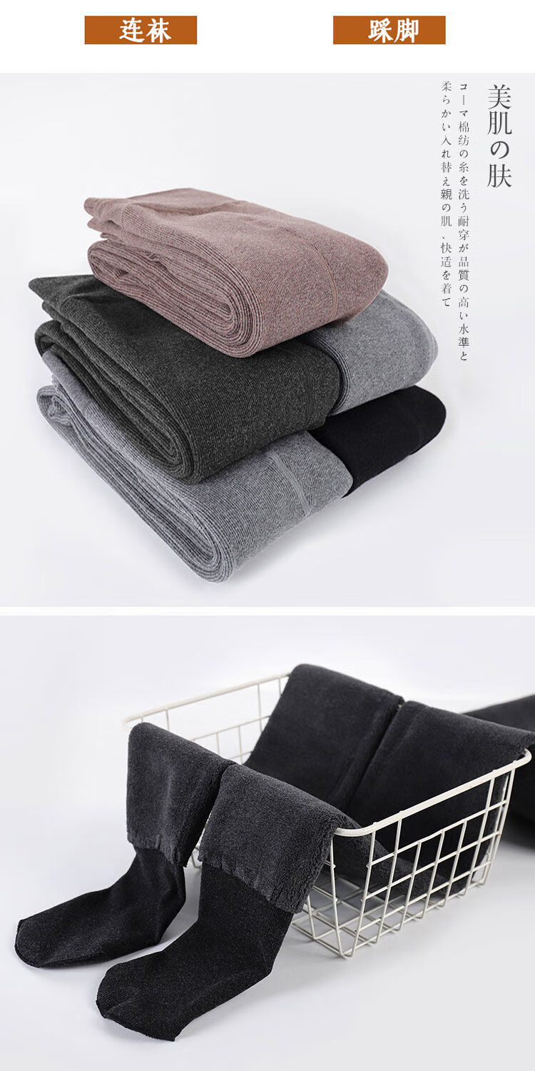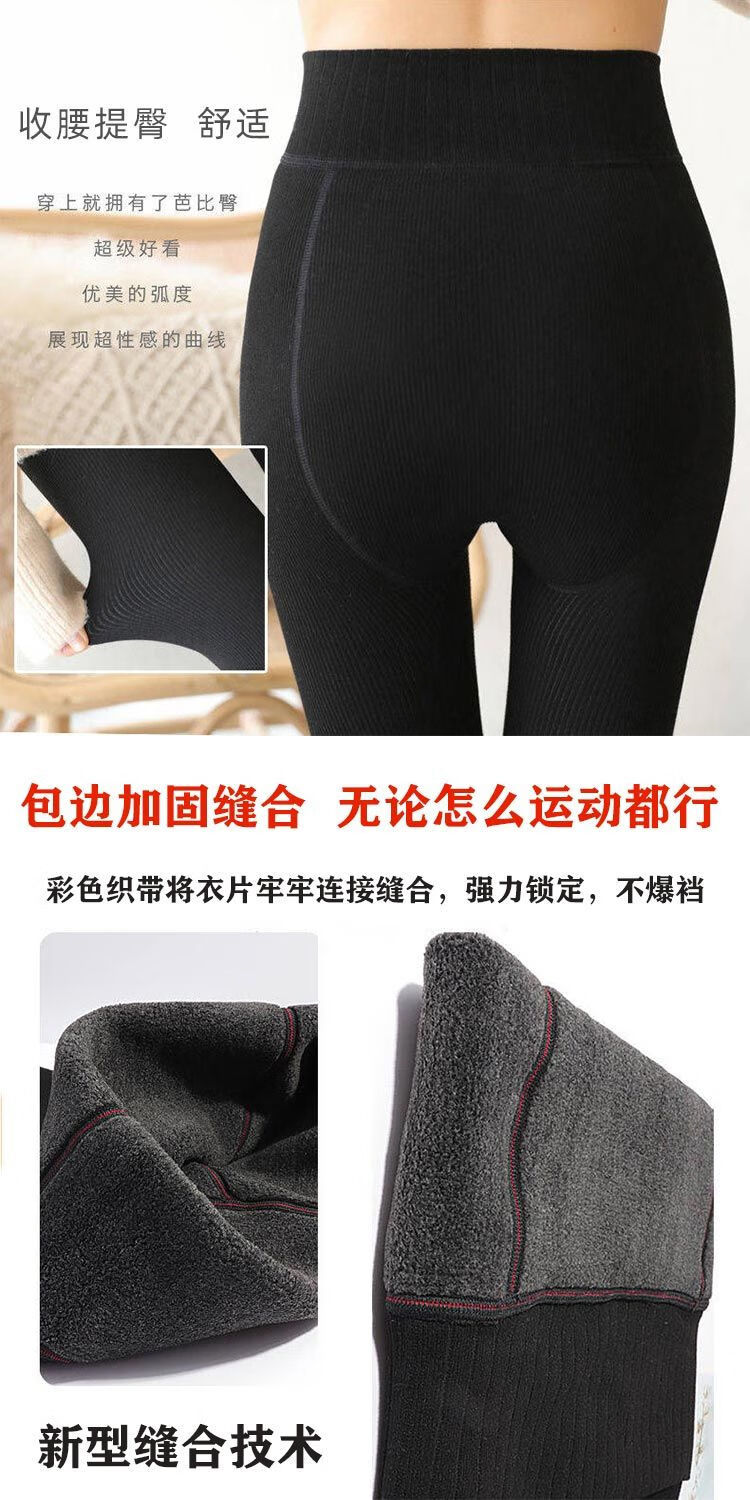 雀说羊绒竖纹打底裤保暖显瘦一体裤黑色踩脚连裤袜AL