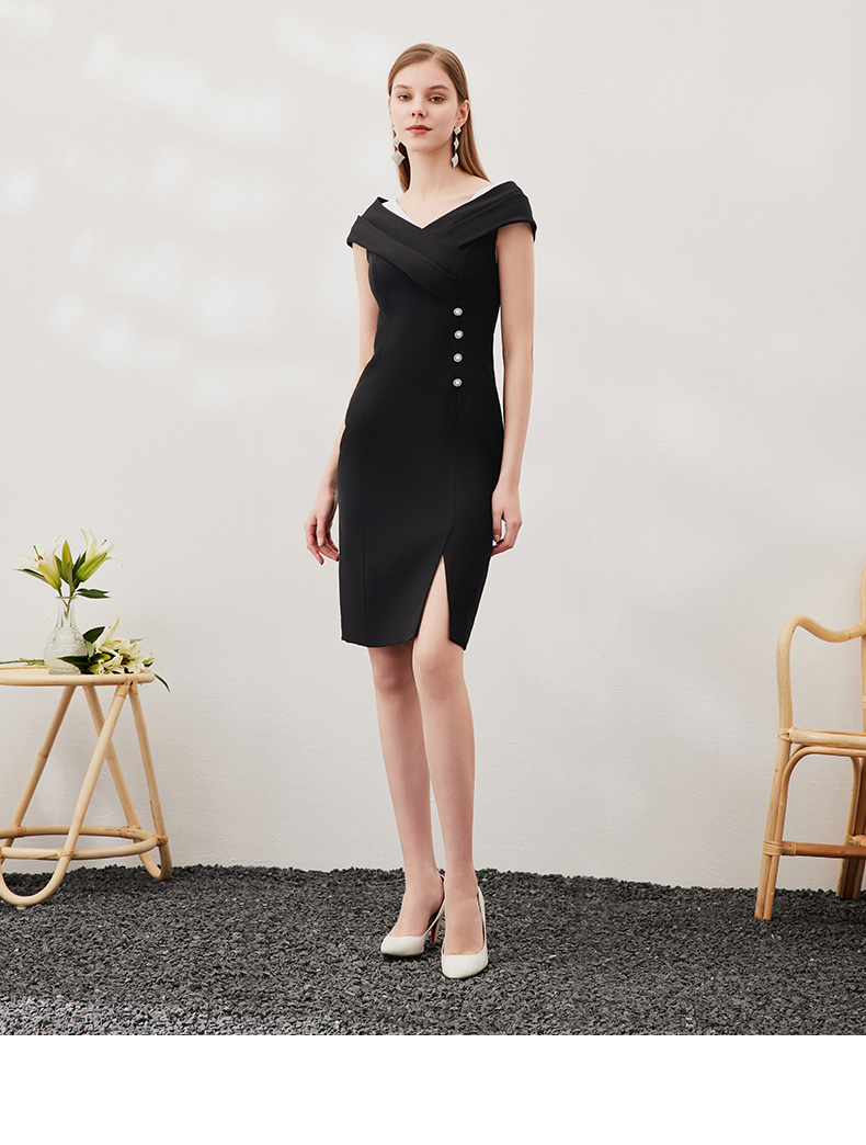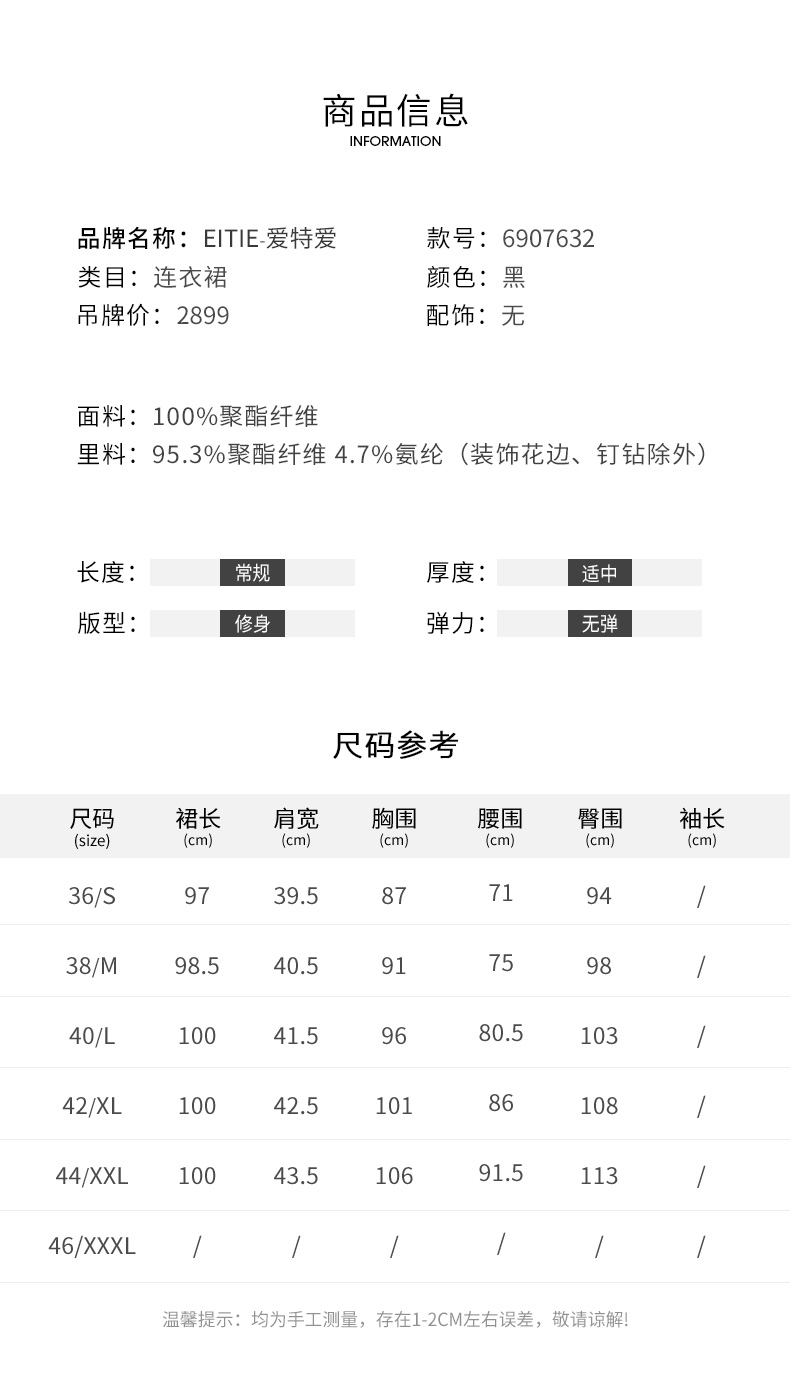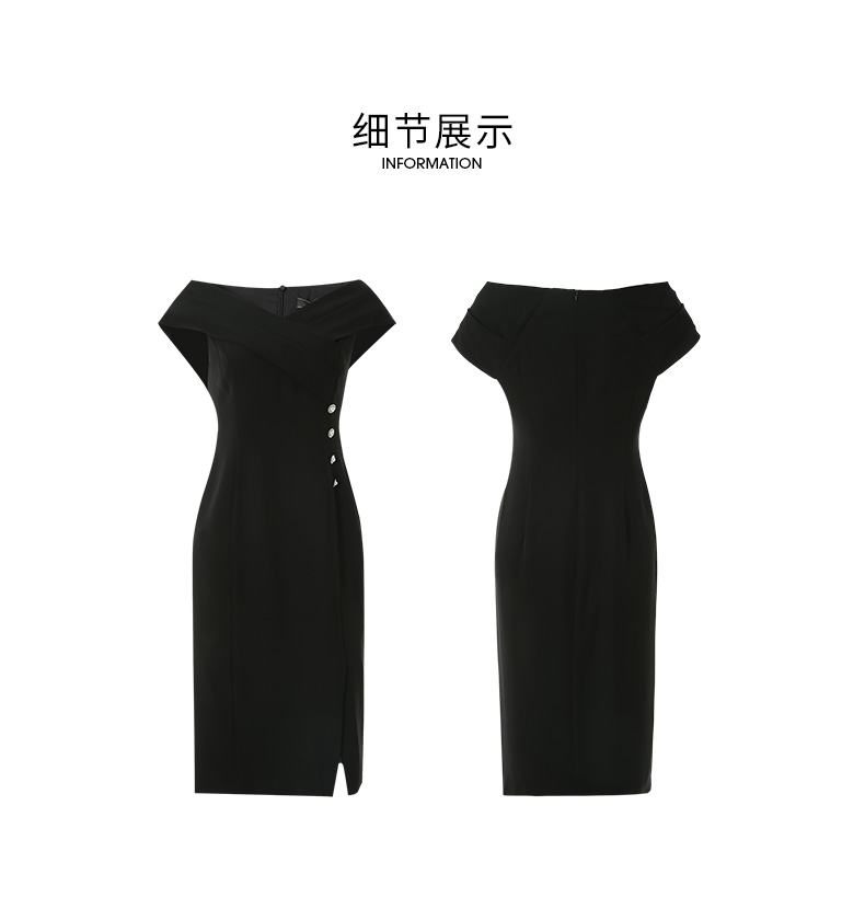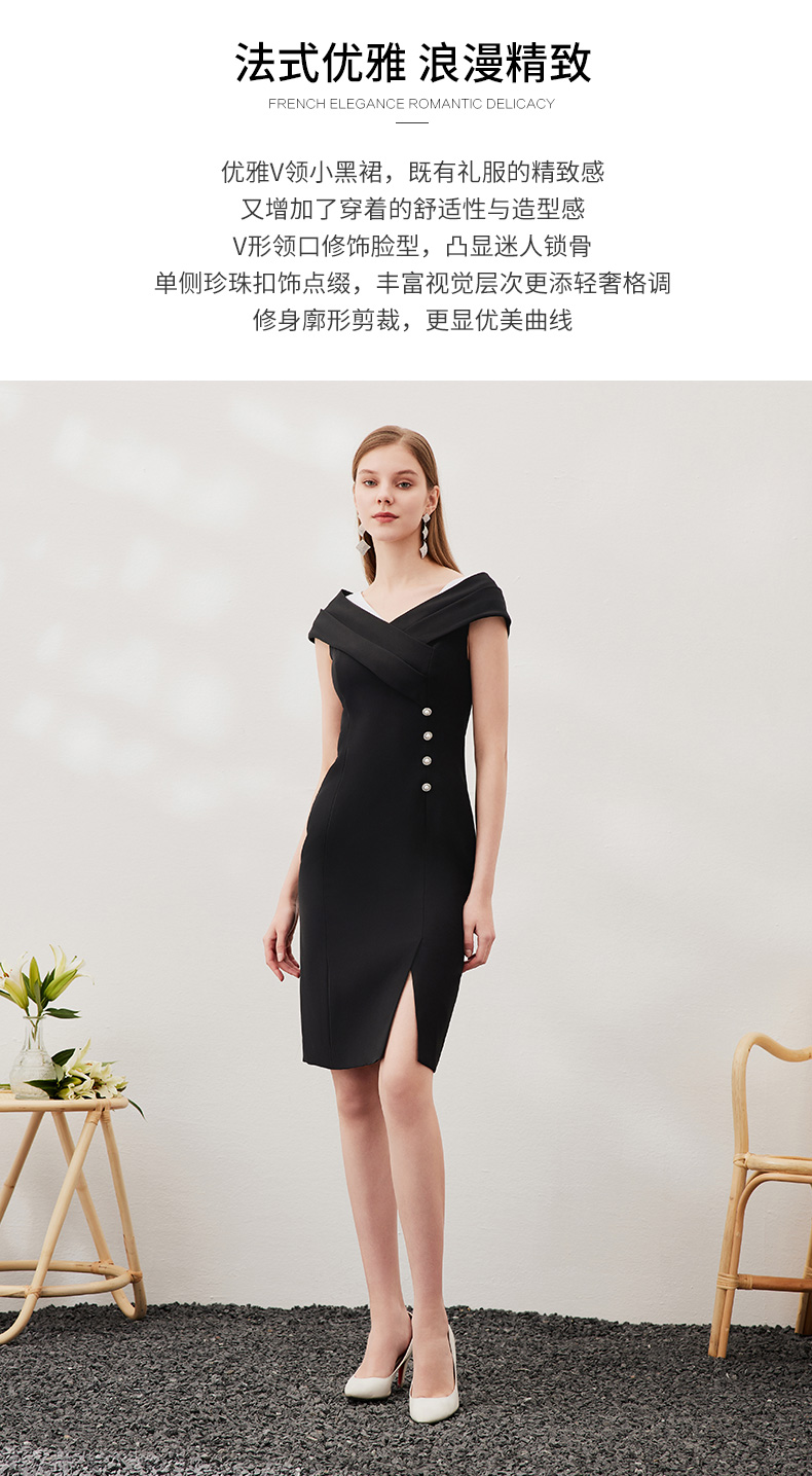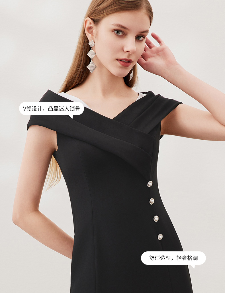 EITIE爱特爱春季新款优雅显瘦裙摆开叉连衣裙6907632