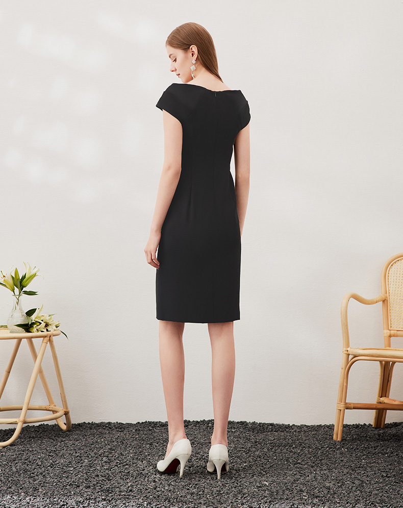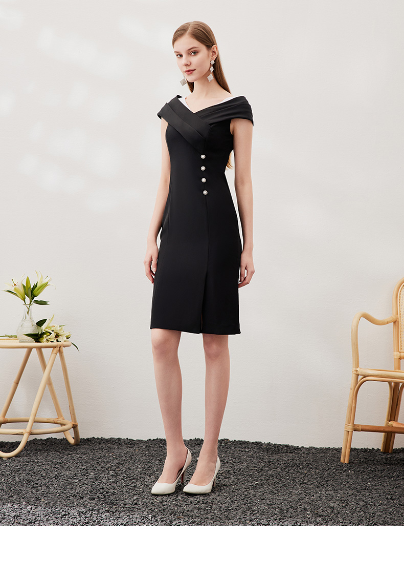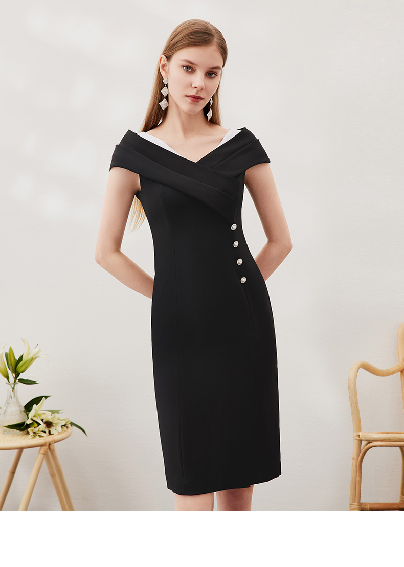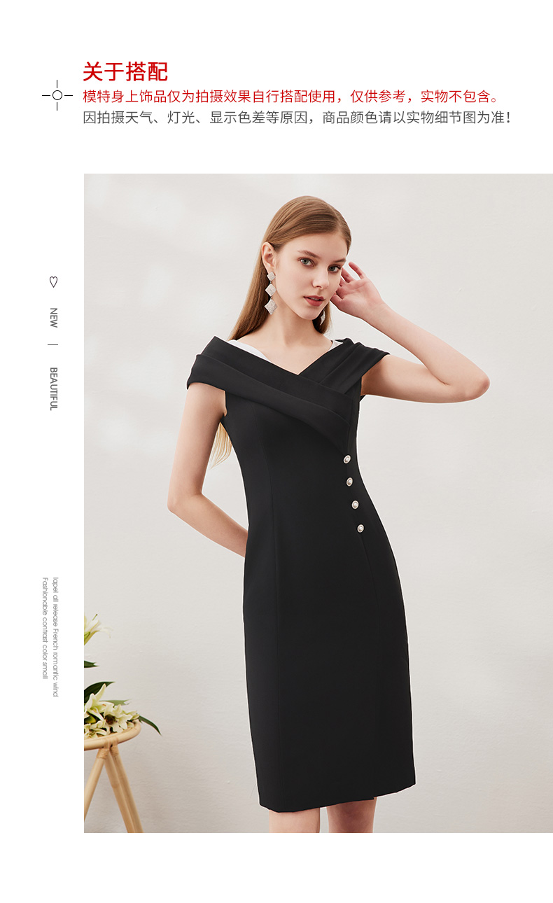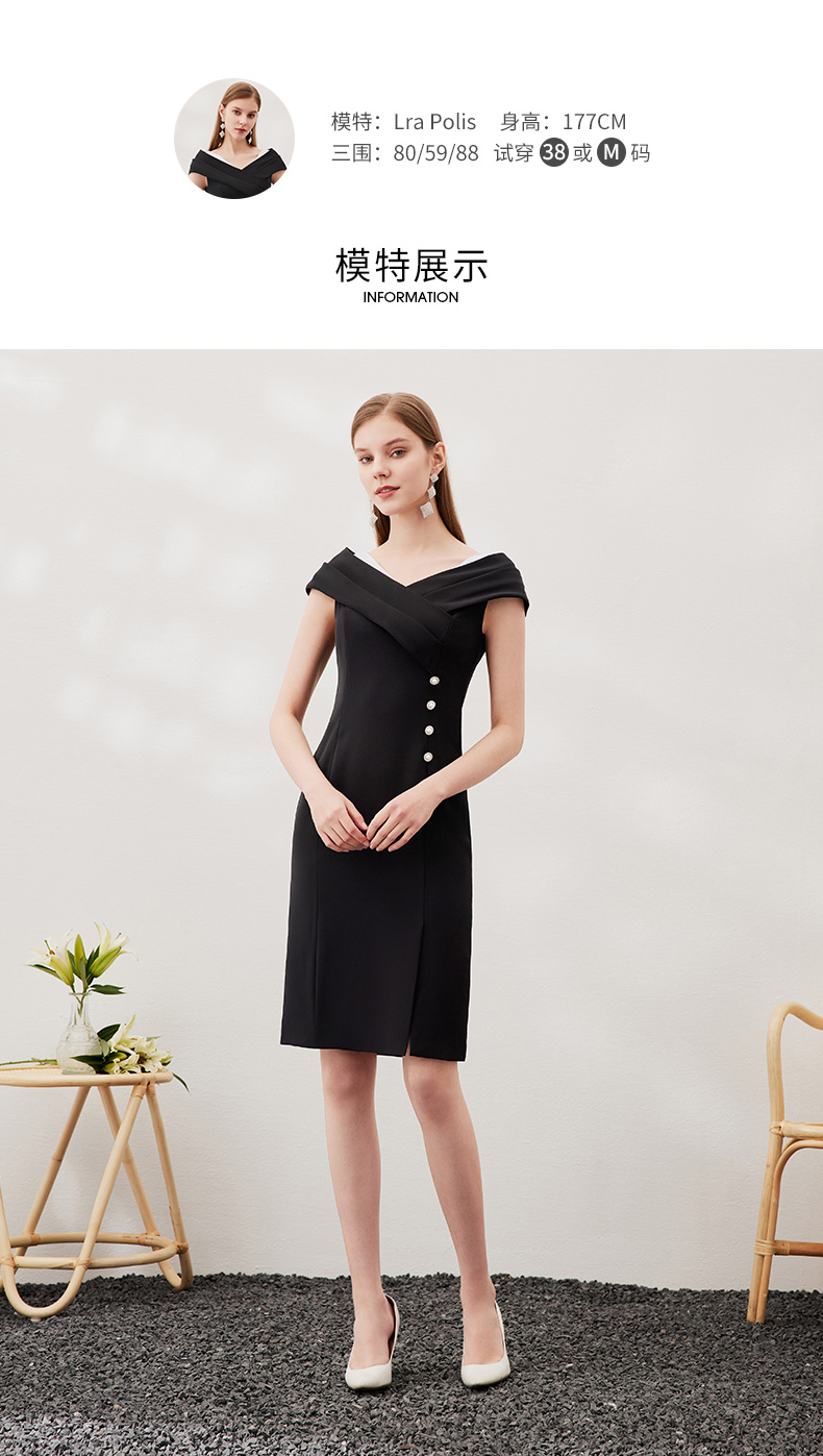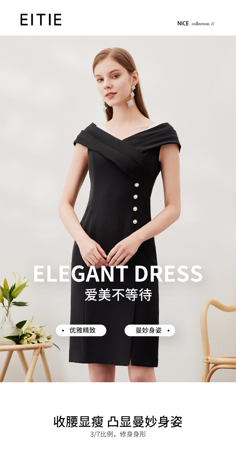 EITIE爱特爱新款女装连衣裙时尚OL漏肩通勤女士中裙3907690