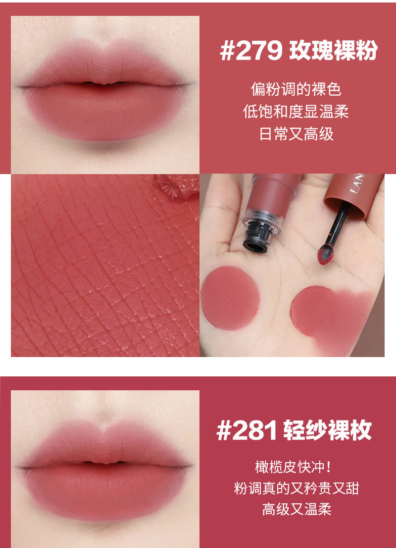 【特价清仓】Lancome/兰蔻菁纯柔雾哑光唇釉3ml #188 #279 #291 #281#196#275#312#313