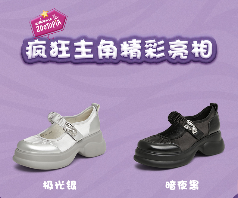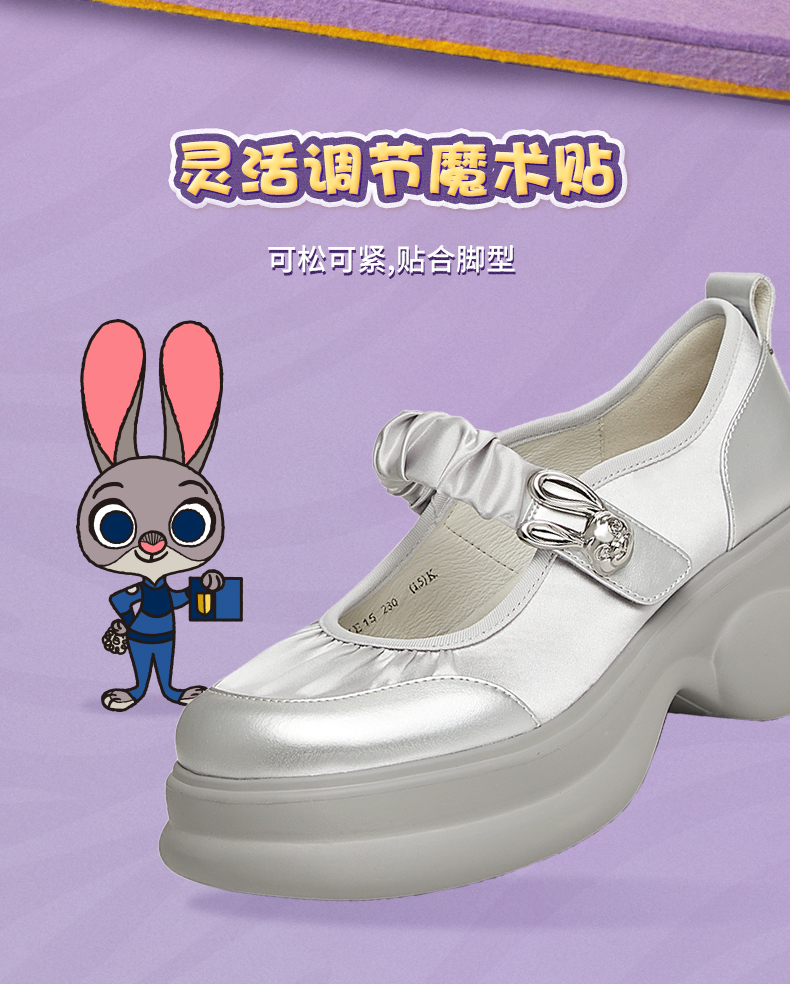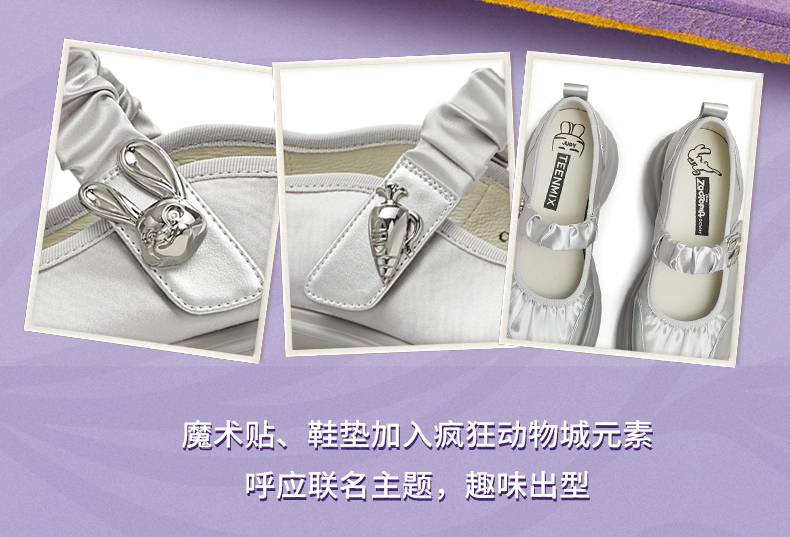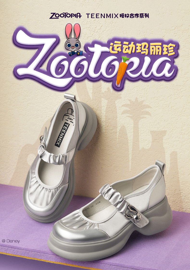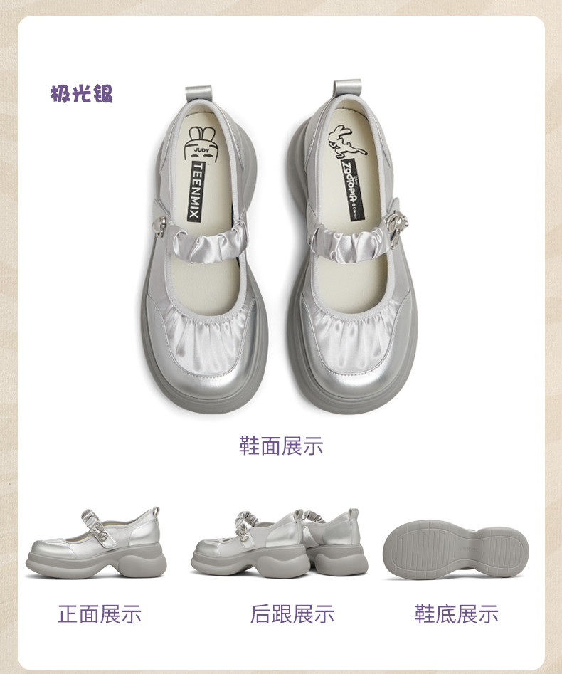 TEENMIX天美意 疯狂动物城联名 厚底银色玛丽珍皮鞋女浅口单鞋子2025春新款