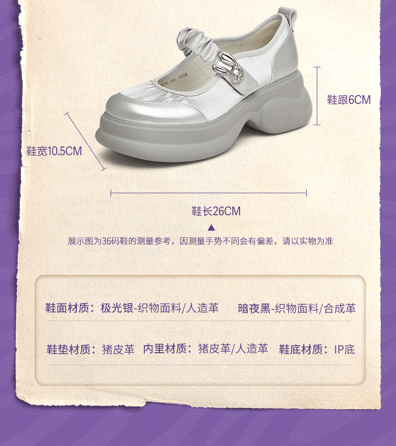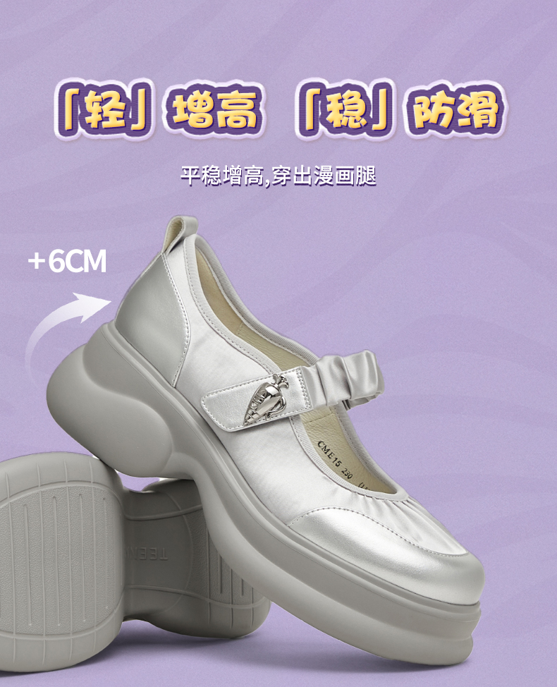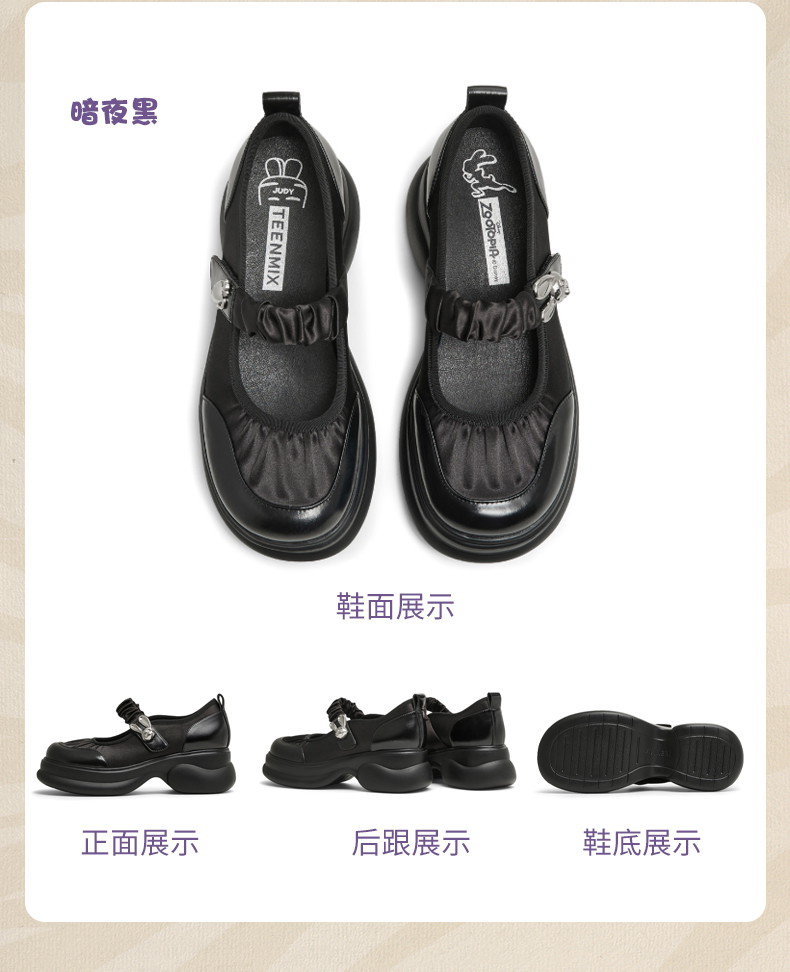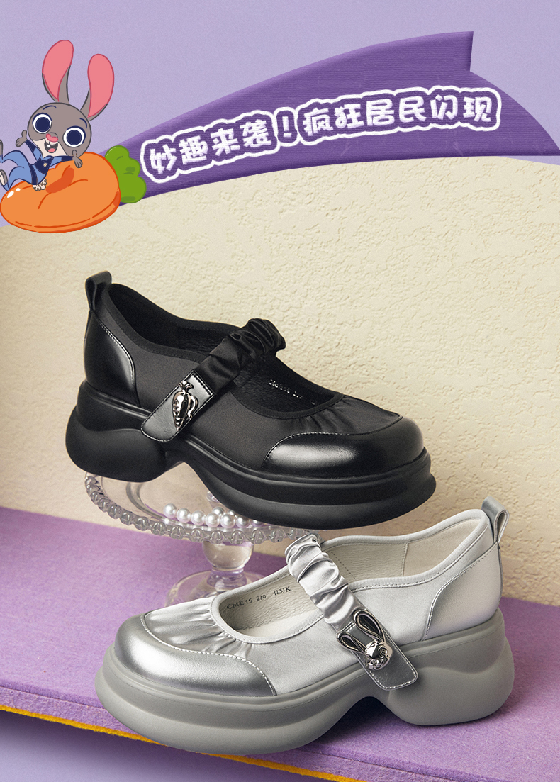 TEENMIX天美意 疯狂动物城联名 厚底银色玛丽珍皮鞋女浅口单鞋子2025春新款