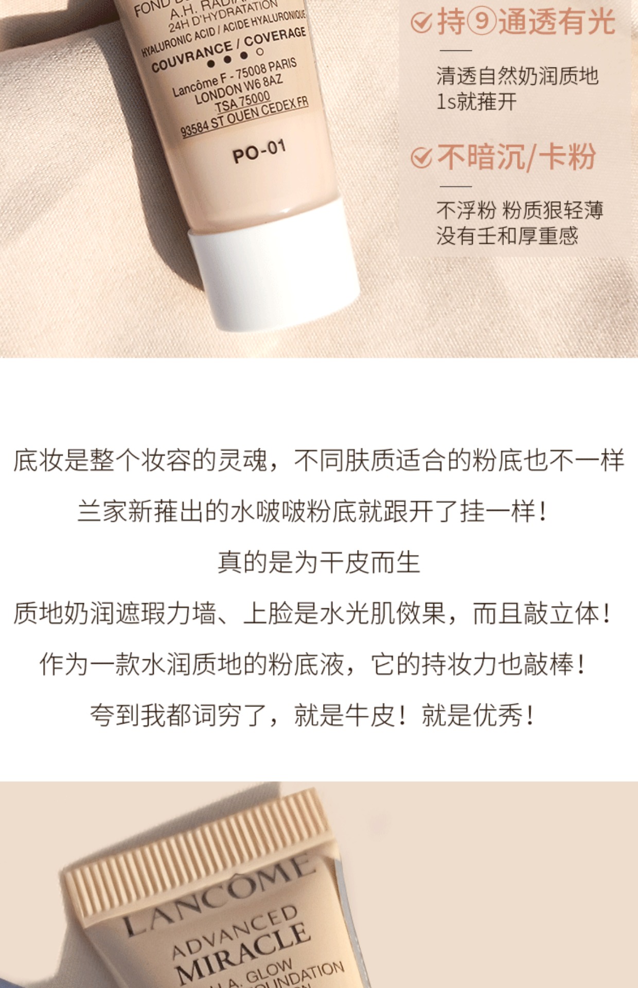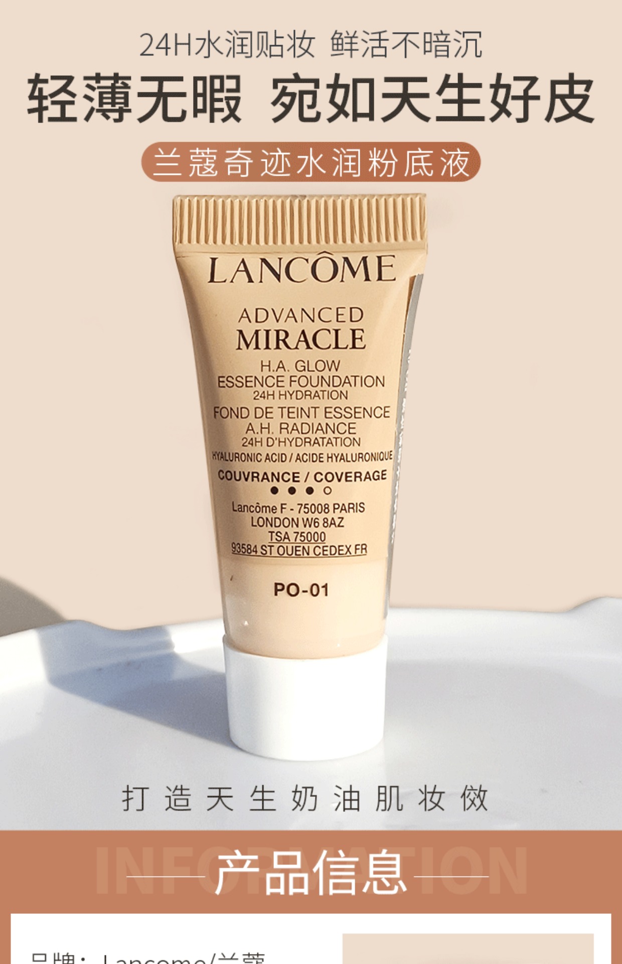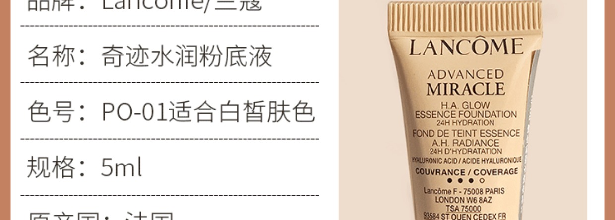 兰蔻奇迹水润水啵啵粉底液PO-01 小样5ml