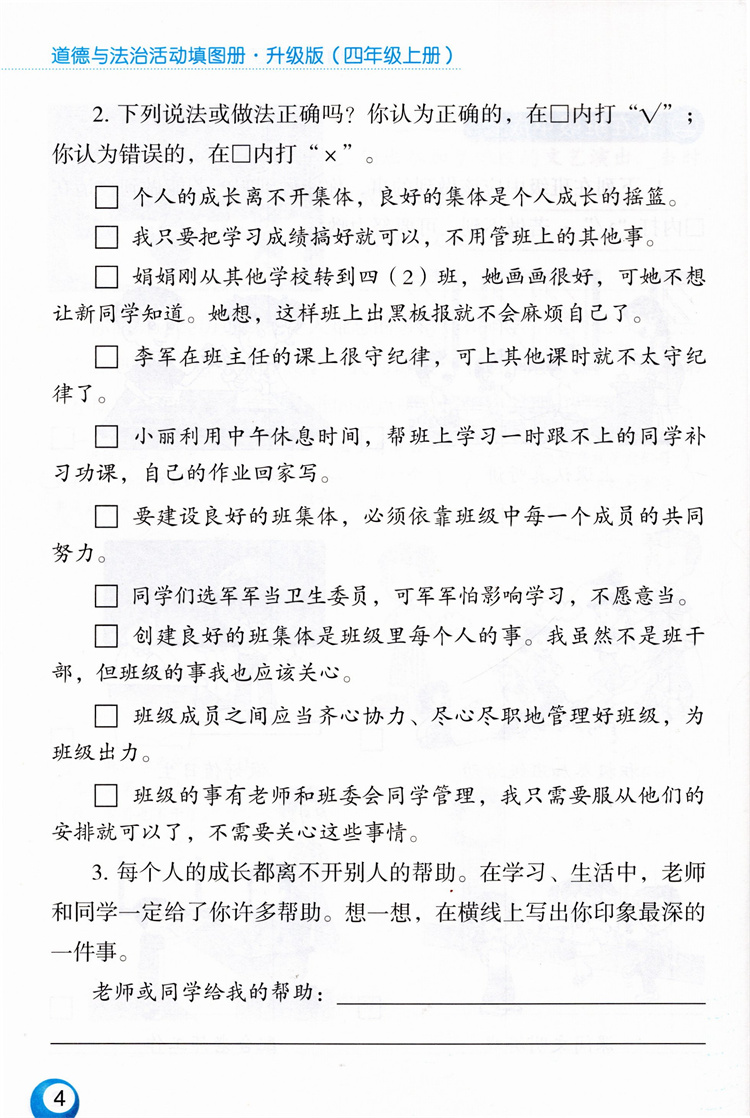 2025秋 道德与法治 活动填图册 人教版 4上 学生用书 小学教辅 四年级上册 升级版 江苏凤凰教育出版社