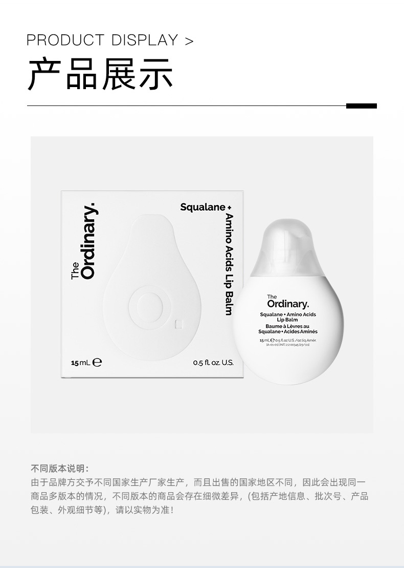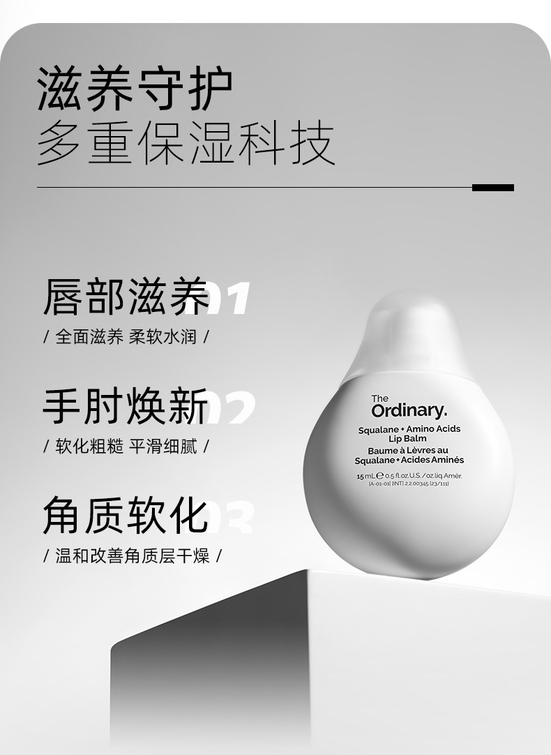【品牌直发】The Ordinary 角鲨烷+氨基酸护唇膏15ml 水润滋养润唇膏