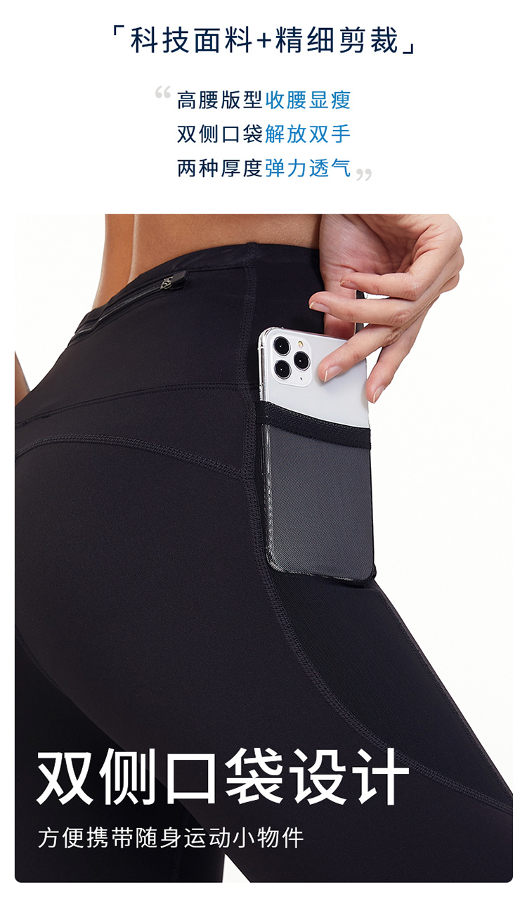 科里芙两种厚度女子跑步瑜伽高腰收腹运动紧身裤外穿显瘦(双侧可装手机压缩裤)