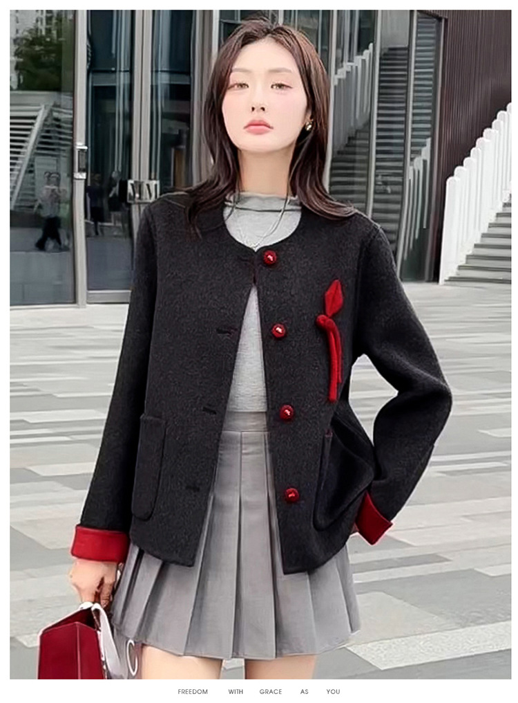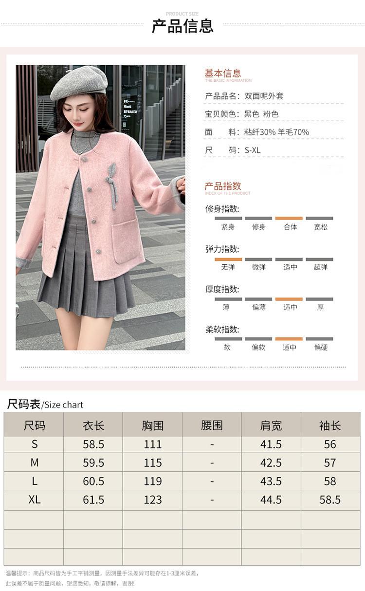 QYM 5958-Y双面毛呢外套时尚单排扣休闲上衣