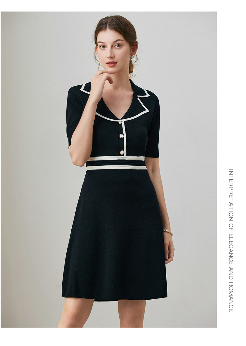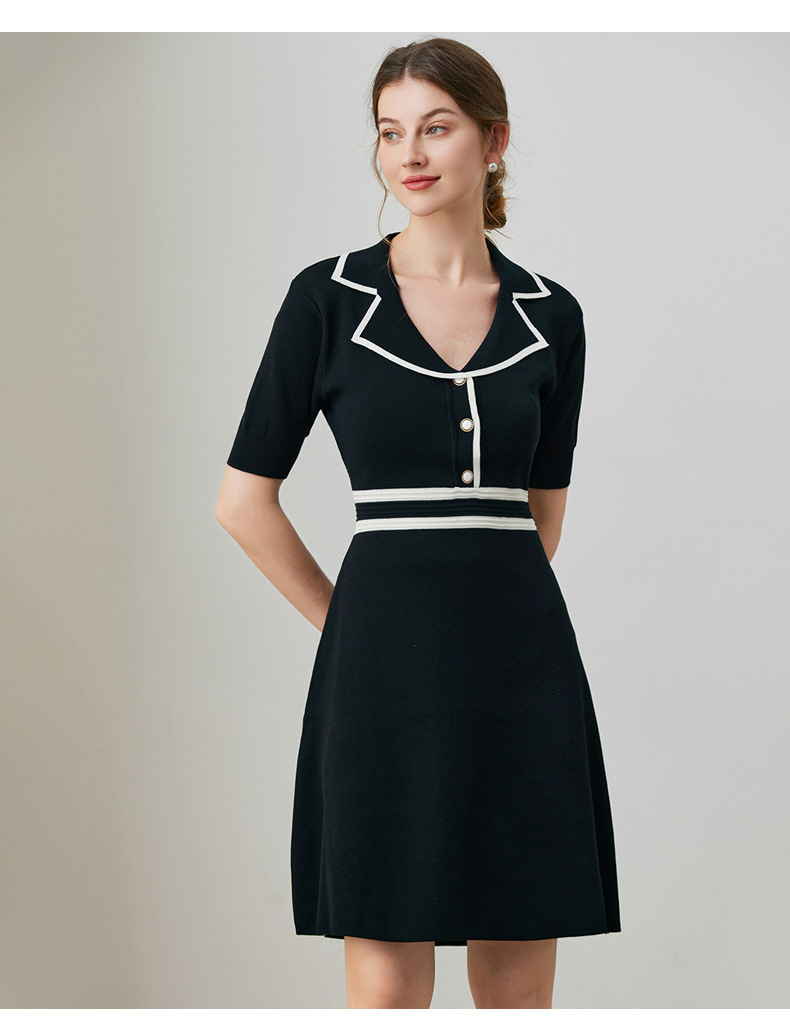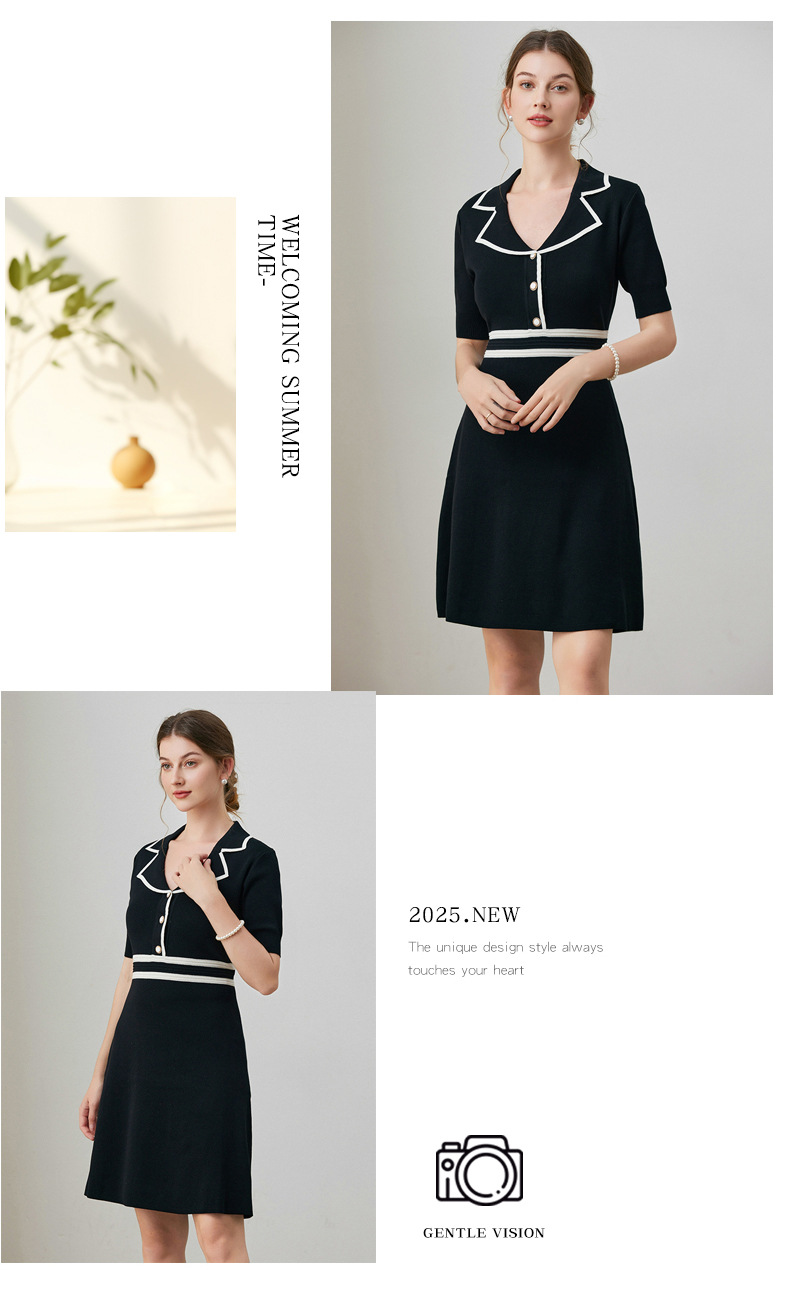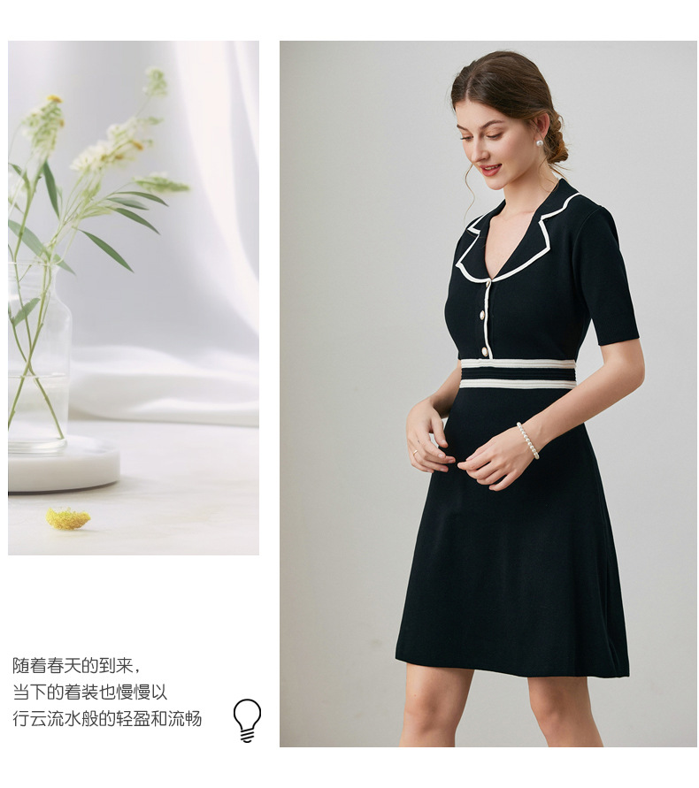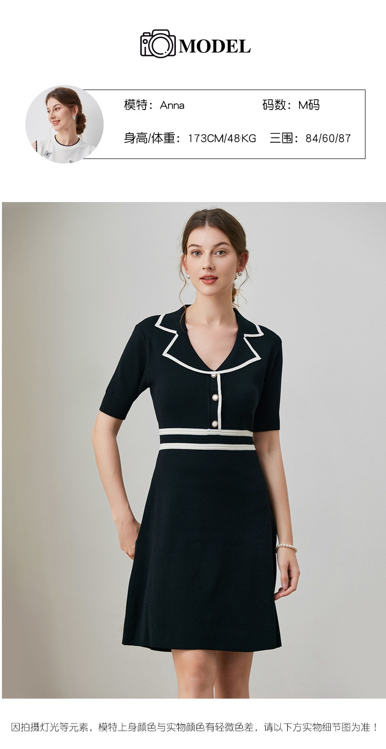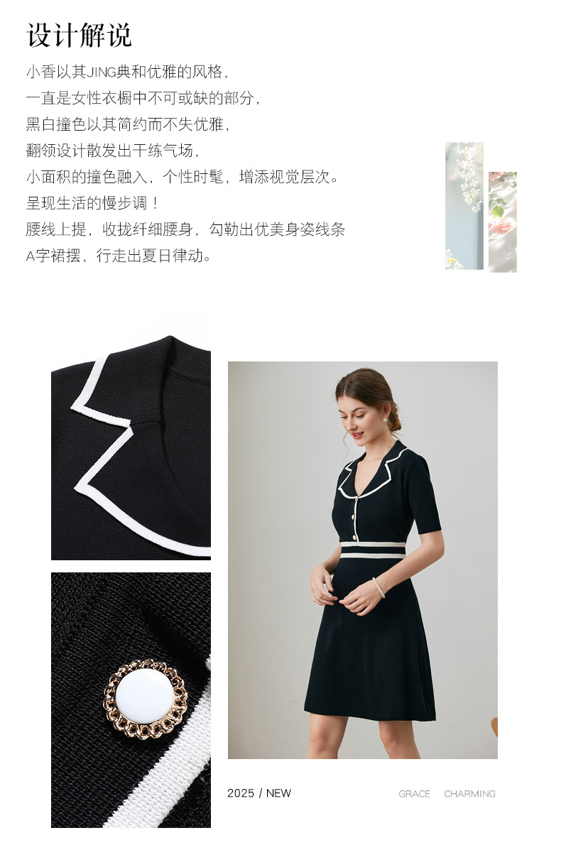 「自」全新升级【铂金会员220/天猫299/差价79】(93721)洛诗琳法式V领中袖针织连衣裙2025夏季新款小香风显瘦A字裙