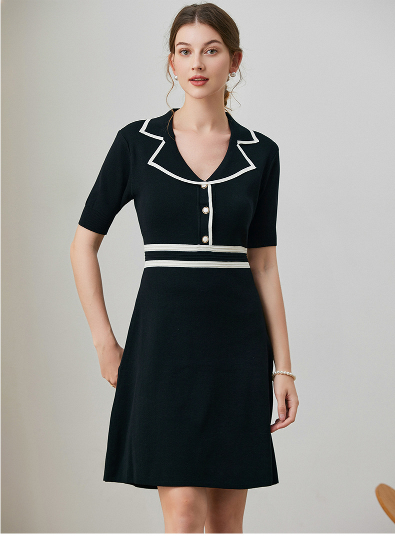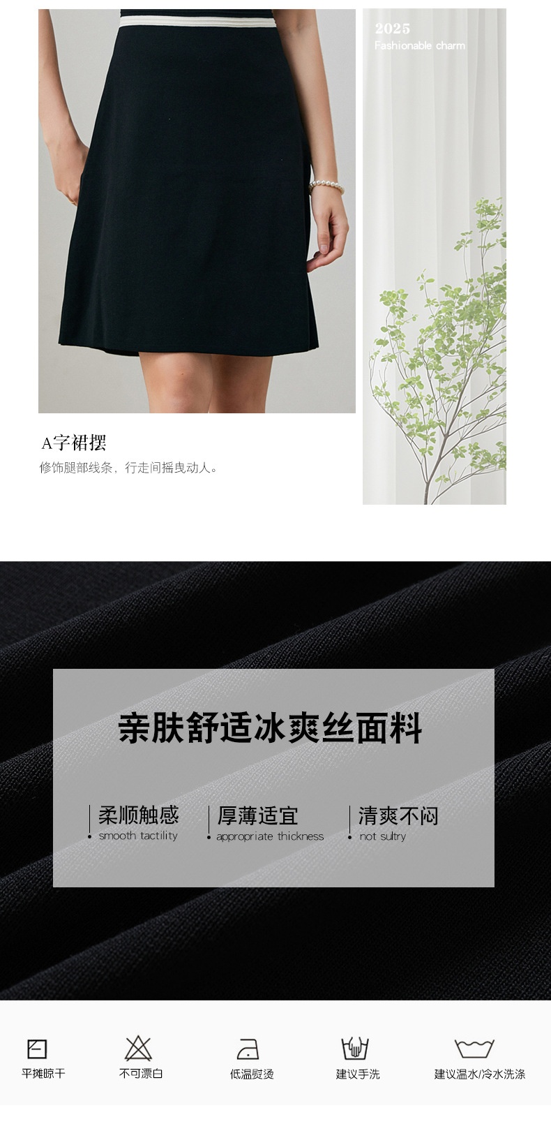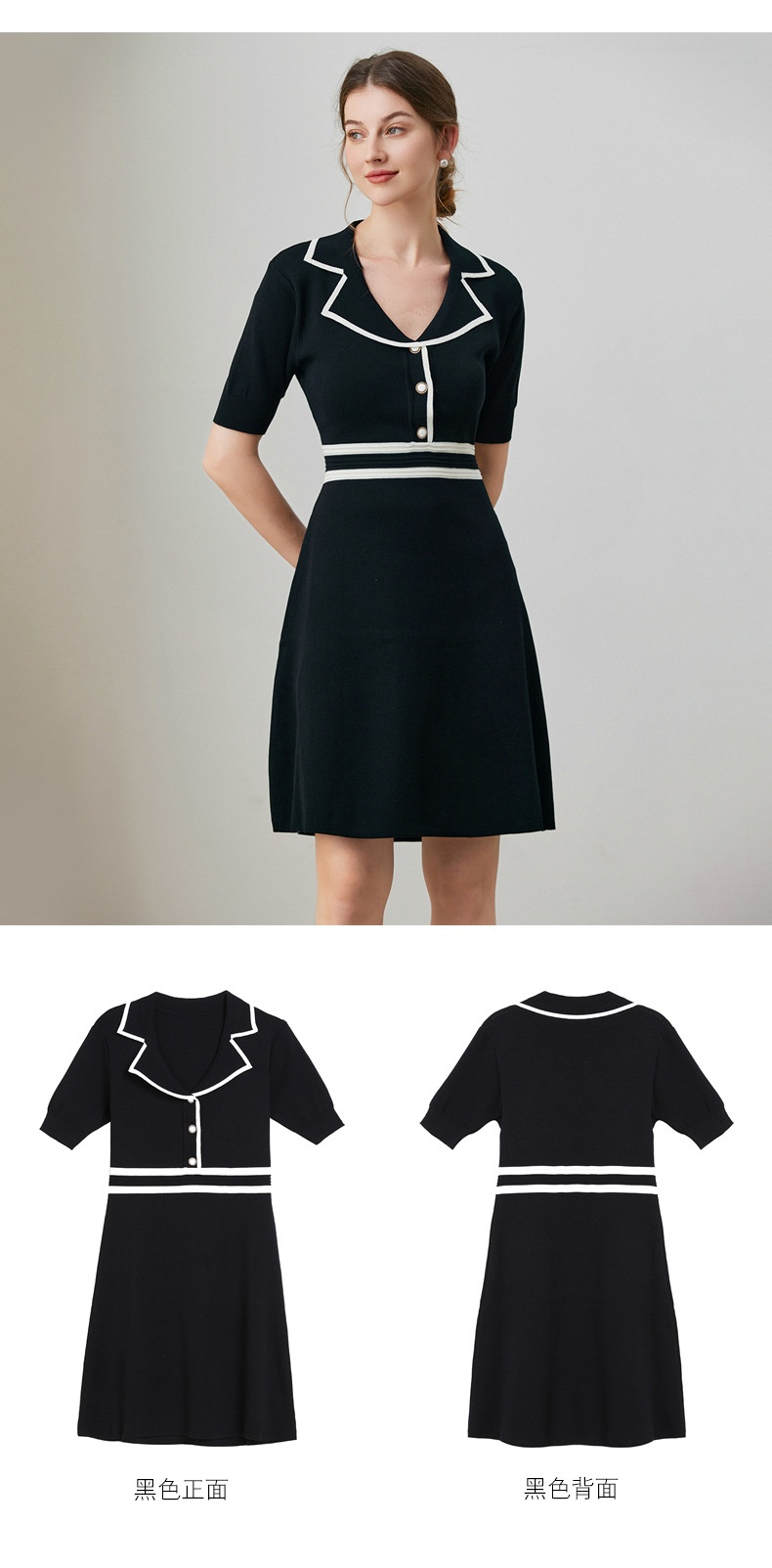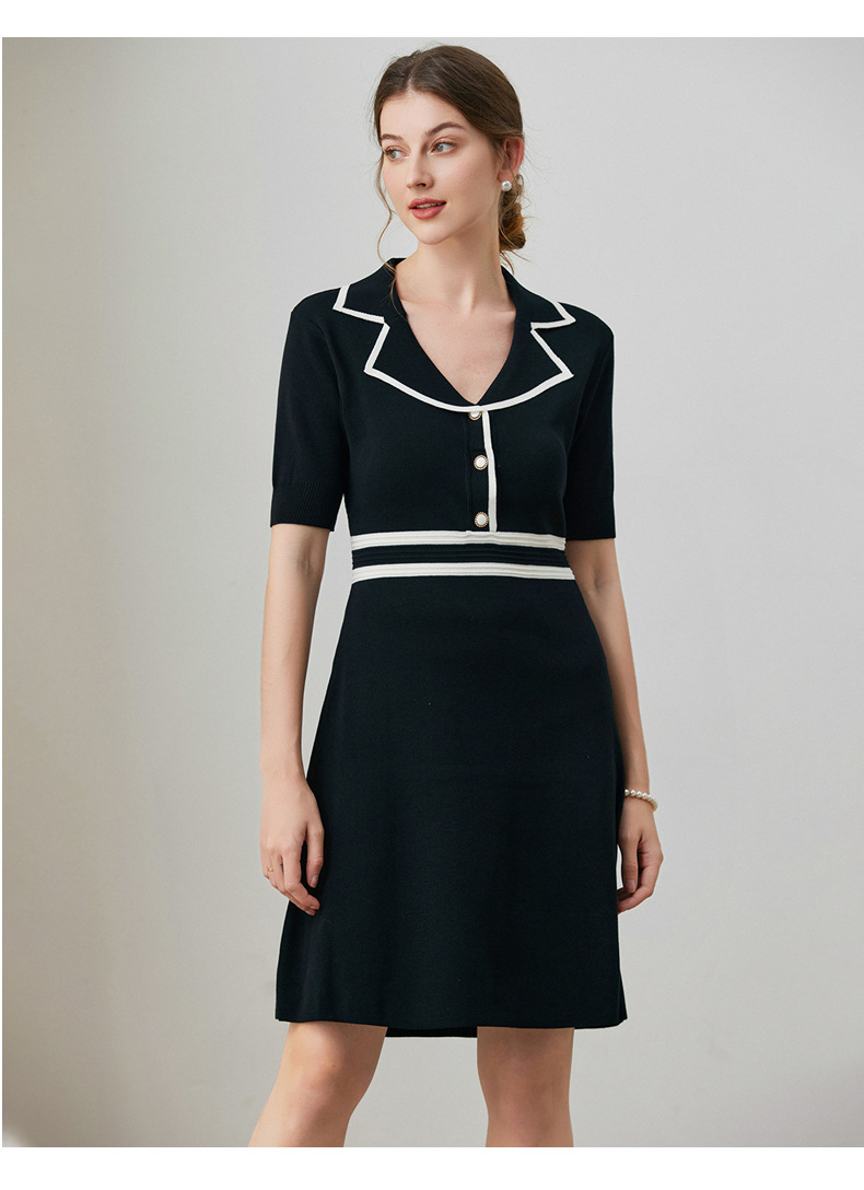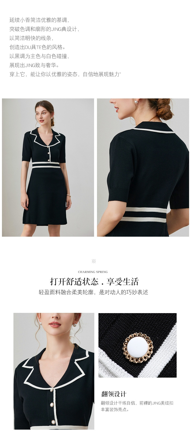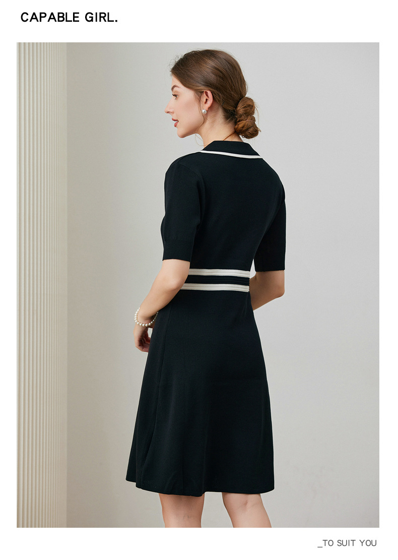 「自」全新升级【铂金会员220/天猫299/差价79】(93721)洛诗琳法式V领中袖针织连衣裙2025夏季新款小香风显瘦A字裙