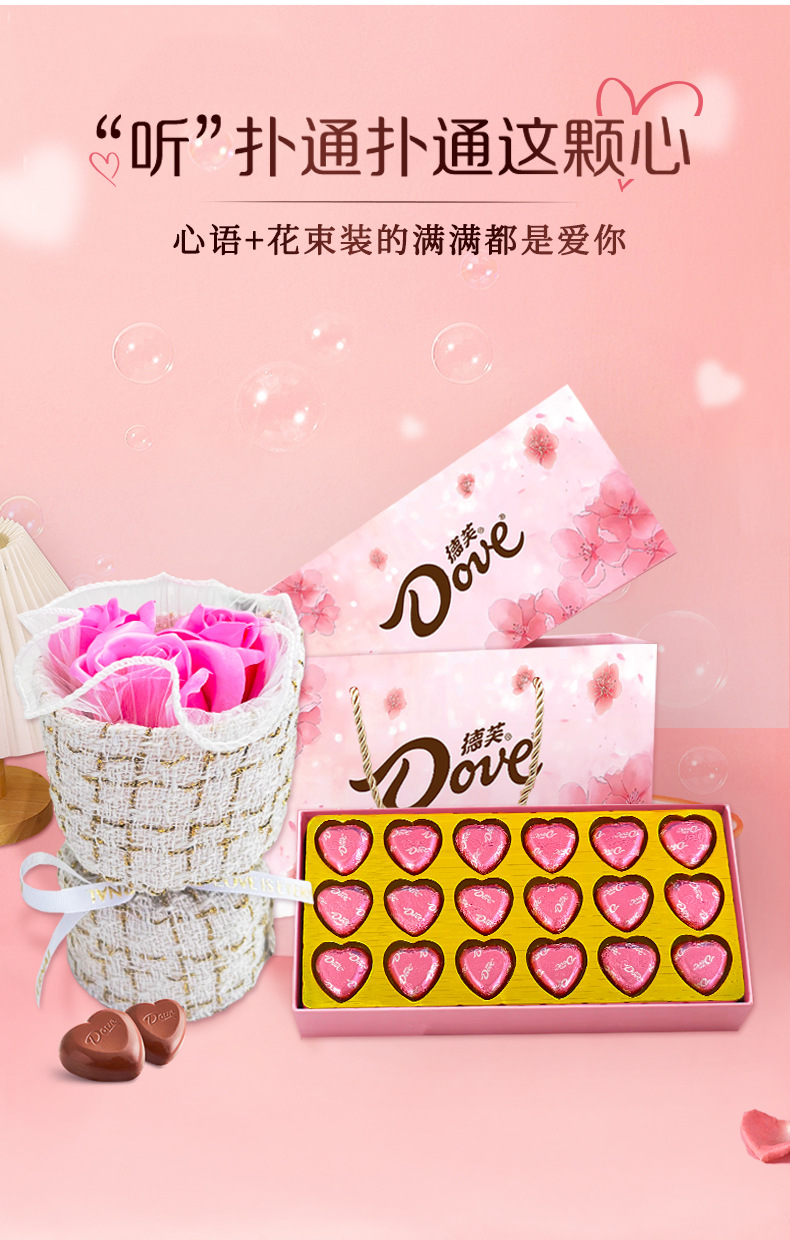 【情人节专属❗️仪式感满满】德芙心语牛奶巧克力礼盒生日新年礼物含花束女友老婆零食年货。jc