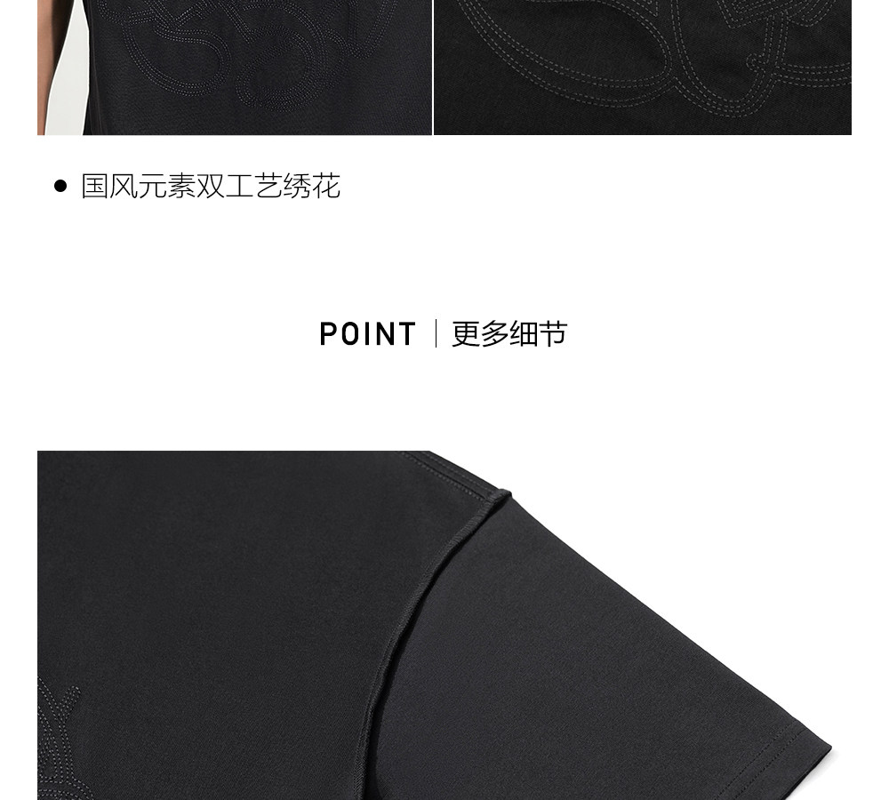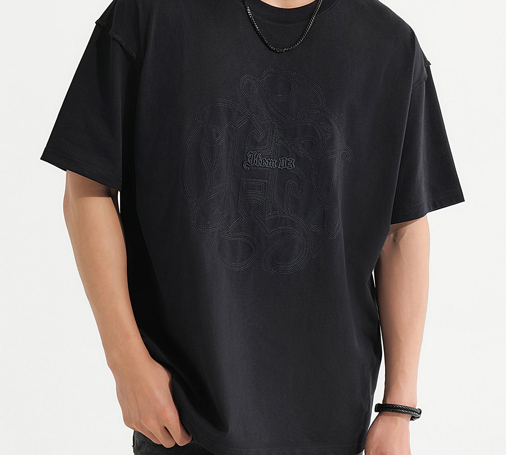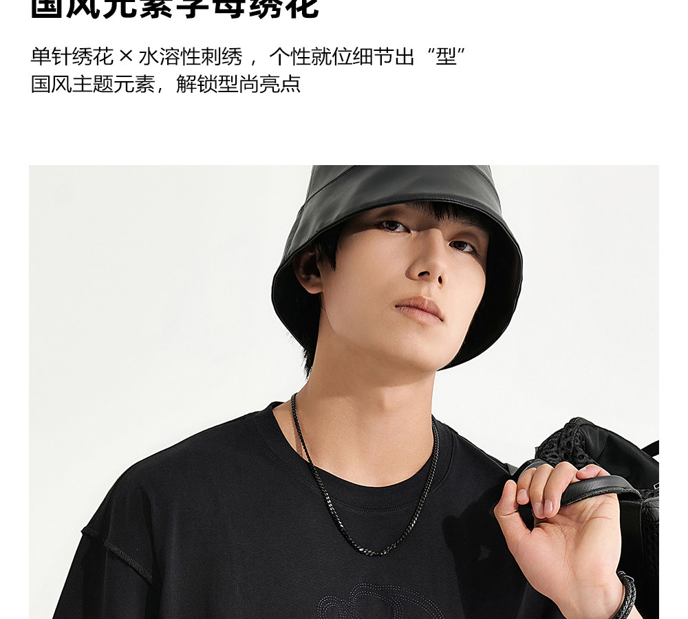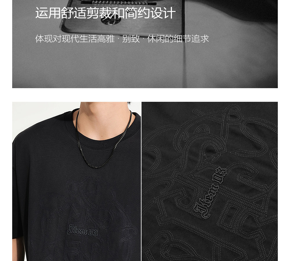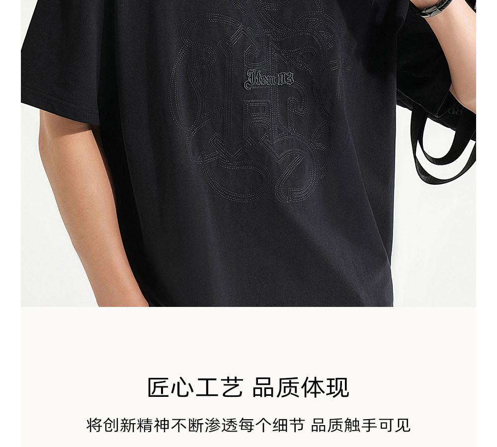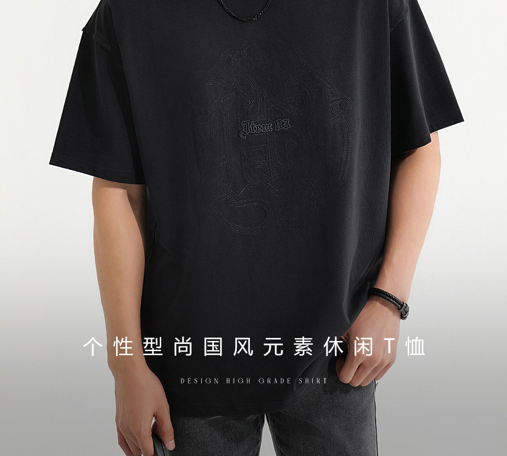 HIM漢崇 休闲宽松圆领T恤国风元素双工艺刺绣短袖上衣 2026夏季