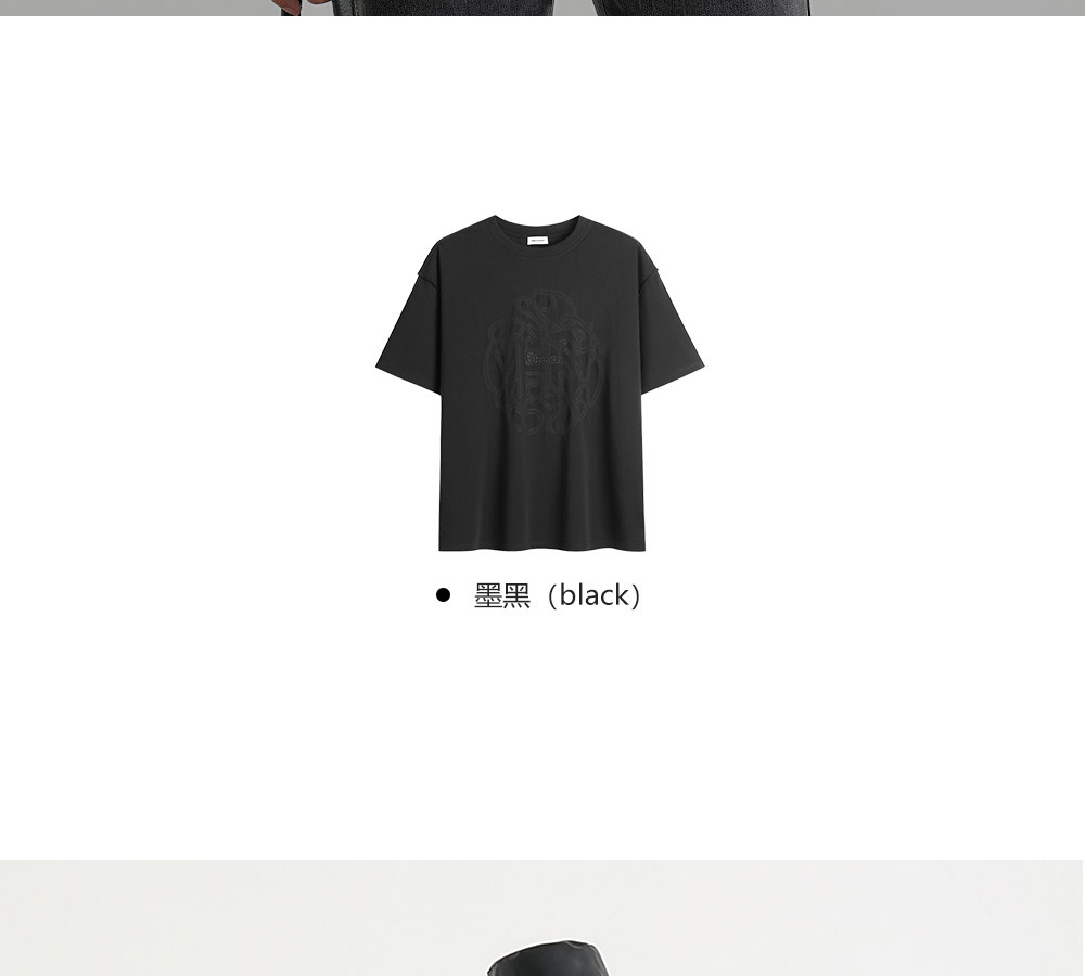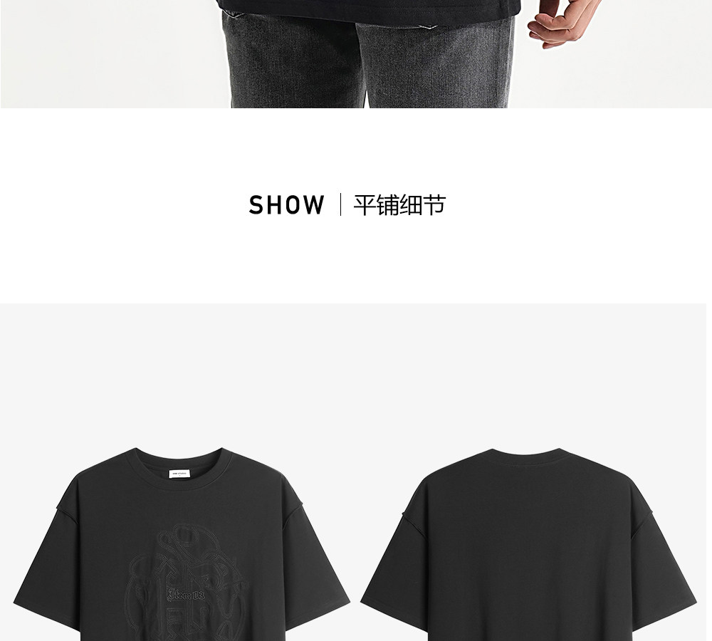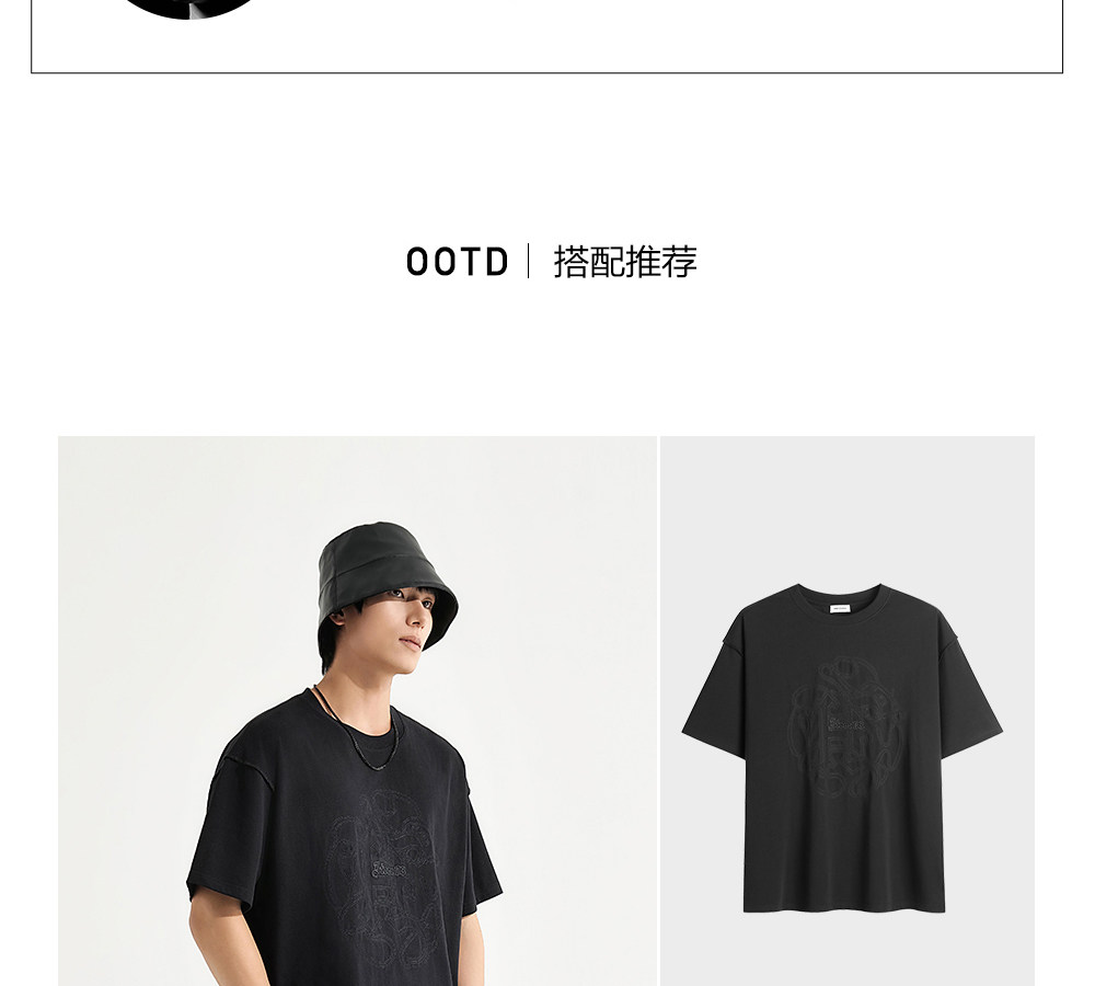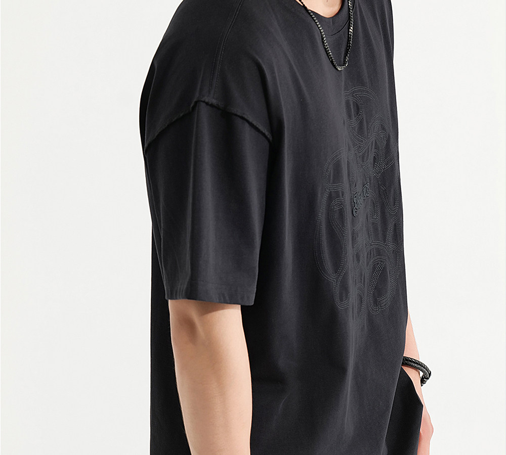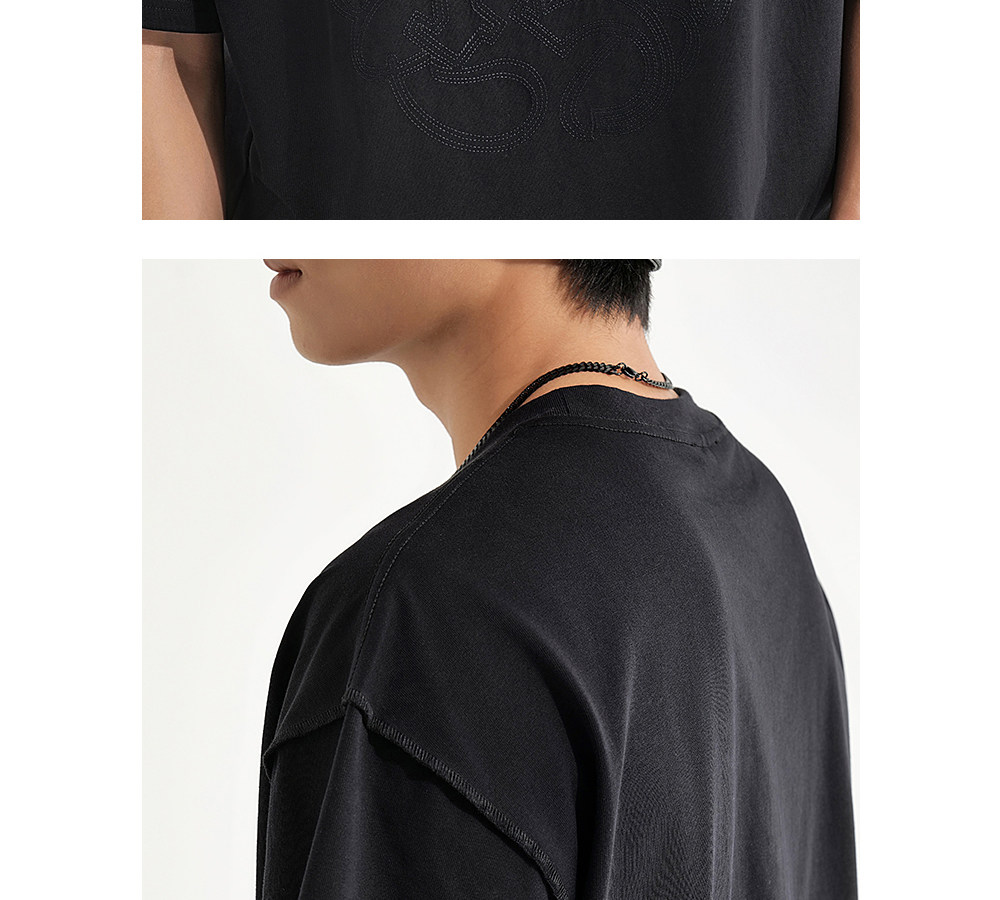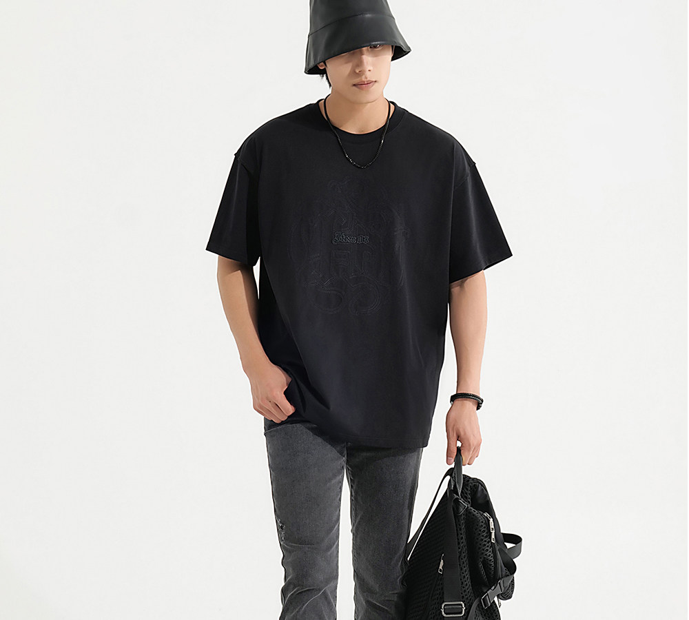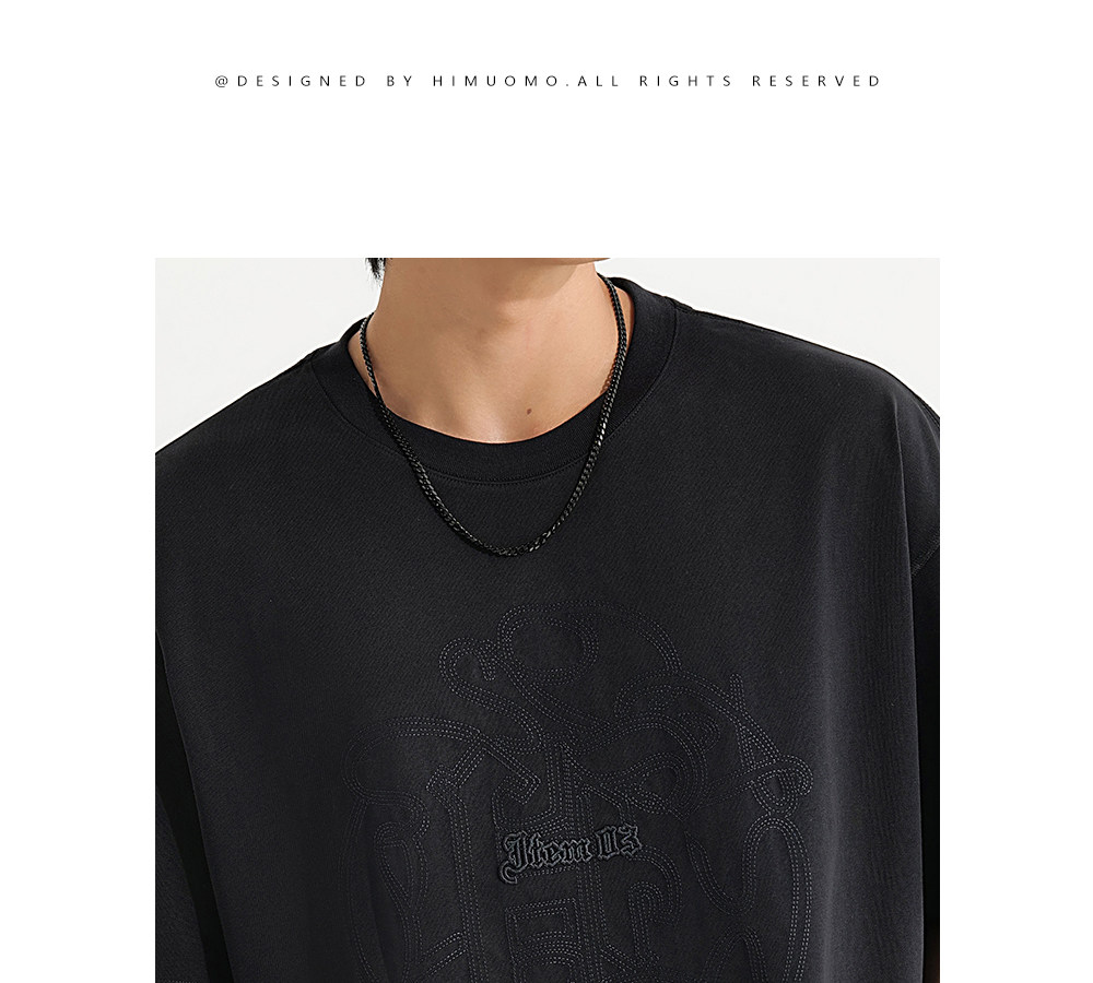 HIM漢崇 休闲宽松圆领T恤国风元素双工艺刺绣短袖上衣 2026夏季