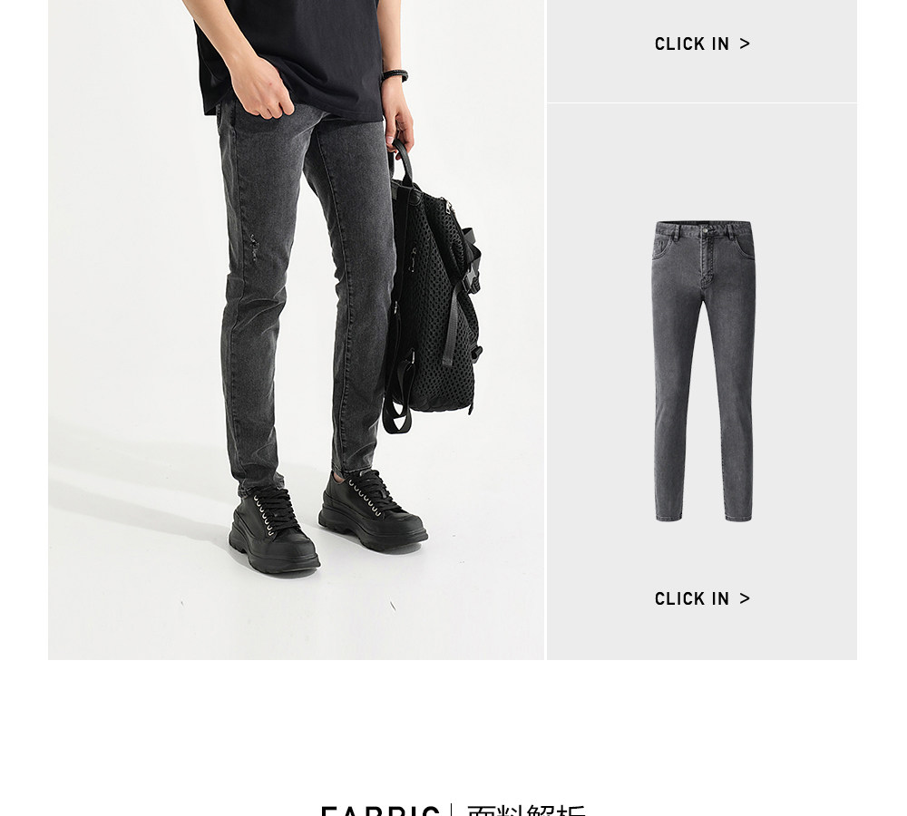 HIM漢崇 破洞洗水牛仔裤男潮流百搭高端简约修身小脚裤 2026夏季