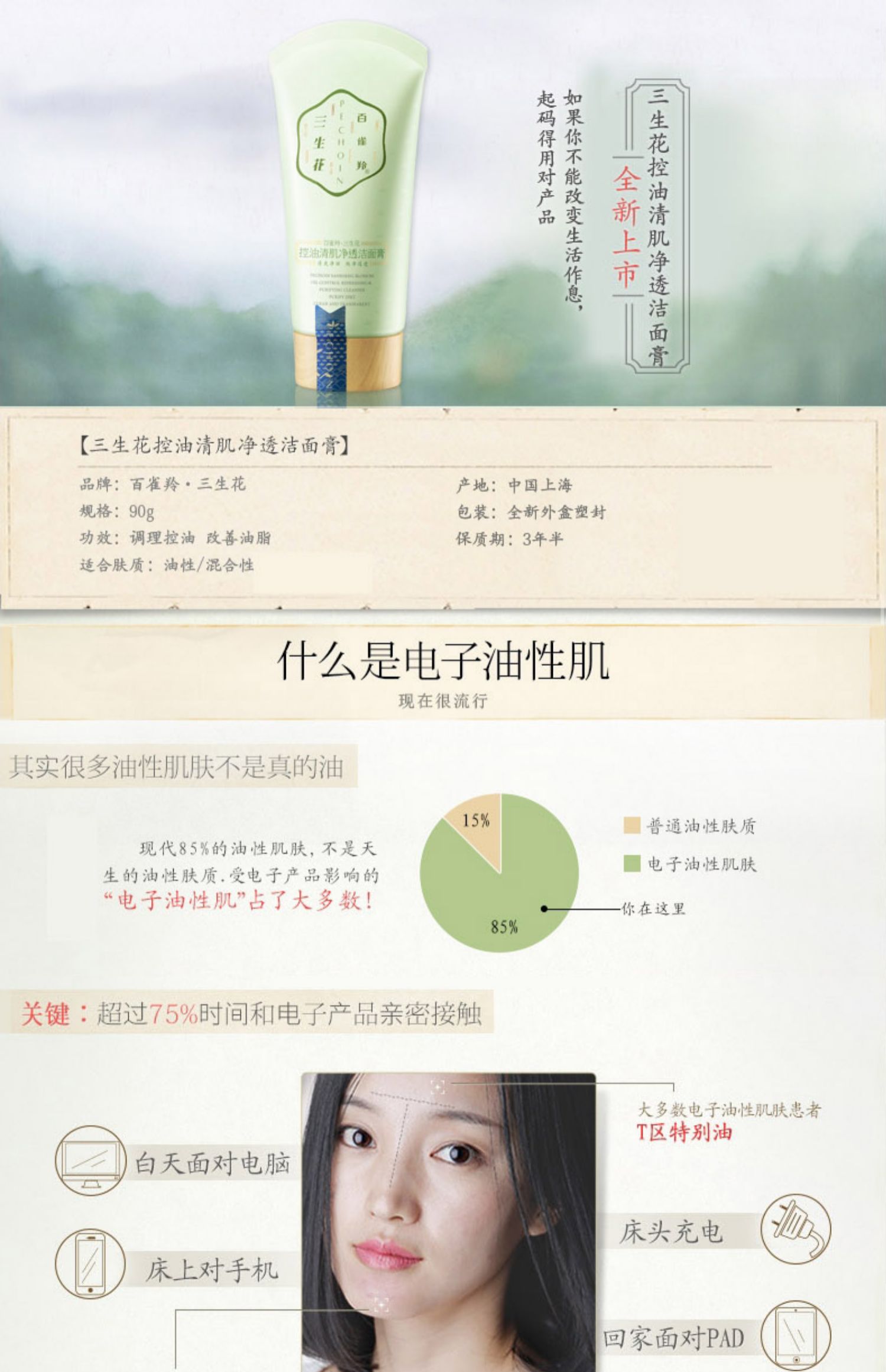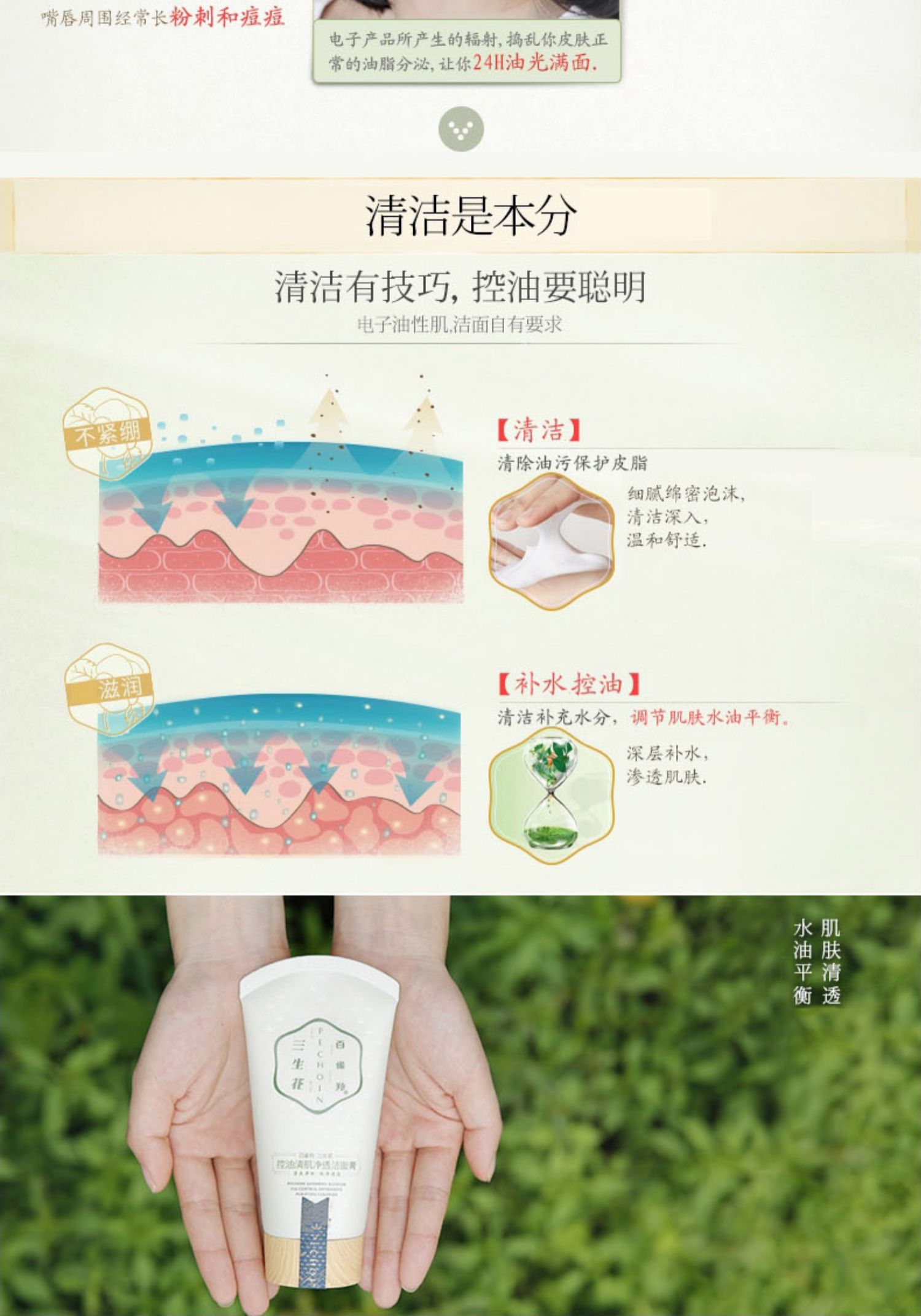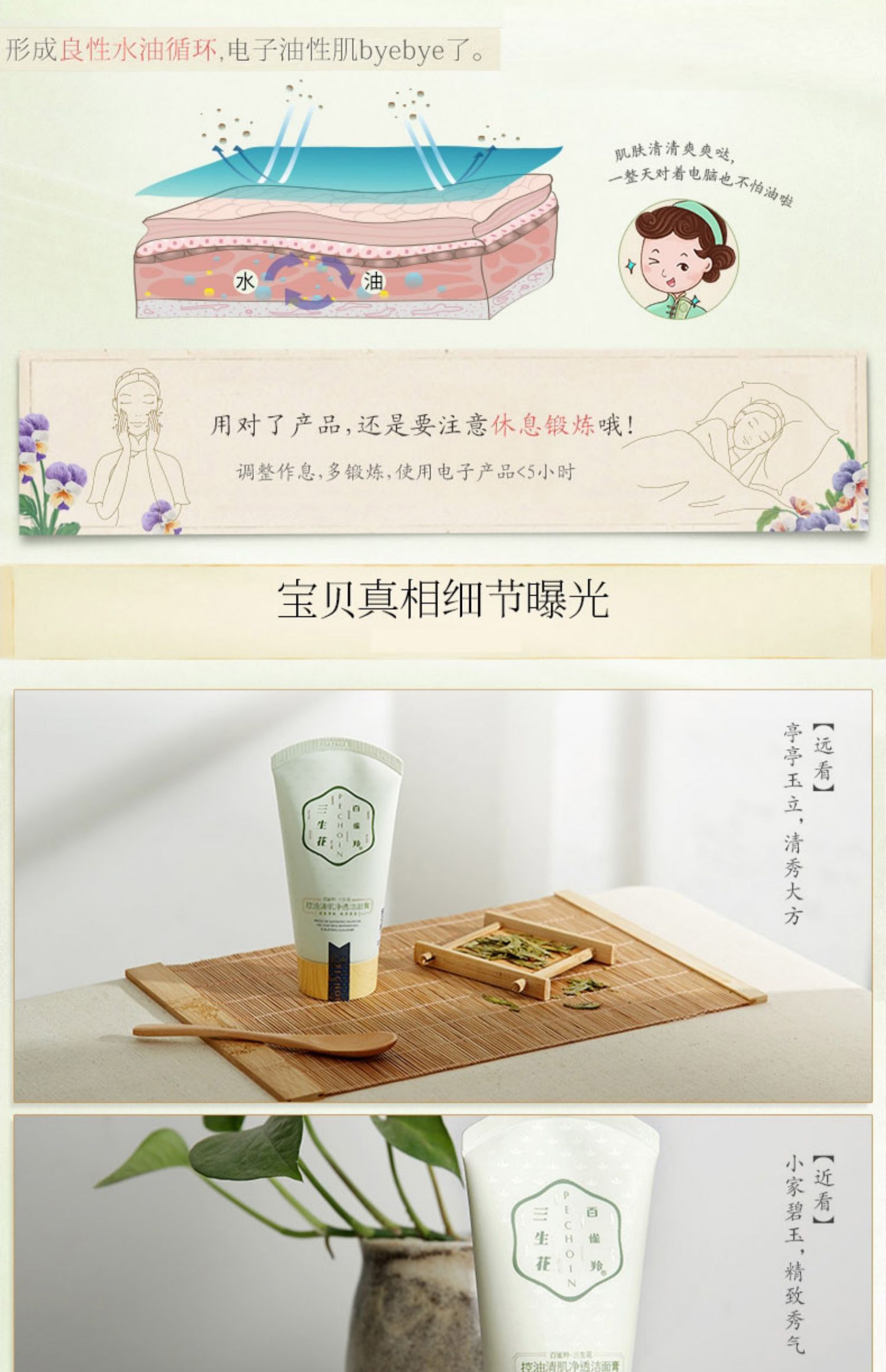 【百雀羚】三生花控油清肌净透洁面膏 女士化妆品护肤品