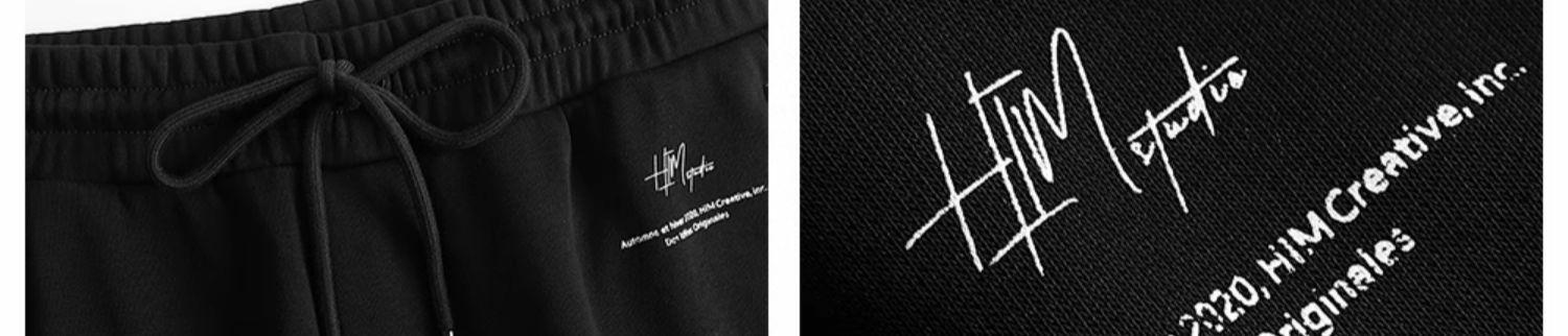 HIM漢崇 潮流字母印花休闲裤男抽绳松紧腰运动束脚裤男 2025秋季