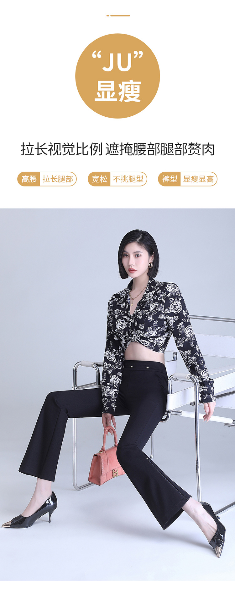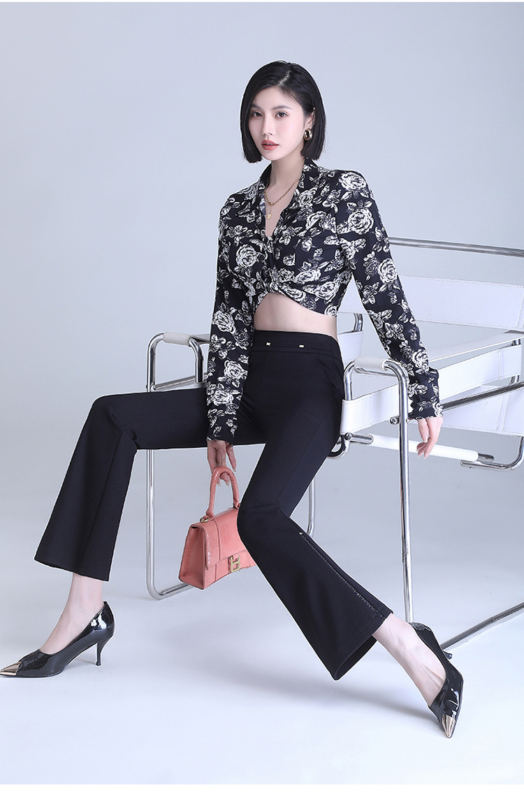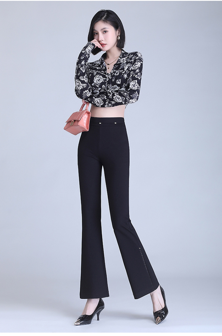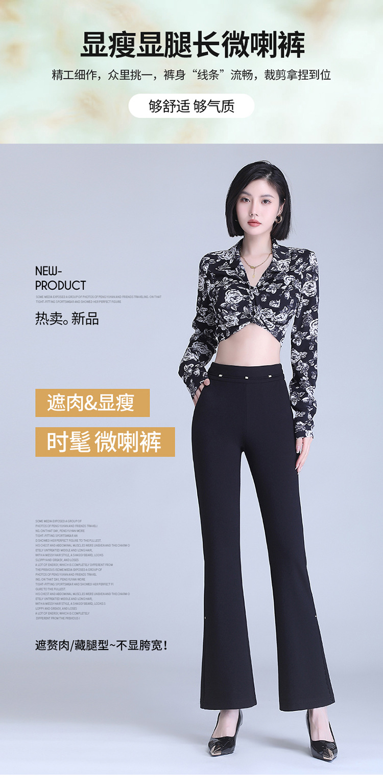 弹力高腰喇叭裤,春季女装新款休闲裤时尚气质长裤子MYX-72177