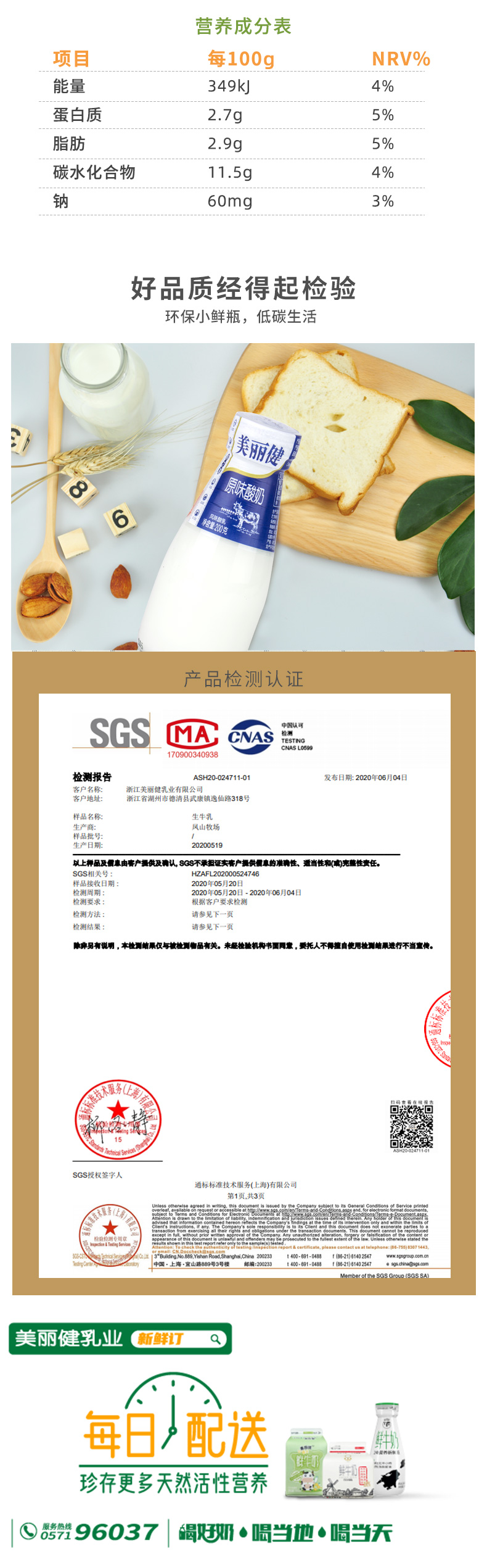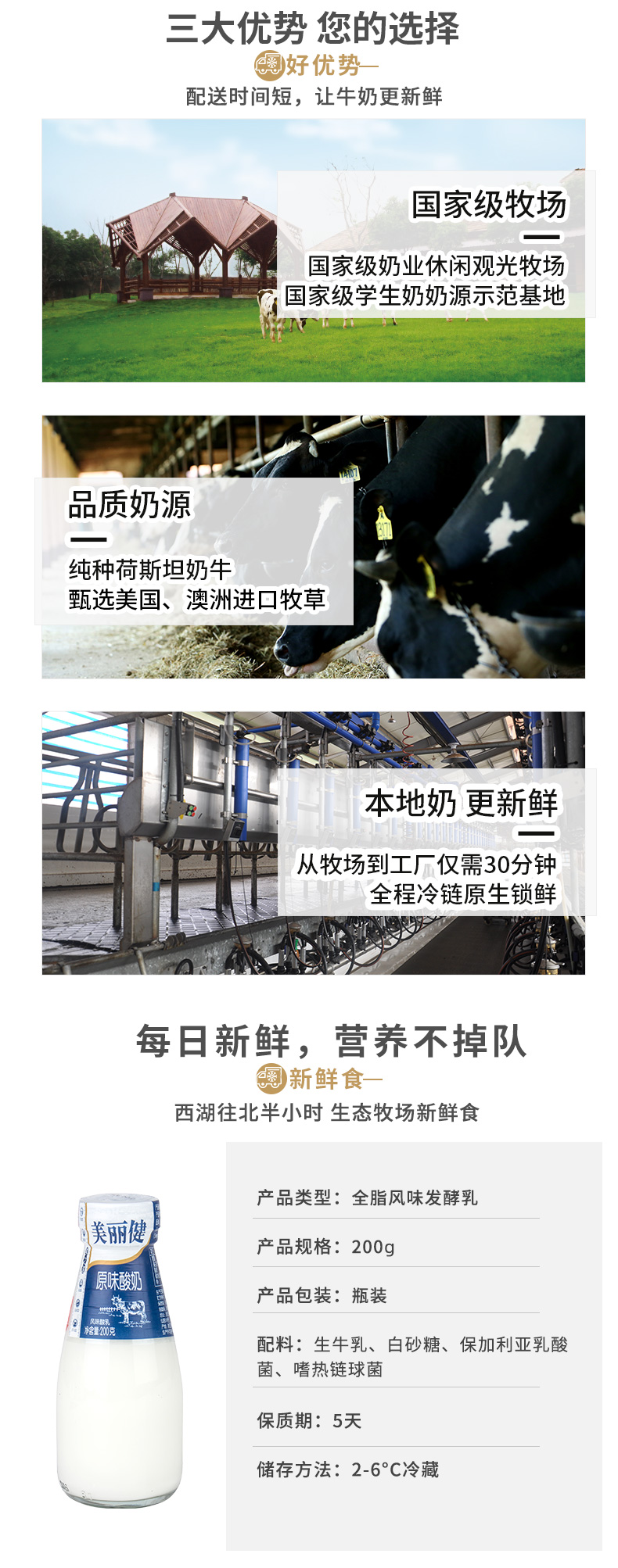 【自提】美丽健鲜之道瓶装原味酸牛奶200g/30天