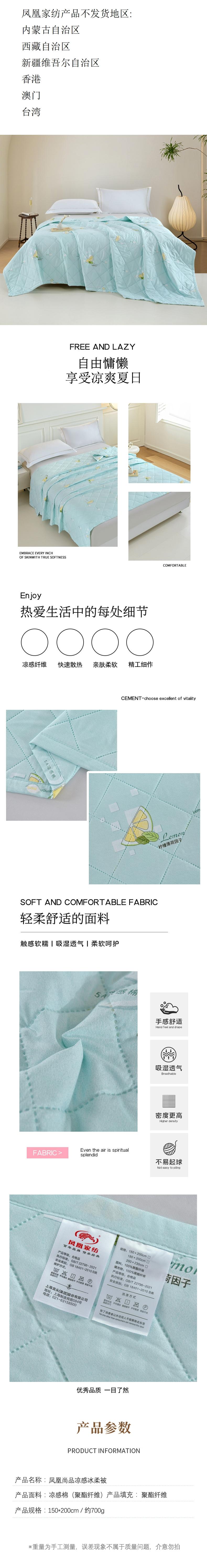 凤凰家纺 凤凰尚品凉感冰柔被150x200cm/700g FHJF-BZ2601