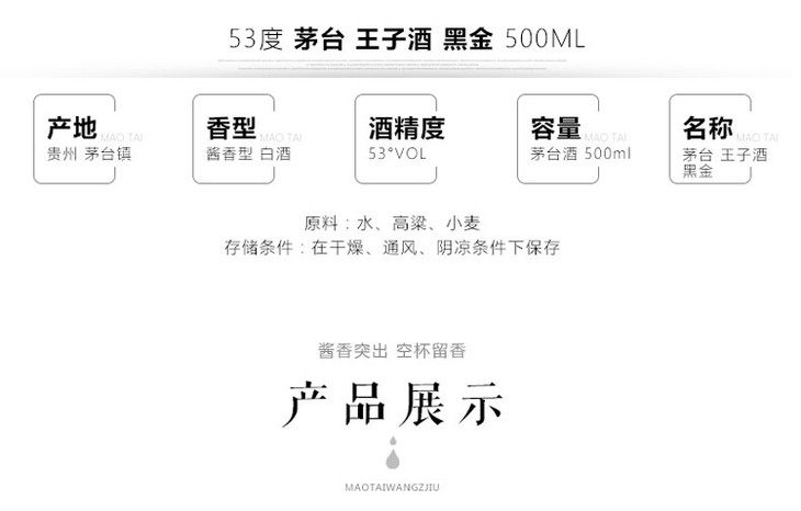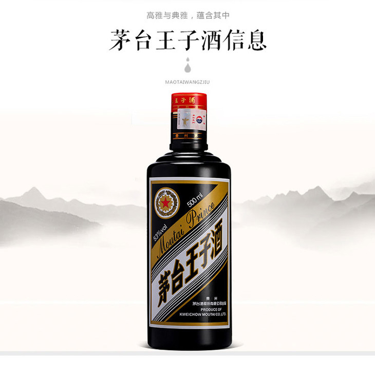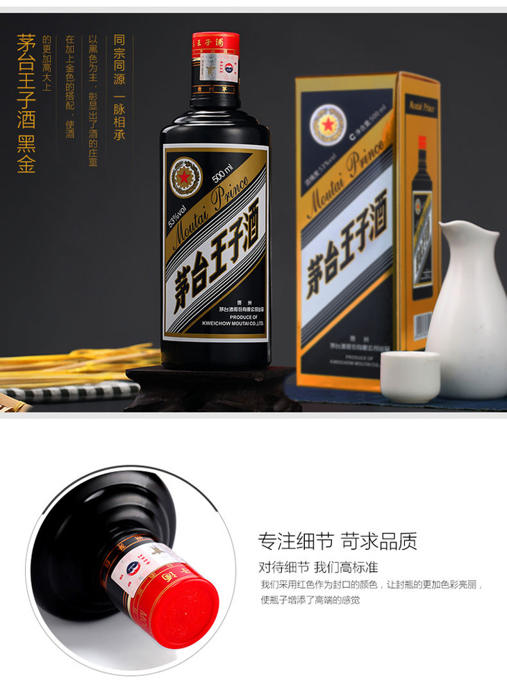 【2021年】茅台王子酒黑金 53度 酱香型白酒500ml *6瓶
