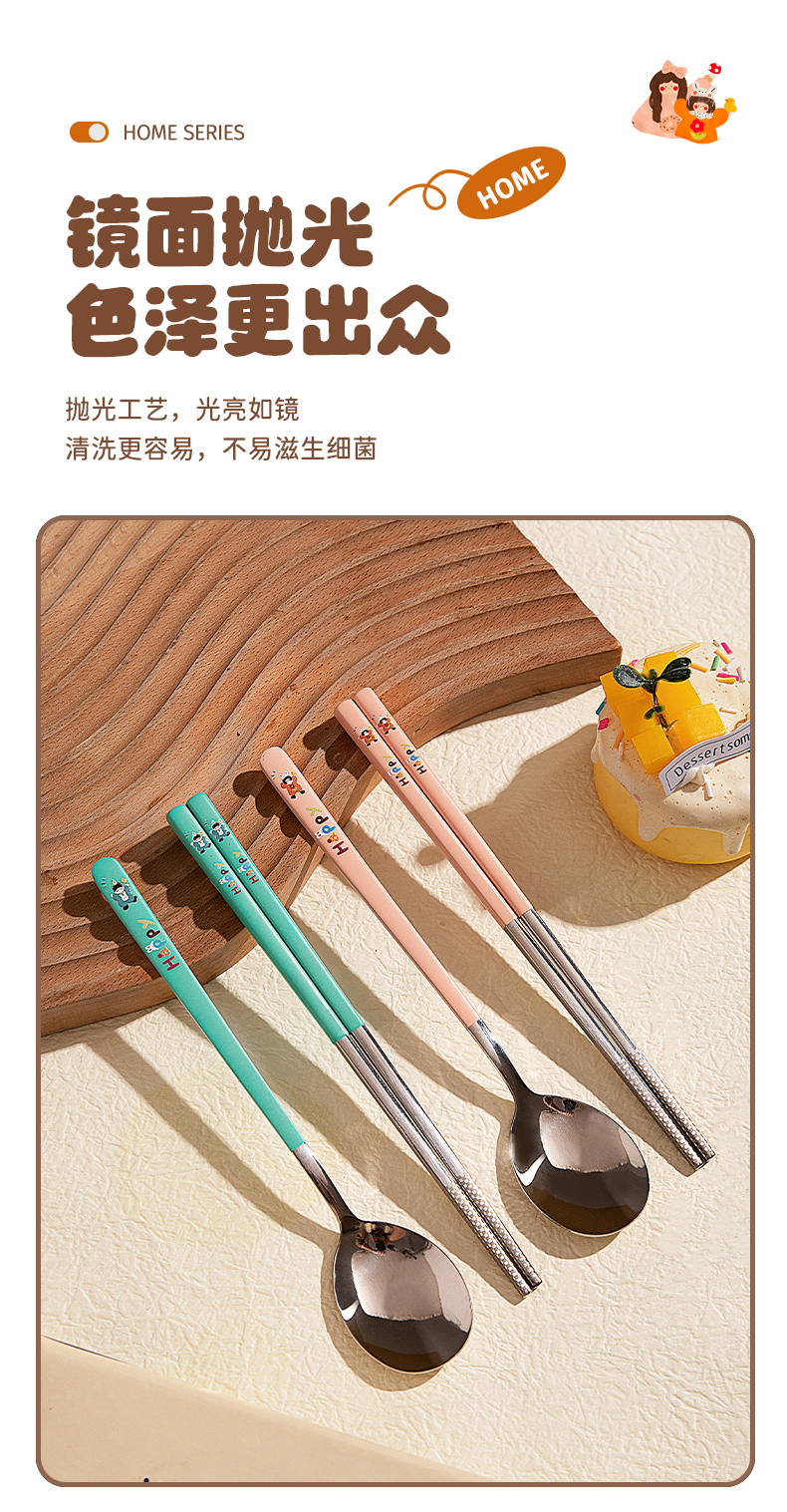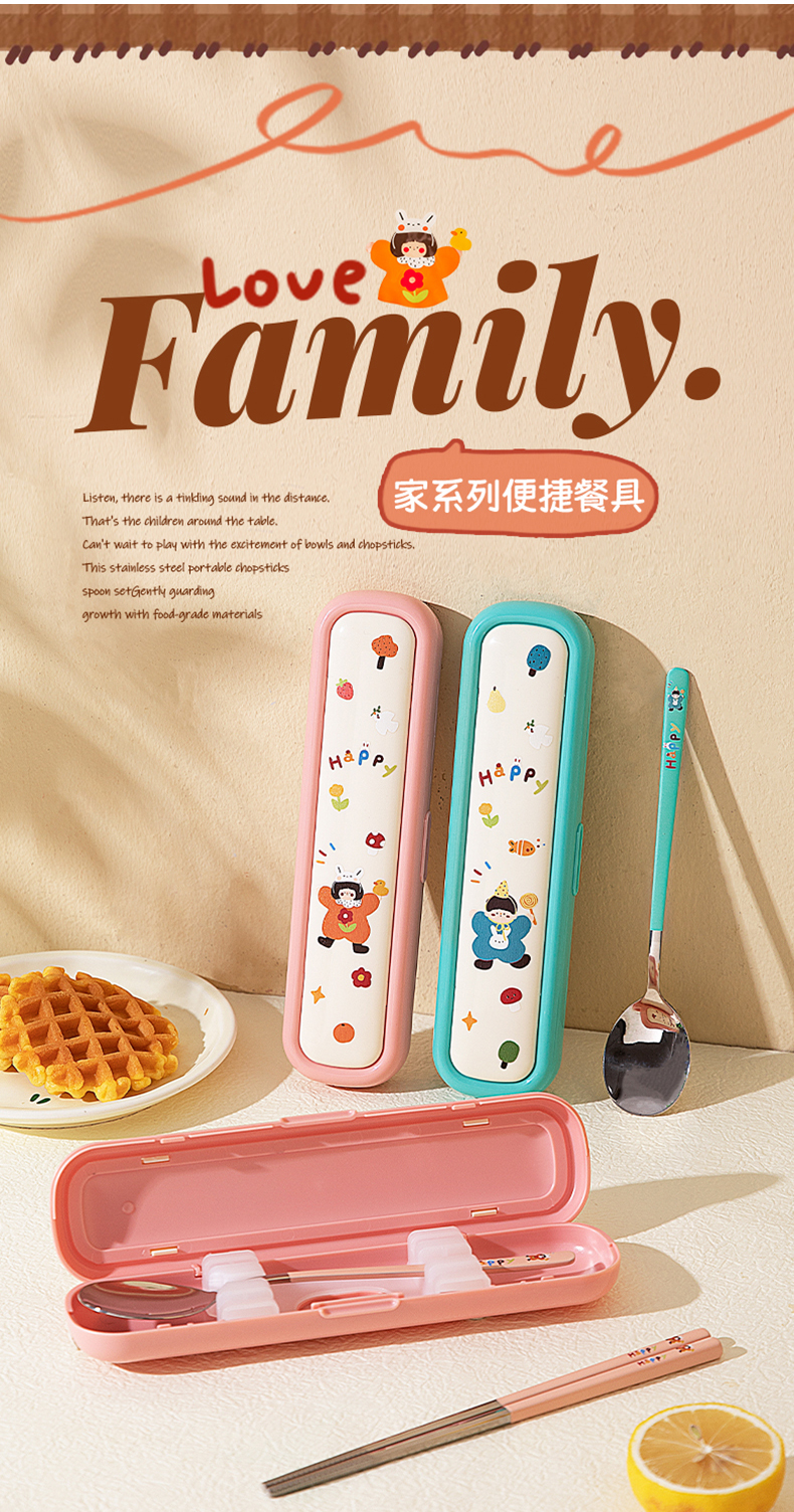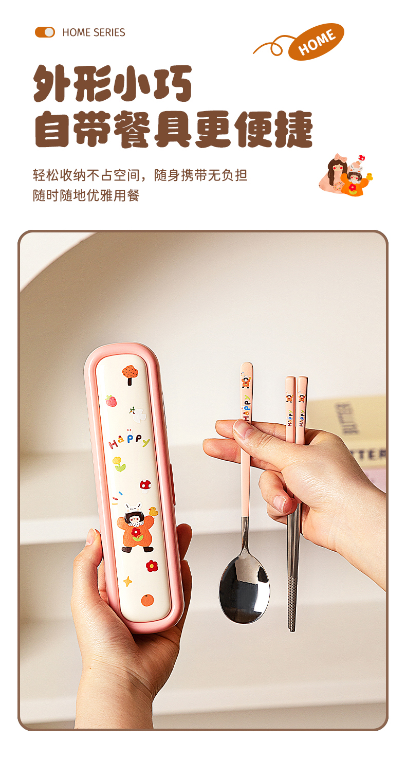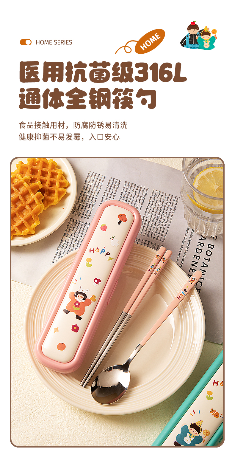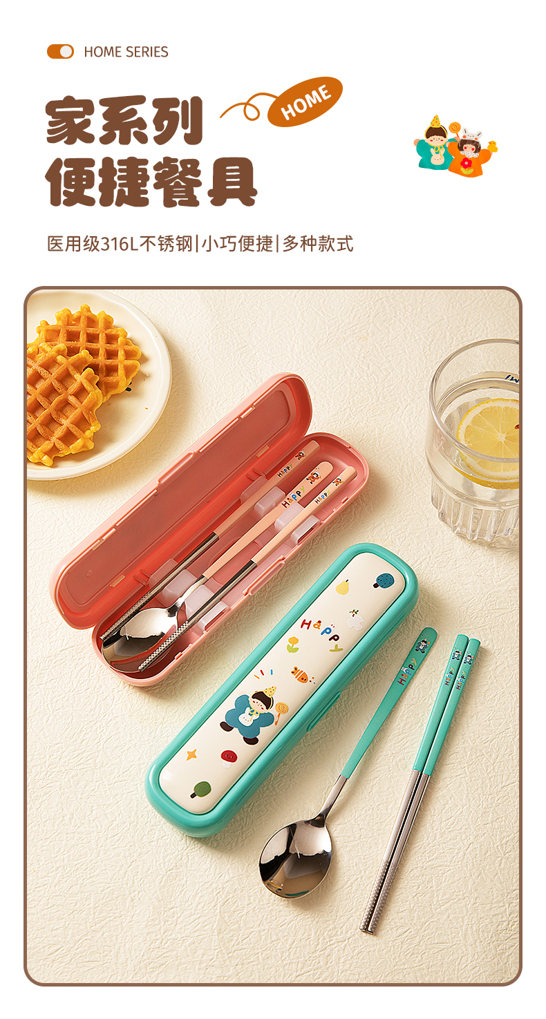 摩登主妇316L筷子勺子套装便捷餐具小学生一人专用外出携带收纳盒